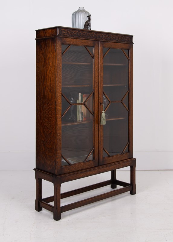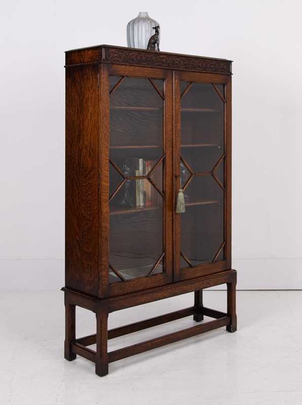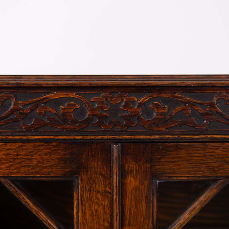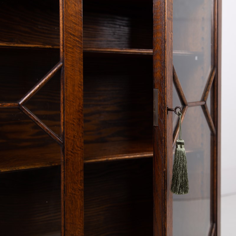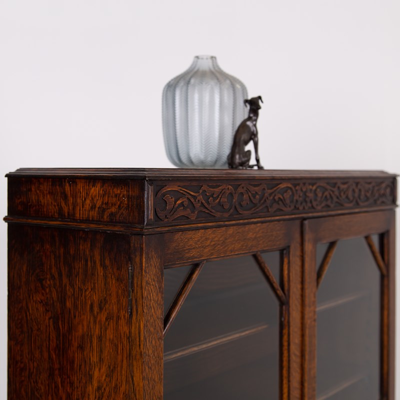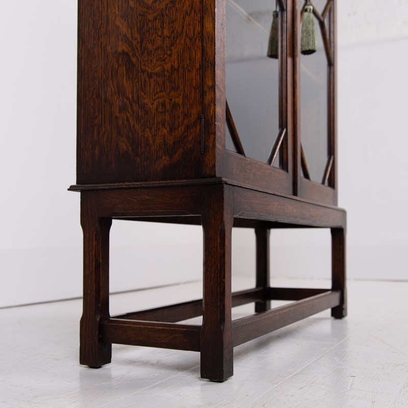 Attractive English Oak Glazed Bookcase Cabinet C1920