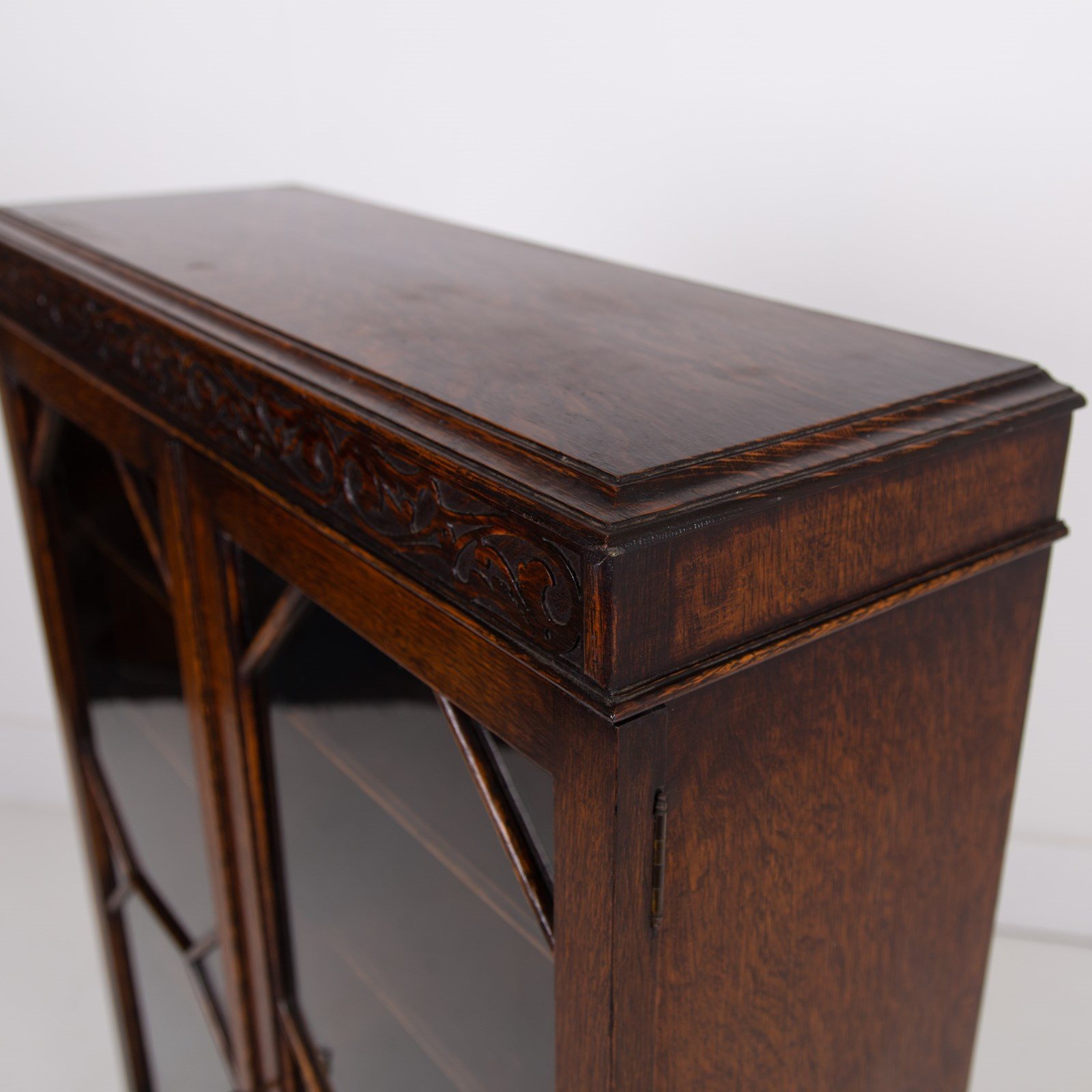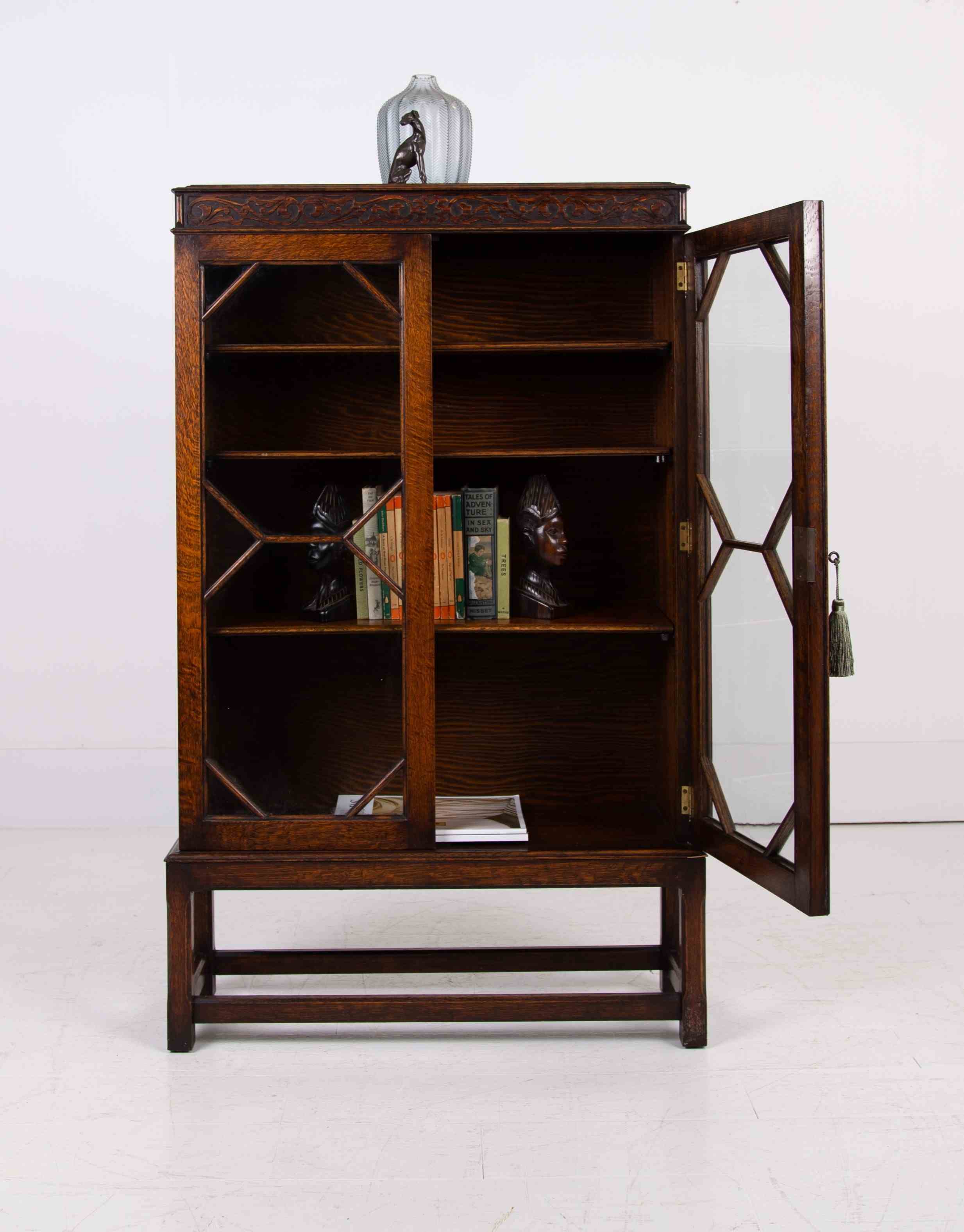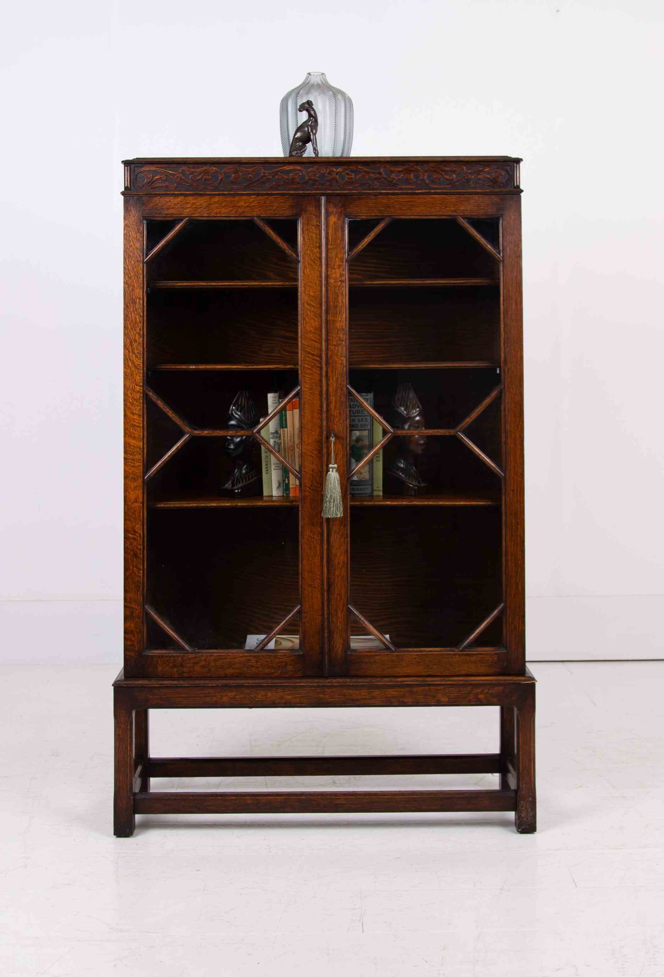 Attractive English Oak Glazed Bookcase Cabinet C1920