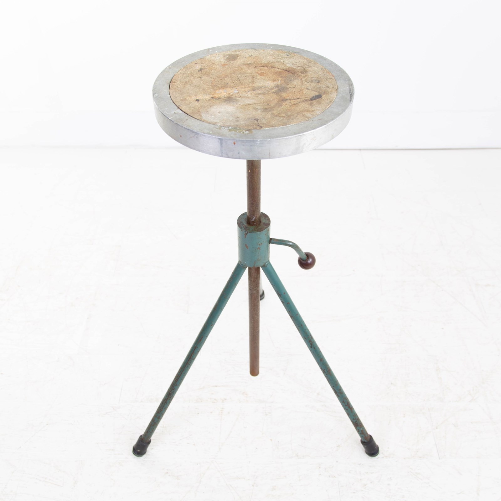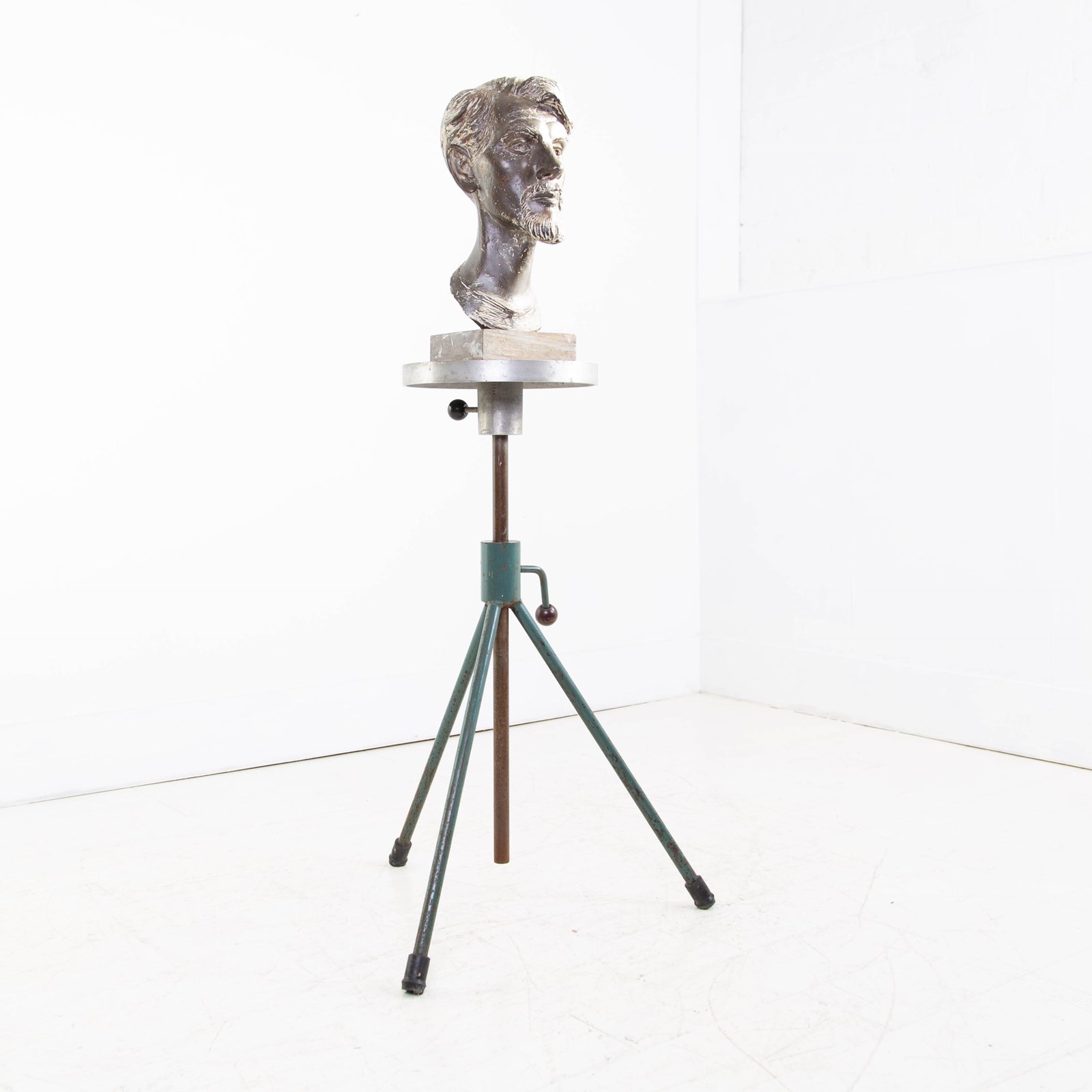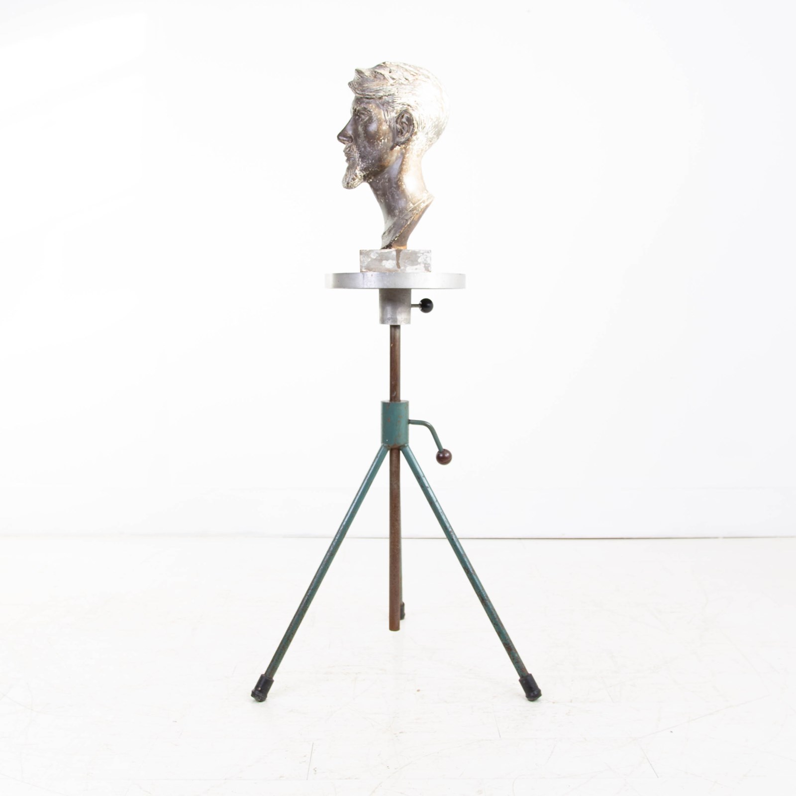 Likely late 1960s and with an industrial “edge” to it this rather good looking sculpture stand sitting in great original condition with angled metal painted legs supporting a deep turning stand. All strong and very capable! Height adjustable if you wish.