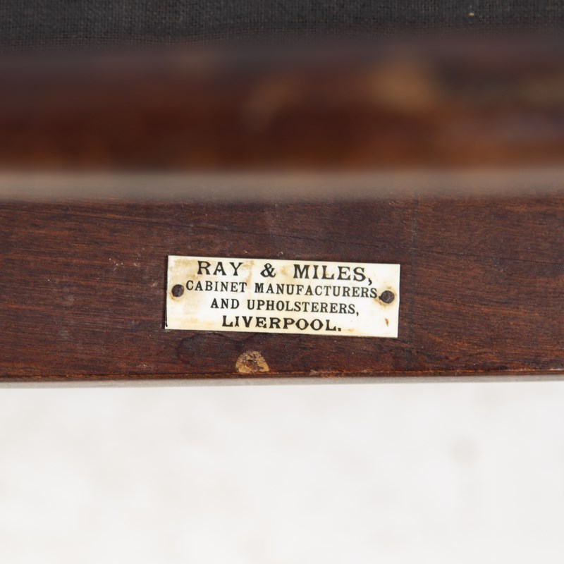 “Ray & Miles was a renowned Liverpool-based cabinet making firm, operating from 1864 until their acquisition by Maples of London in 1959. They specialized in high-quality furniture and upholstery, particularly popular during the Victorian, Edwardian, and early 20th-century periods.”