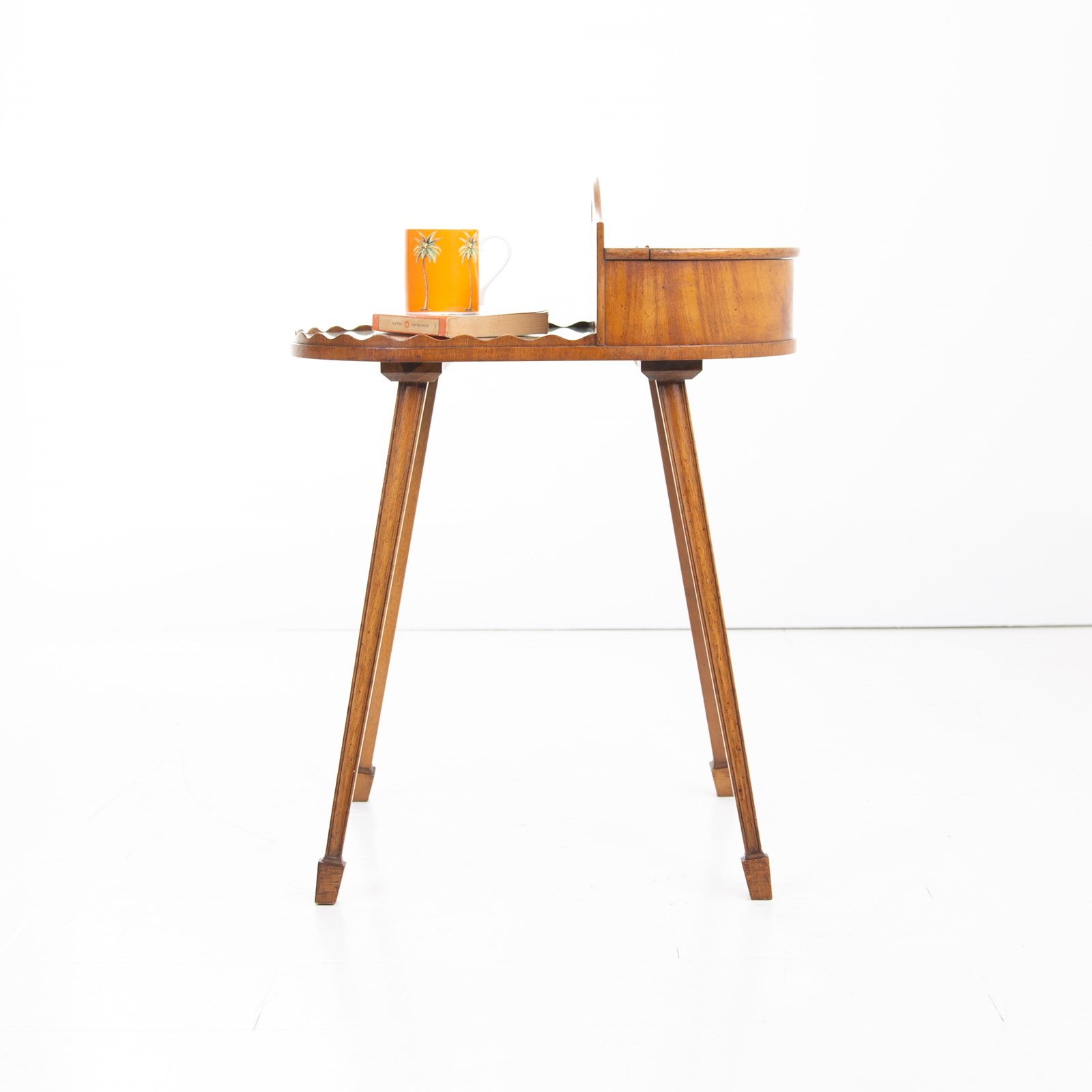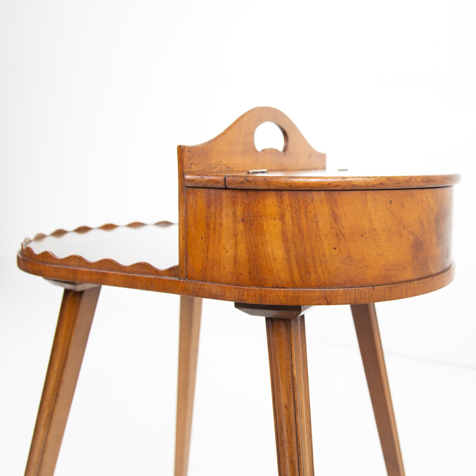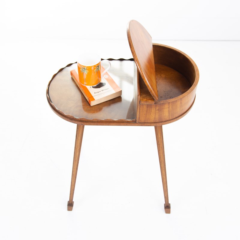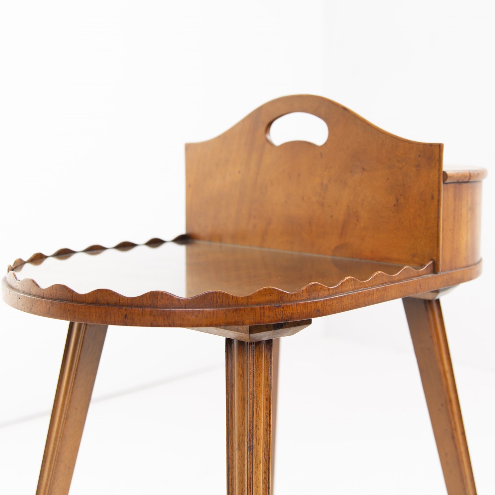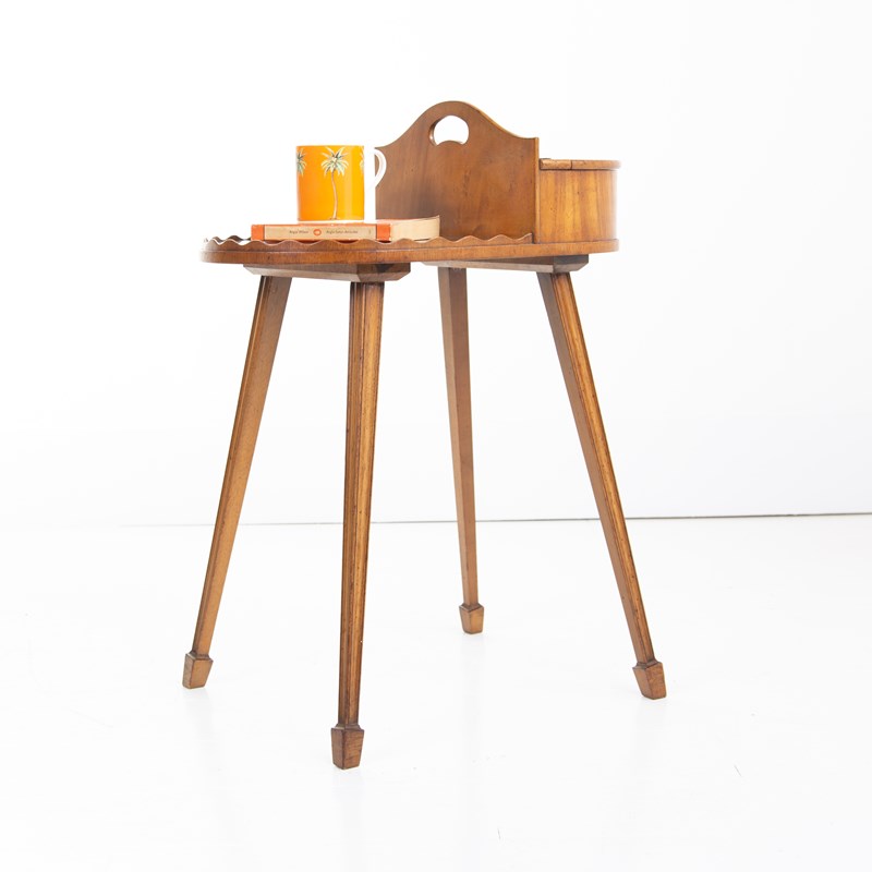 Something a little different which would look rather good in a period home, we have a butler’s stand with its shaped edging, lift up compartment, little carry handle and elegant square tapered legs.