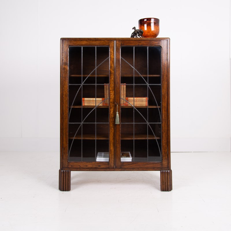 Delightful Oak Glazed Bookcase Cabinet C1930