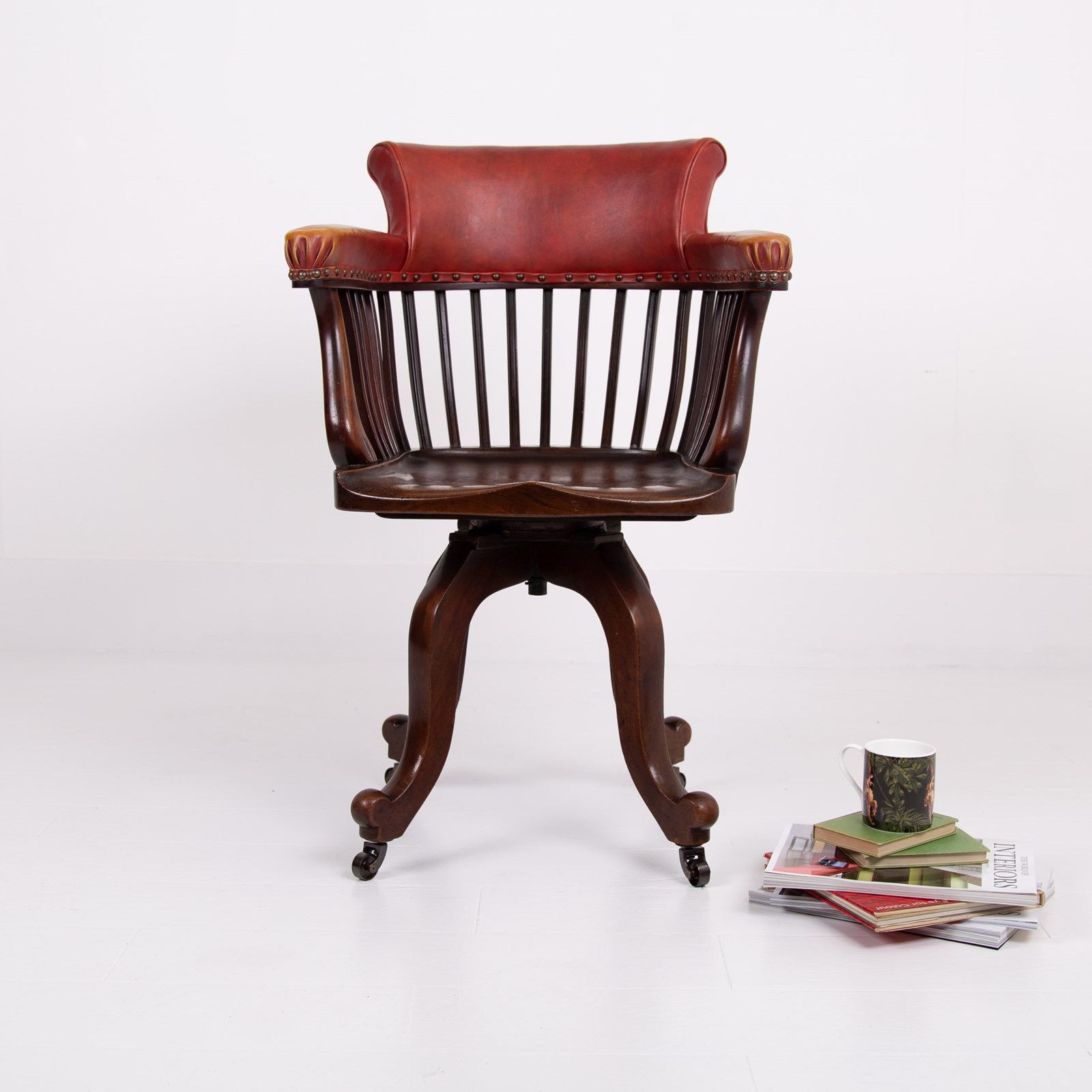 Attractive Edwardian Antique Revolving Desk Chair C1900