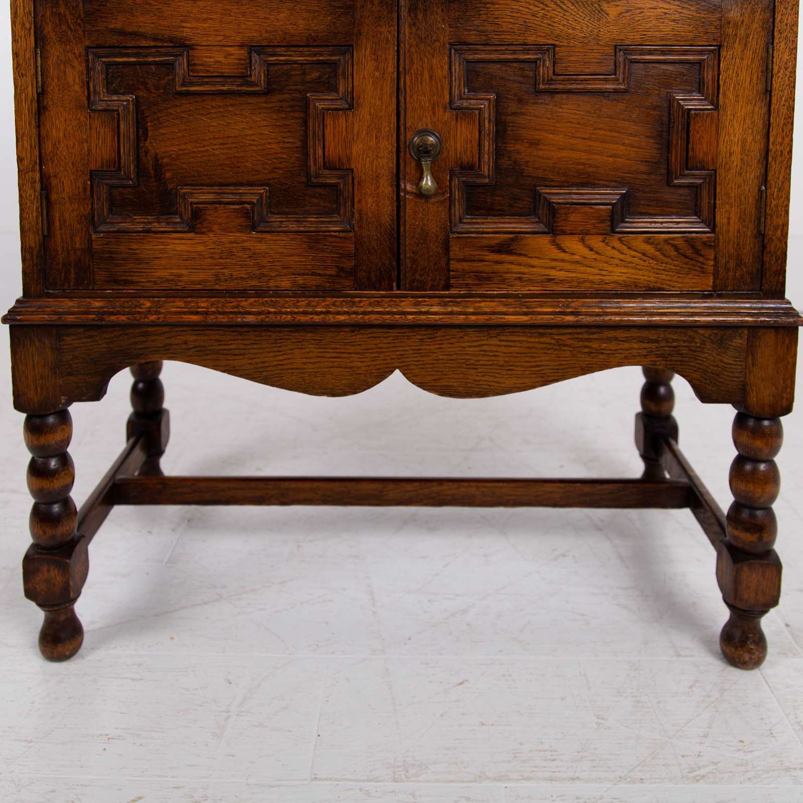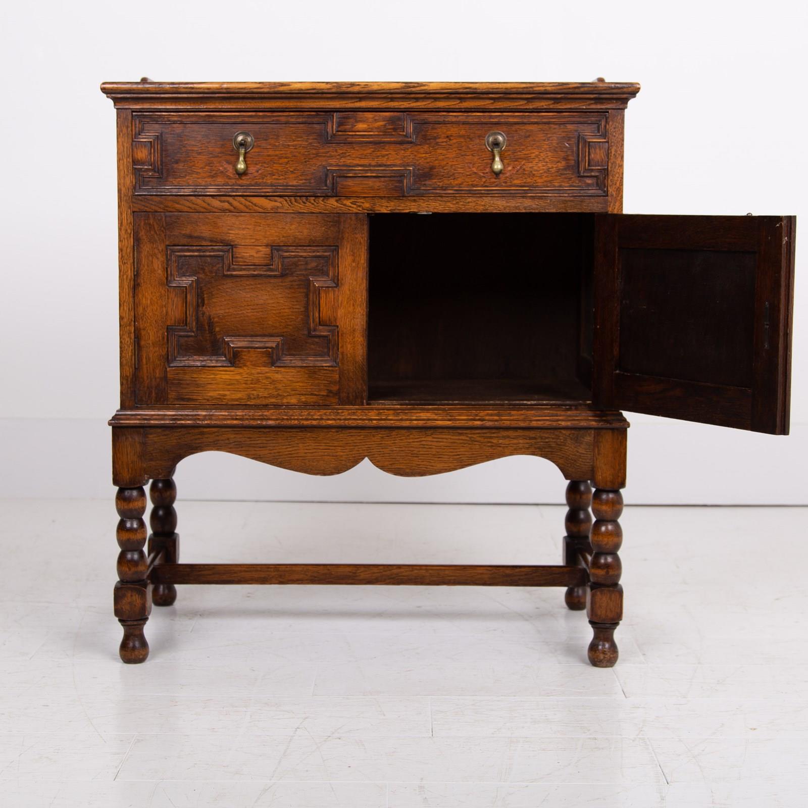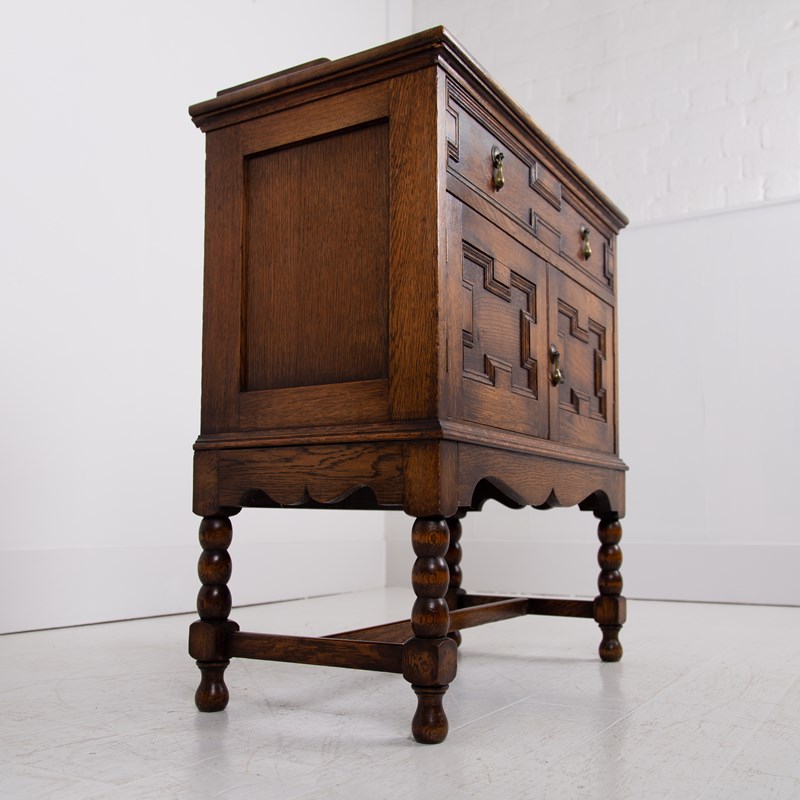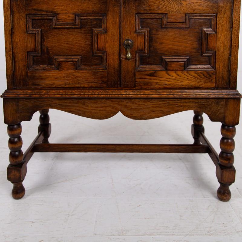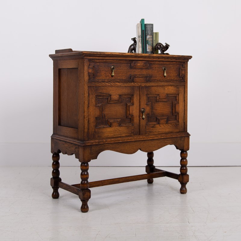 A rather gorgeous little English oak Cabinet, late 1920s perched on lovely bobbin legs and in jolly good order.