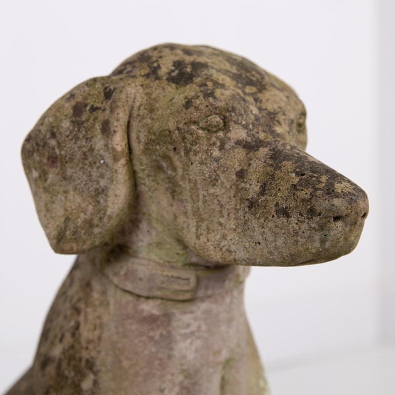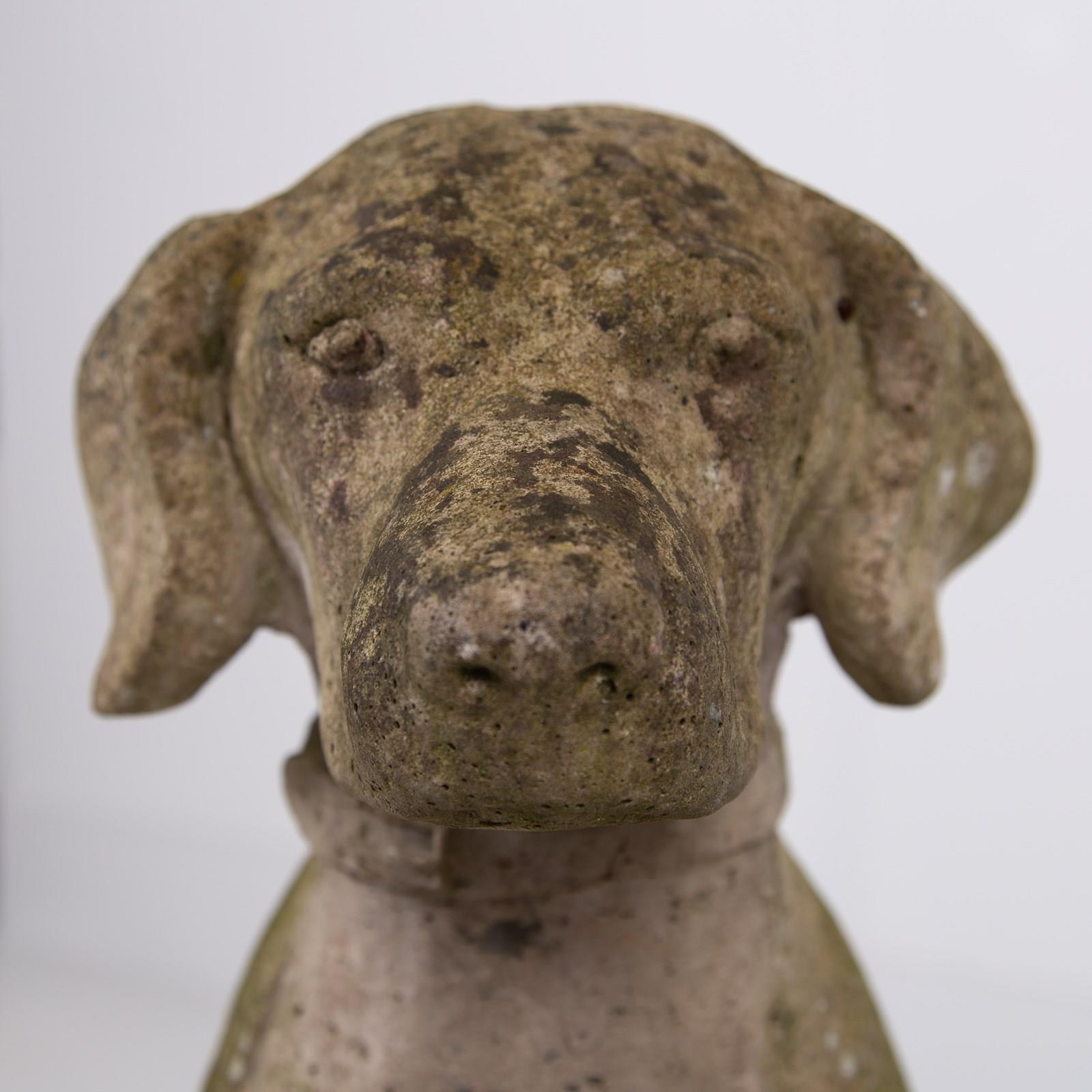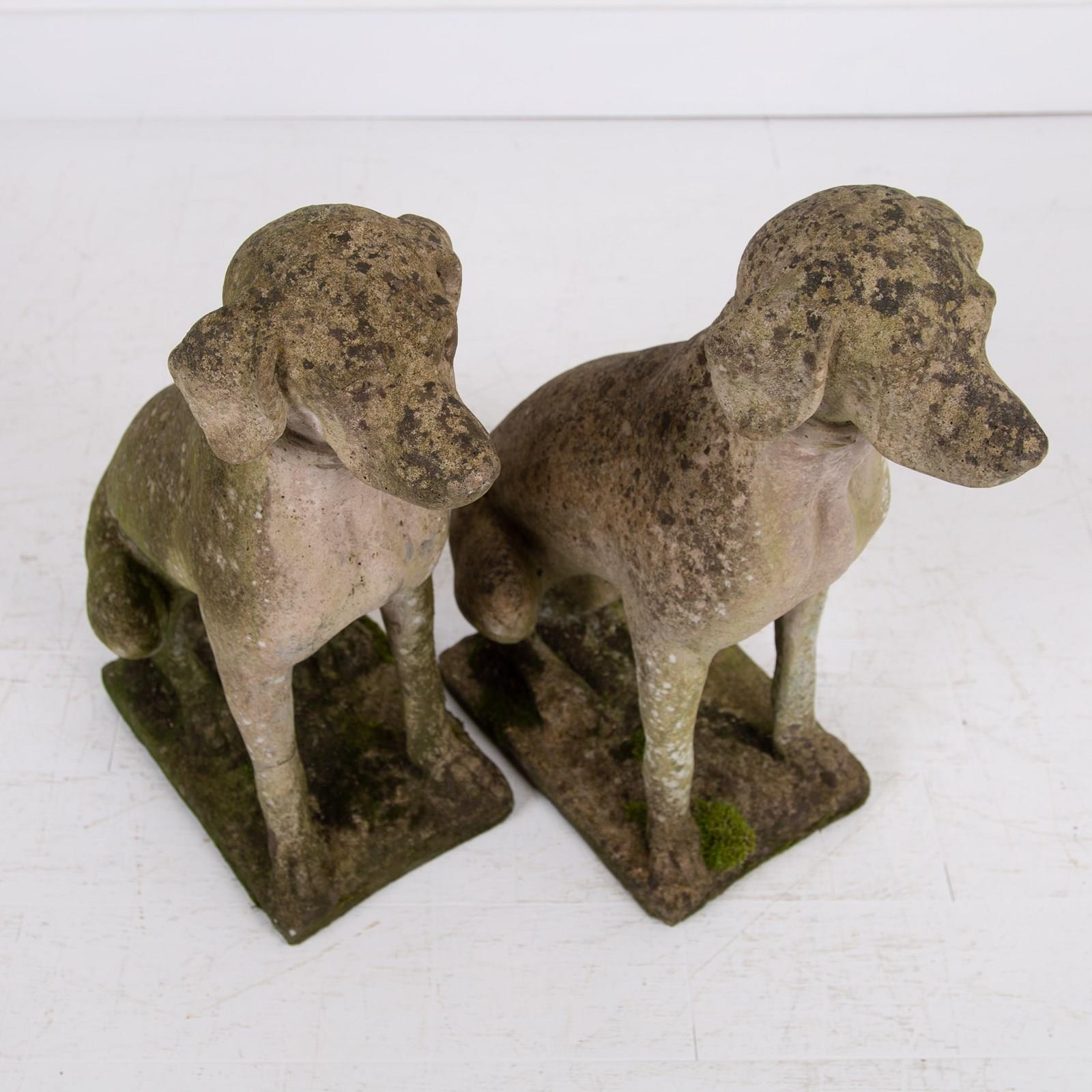 Woof Woof! What a great pair of weathered stone dogs, perfect for guarding your front door or vestibule. These are of good scale and benefit from sitting outside gaining some lovely patina and colour.