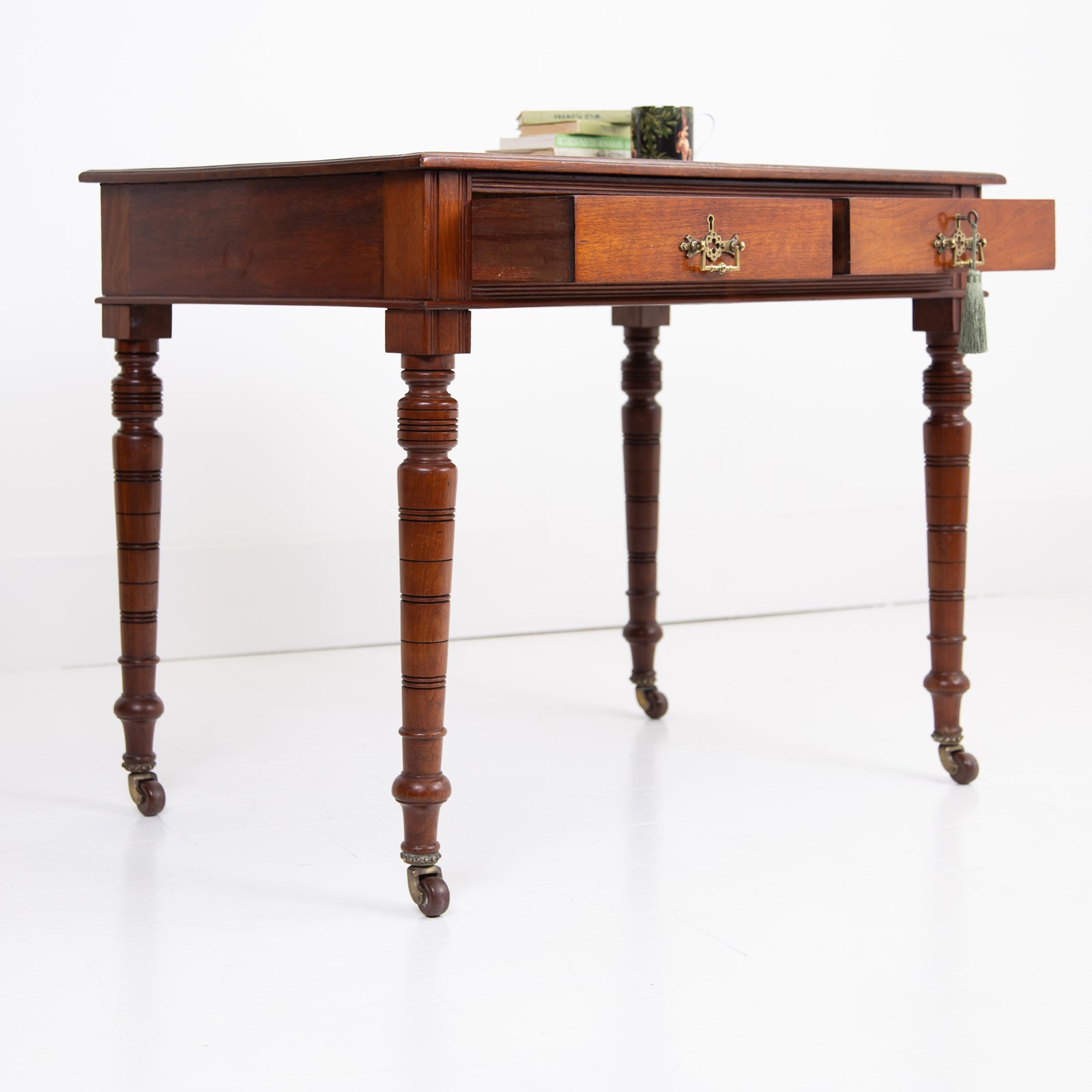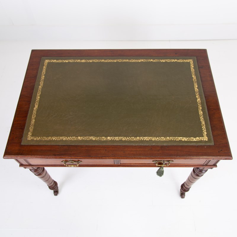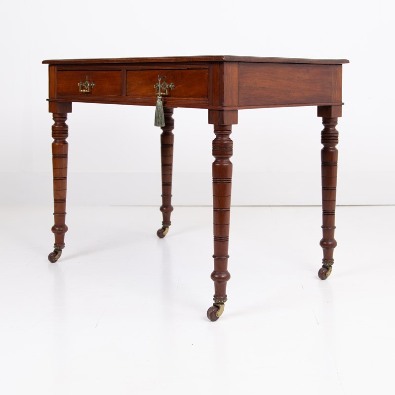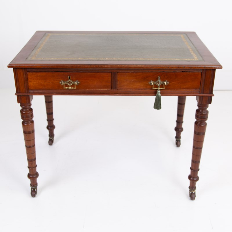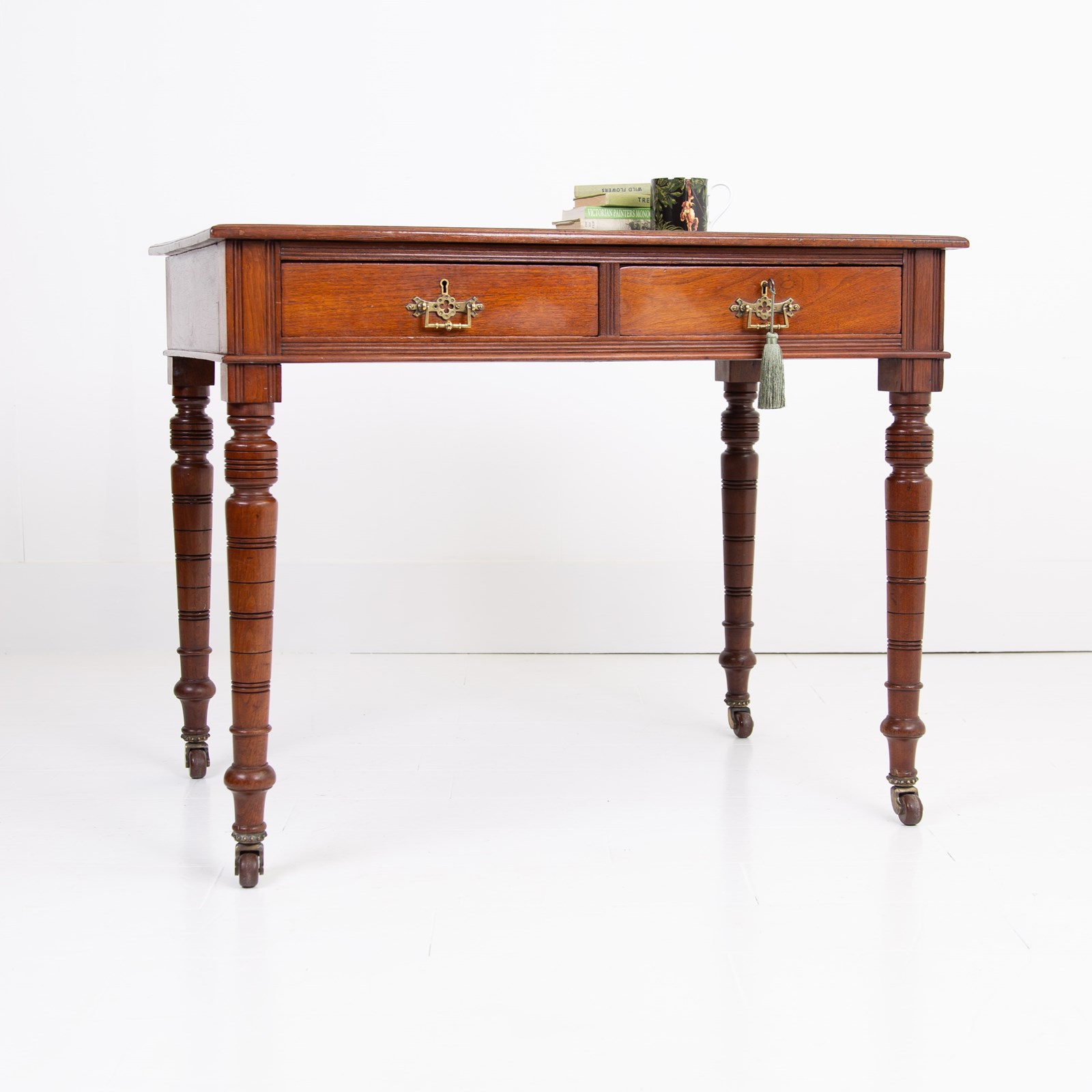Delightful Victorian Leather Topped Walnut 2 Drawer Desk C1900