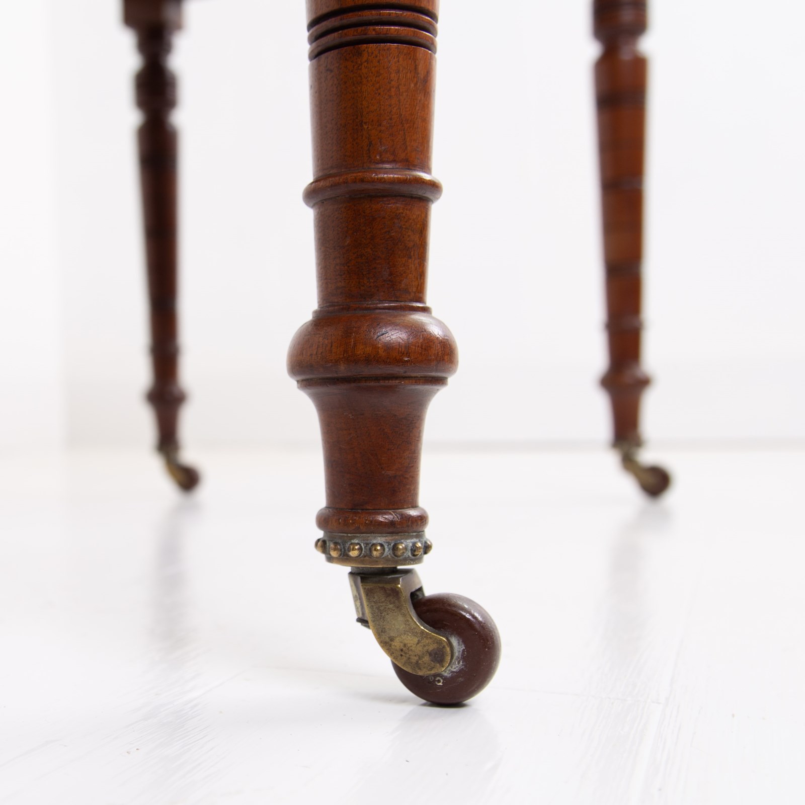 Condition is good - of course we have historic wear but colour and tone of the walnut is good with attractive turned legs which are finished with brass and pot castors - two have a little chip to the end, historic and not a concern.