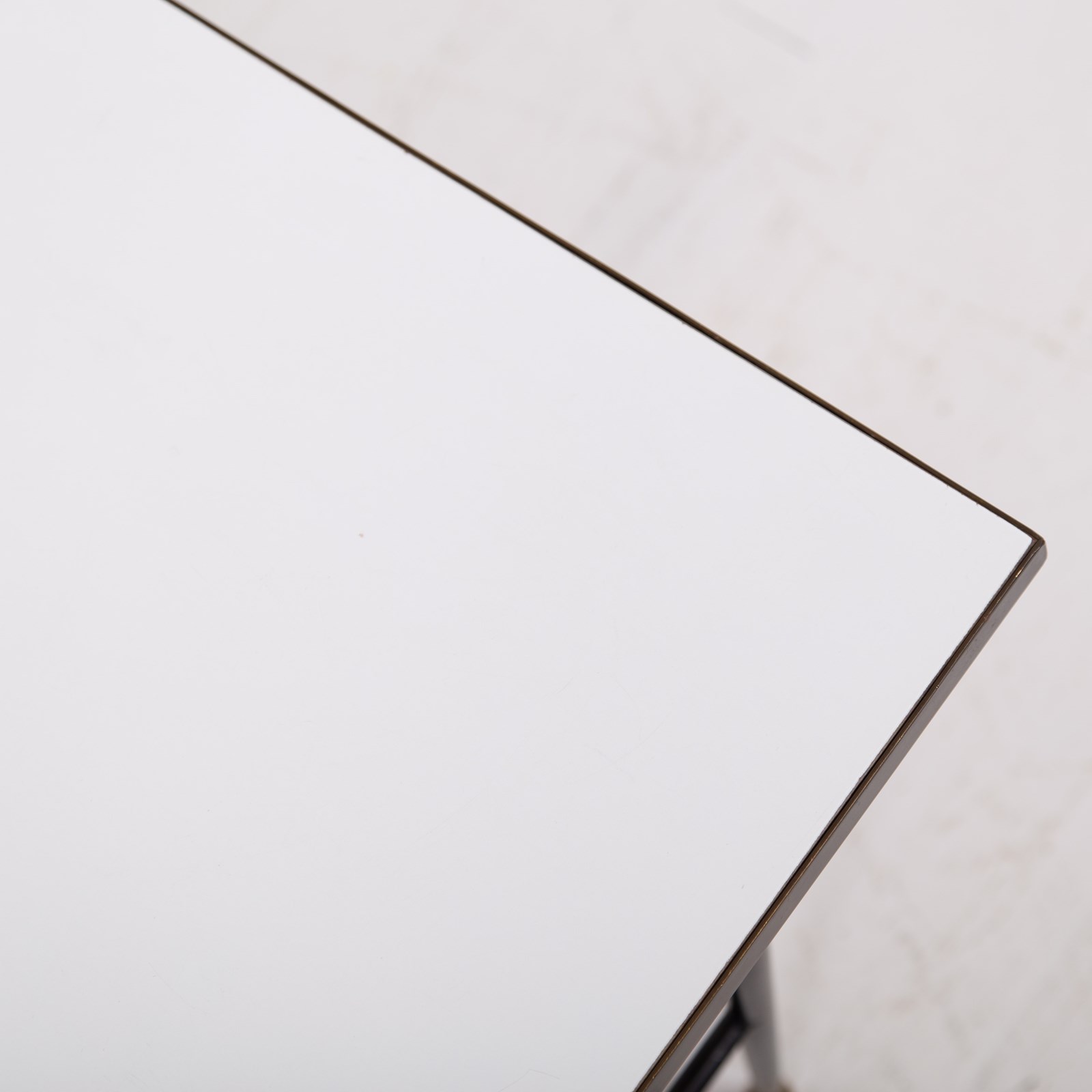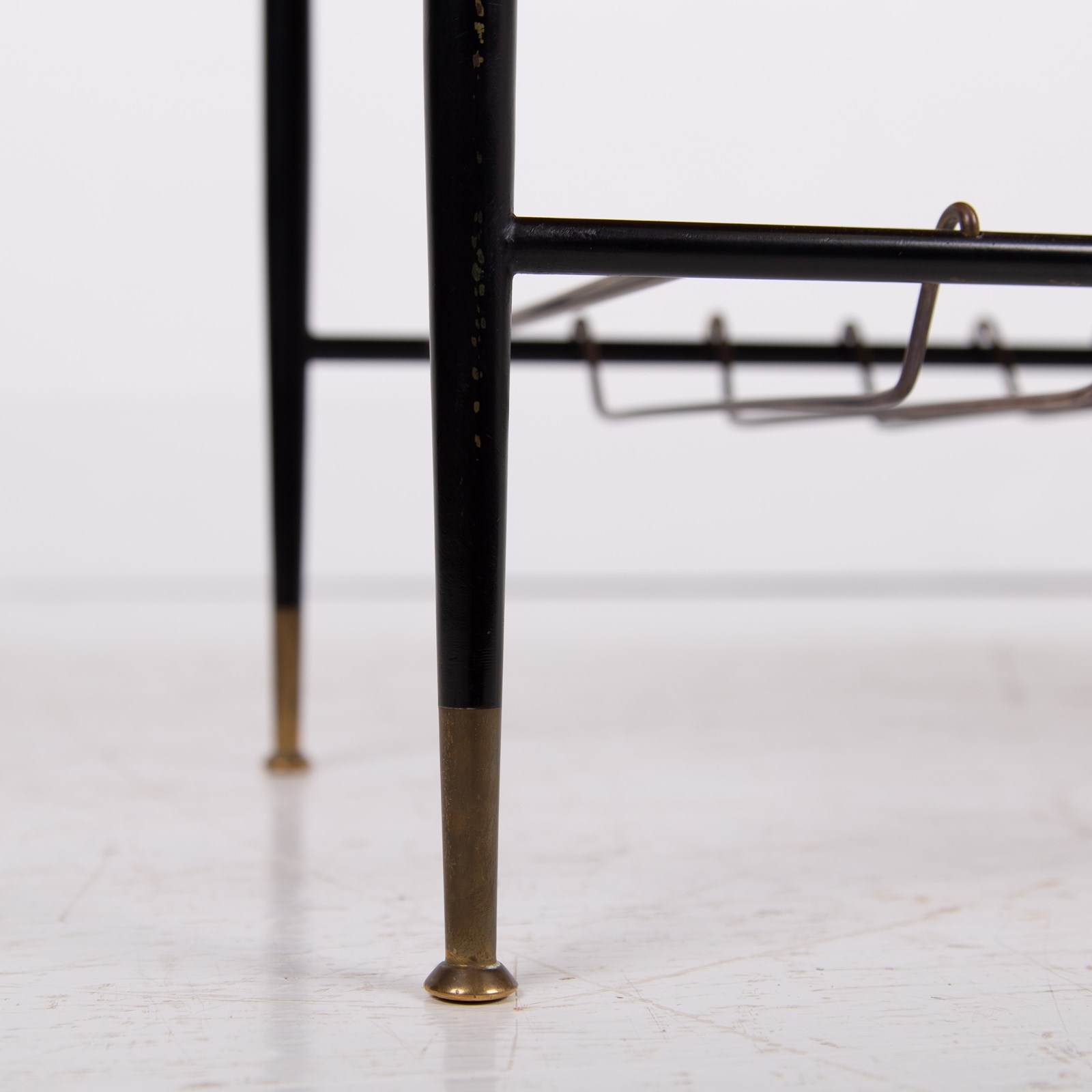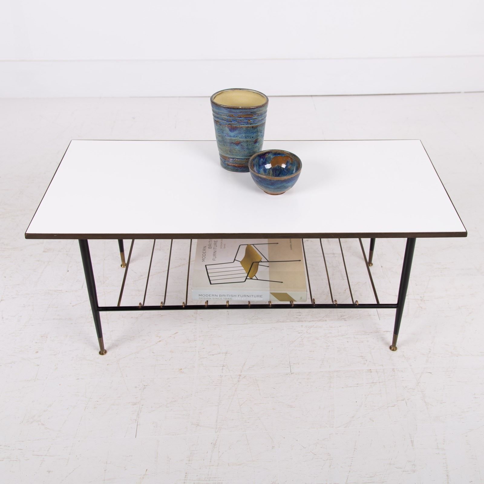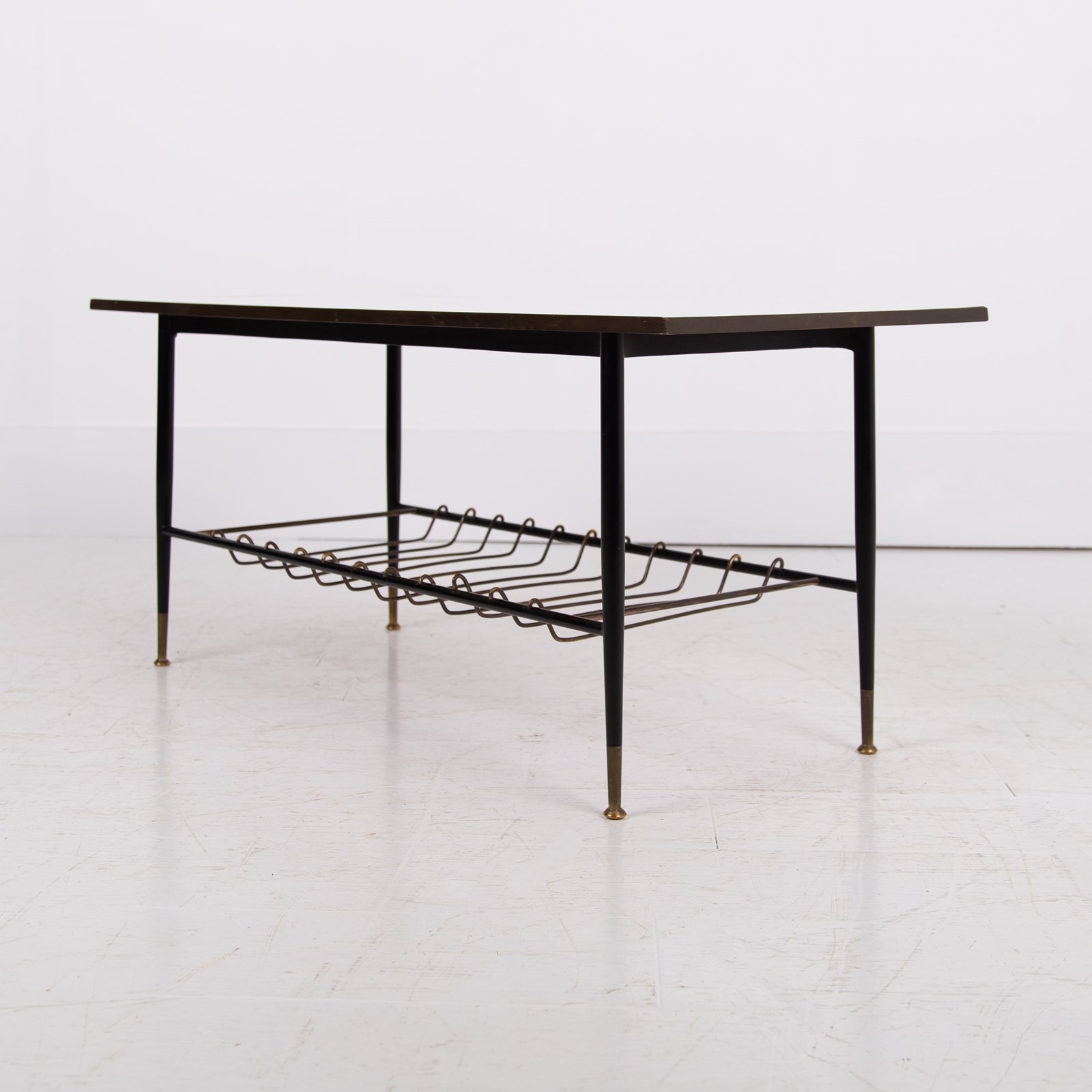 An extremely stylish and rare vintage coffee/side table of super quality. This one dates from the 1960-70’s and is beautifully made from brass, with its white Formica top and brass magazine rack underneath. The frame is solid brass with black legs with the feet caps in natural solid brass finish and are nicely tarnished. This one is in a rather excellent condition for its age with light day to day marks. The quality is truly evident throughout.