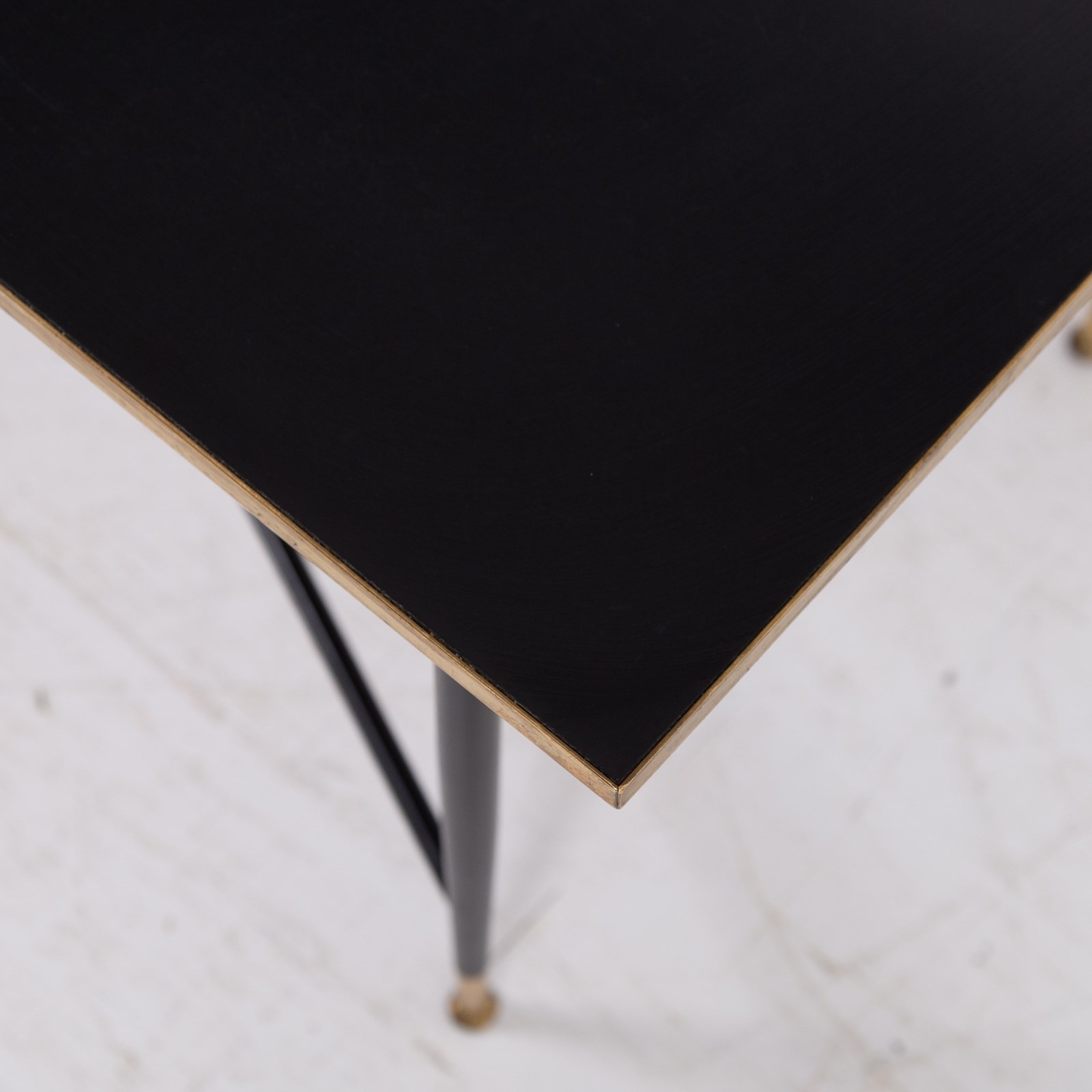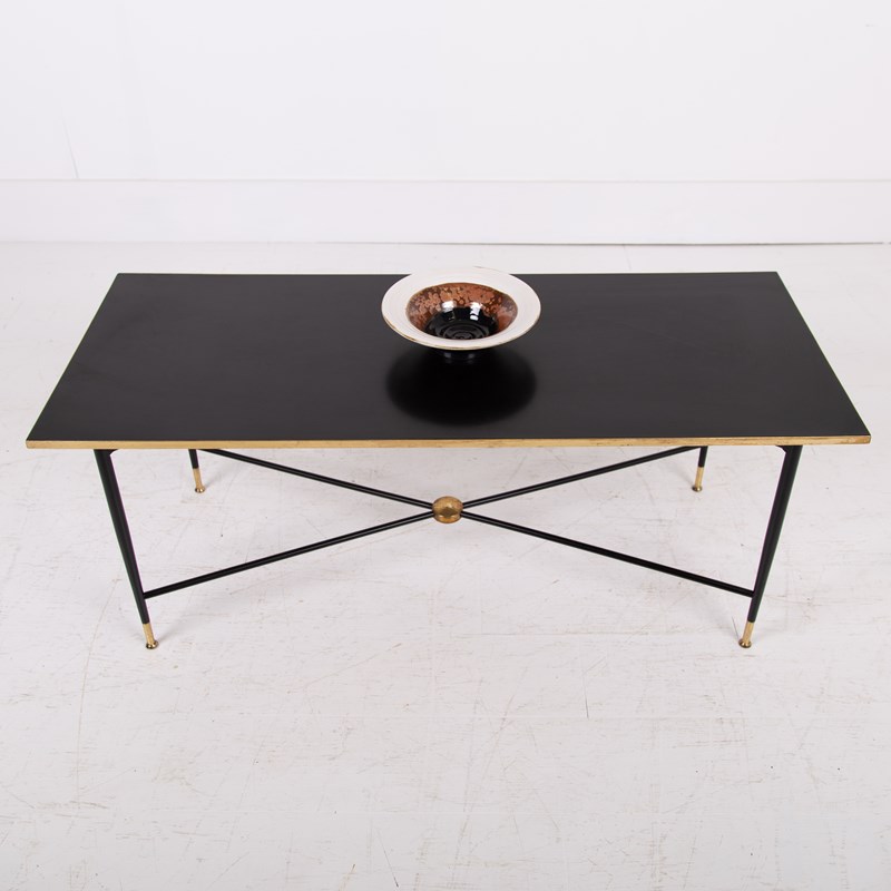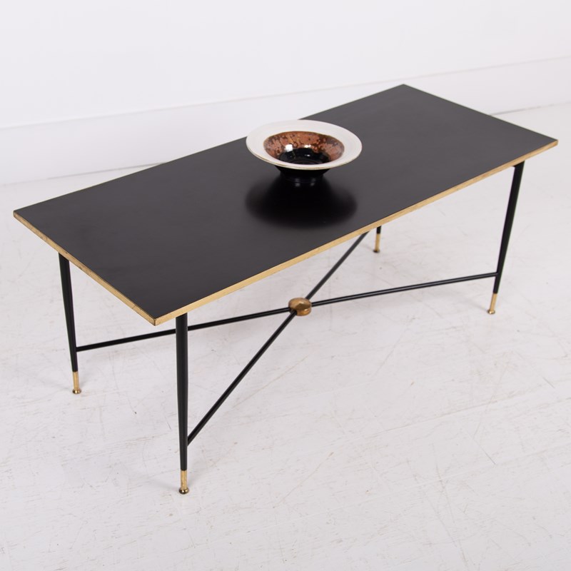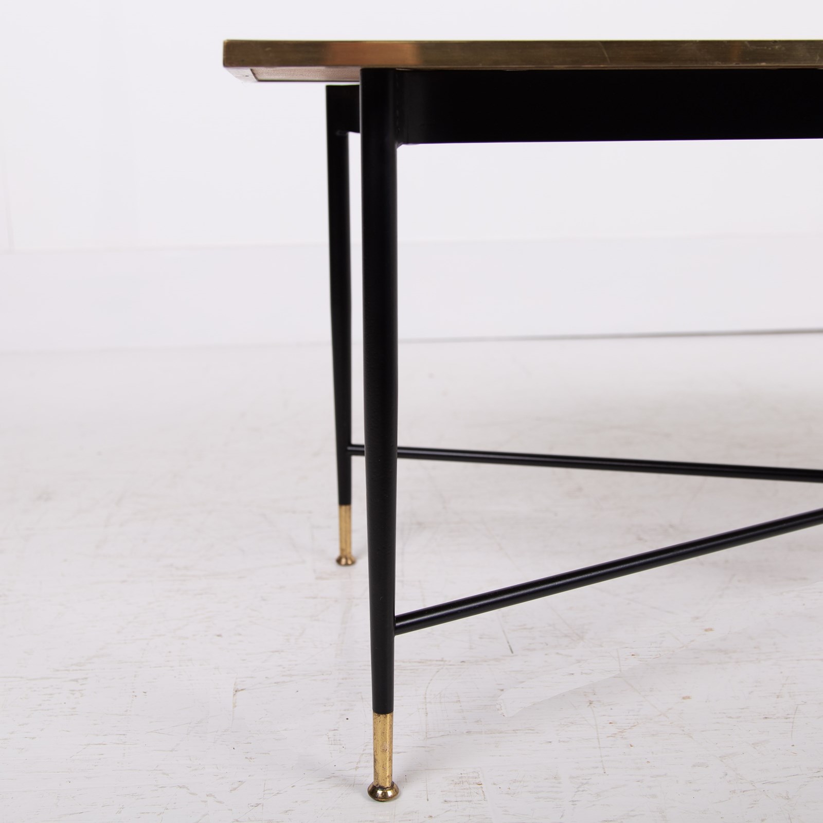 An extremely stylish and rare vintage coffee table of super quality. This one dates from the 1960-70’s and is beautifully made from brass, with its black Formica top.The frame is solid with the legs and stretchers finished in black paint, the feet caps are in their natural brass finish and are nicely tarnished. This one is in a rather excellent condition for its age with light day to day marks. The quality is truly evident throughout.
