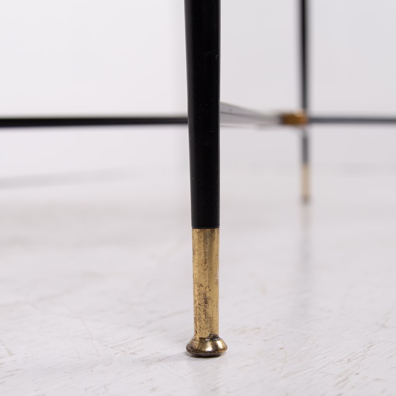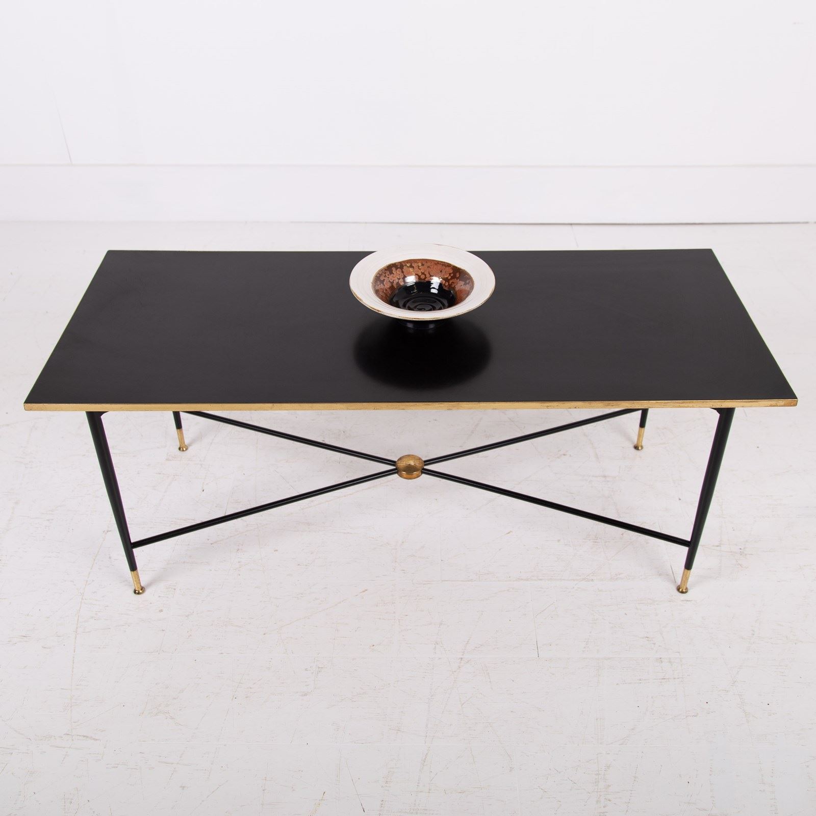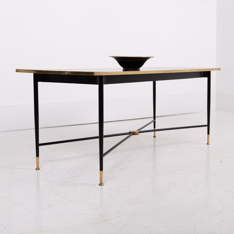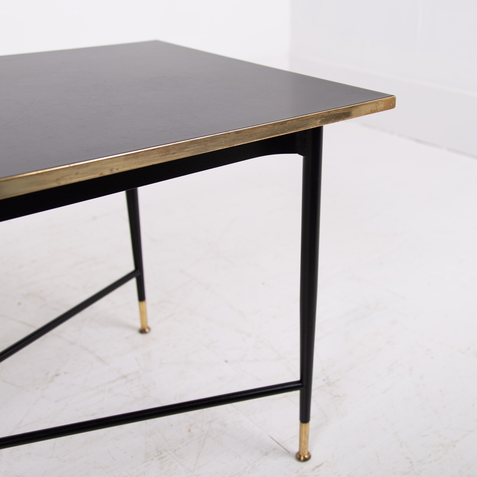 An extremely stylish and rare vintage coffee table of super quality. This one dates from the 1960-70’s and is beautifully made from brass, with its black Formica top.The frame is solid with the legs and stretchers finished in black paint, the feet caps are in their natural brass finish and are nicely tarnished. This one is in a rather excellent condition for its age with light day to day marks. The quality is truly evident throughout.