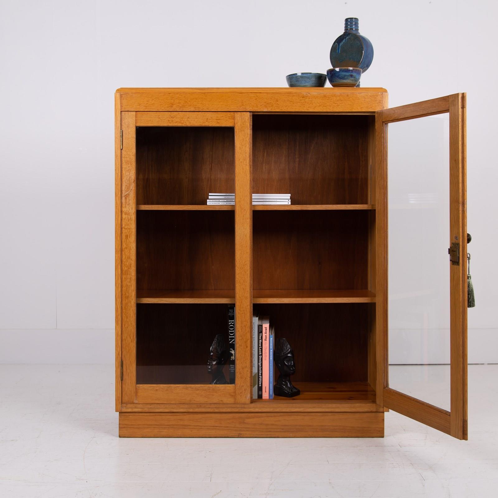 Mid Century Oak Glazed School Cabinet Bookcase