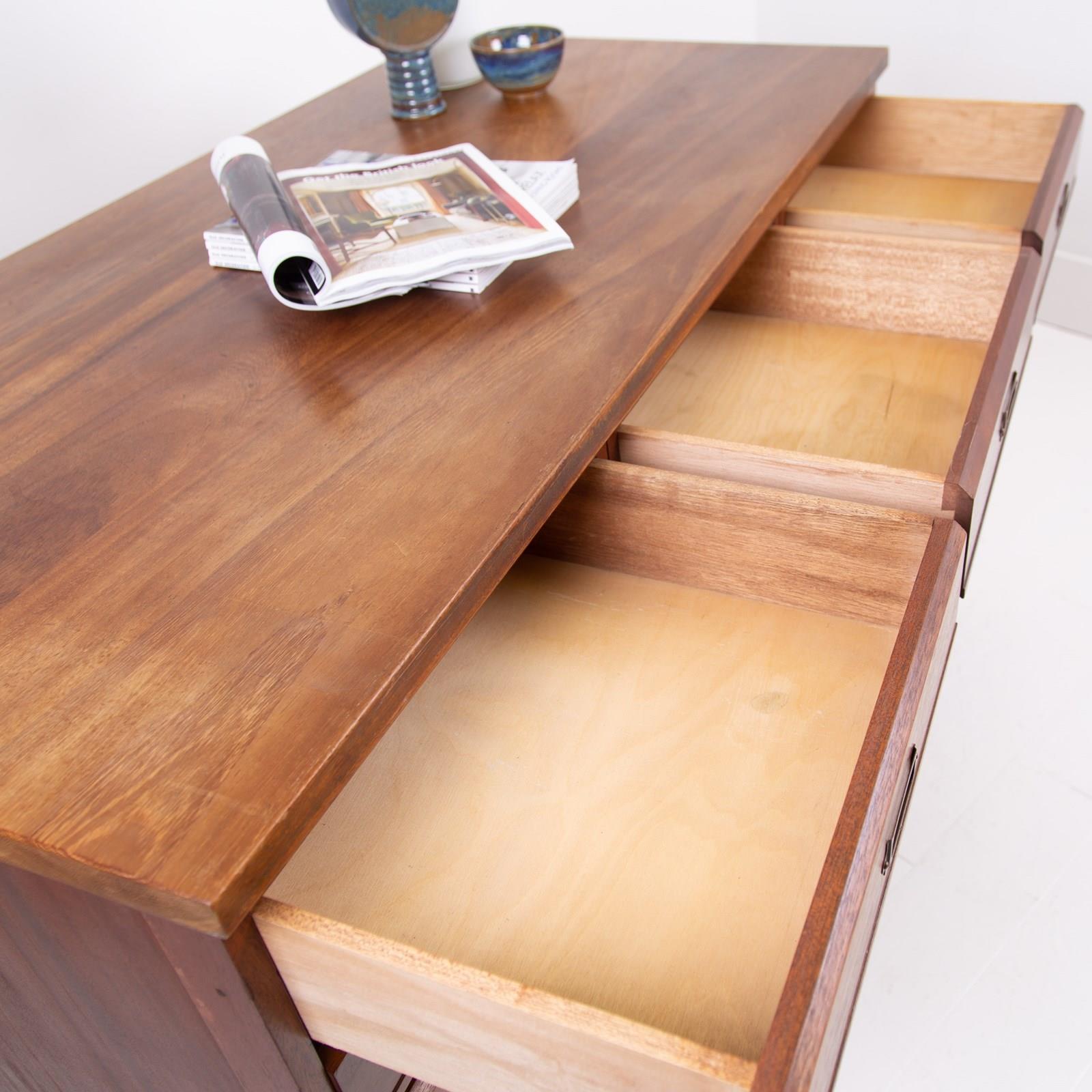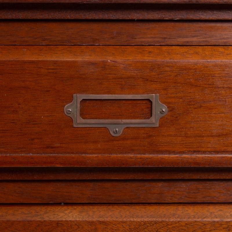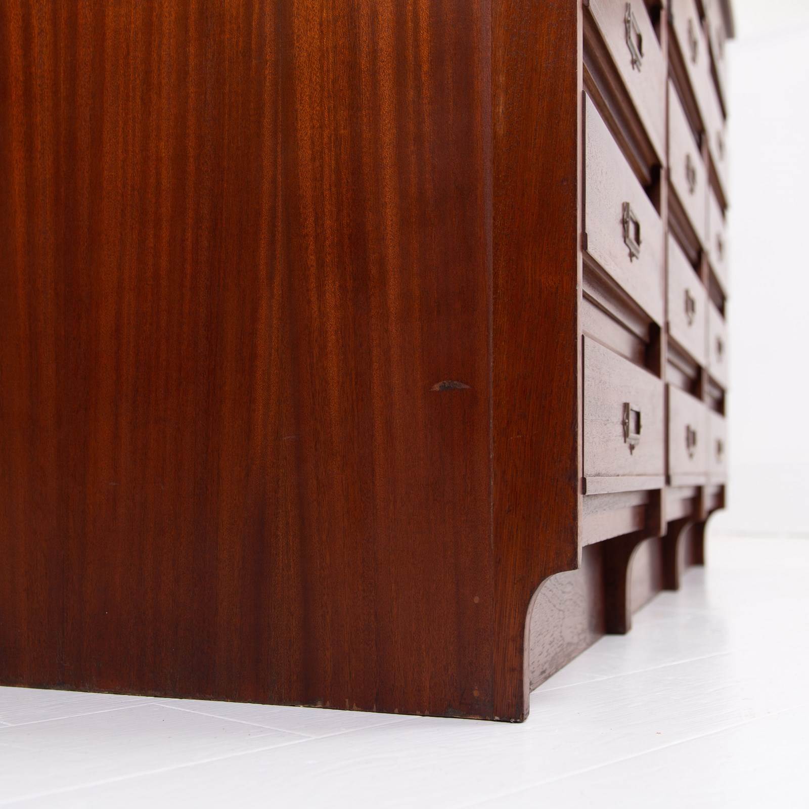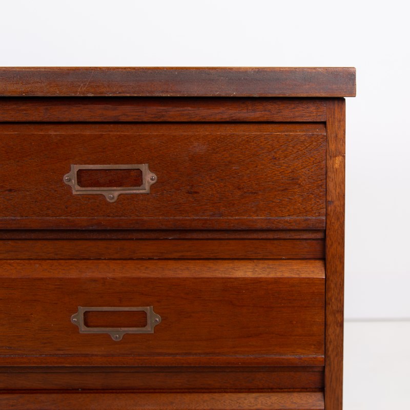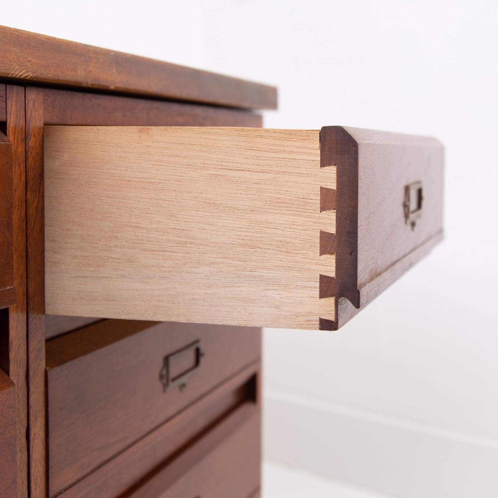 These would have been specially made for the university and are all dated 1952 the design echoes the era very well with nice angles and form especially to the 15 drawers. As mentioned these rare pieces survive in good order, with the 15 drawers running well. All the drawer fronts have the original brass tarnished label holders in place. Expect day to day lab use to the sides, bottoms and the thick tops, these are not new. We have ensured the cabinet is clean and tidy and ready to place.