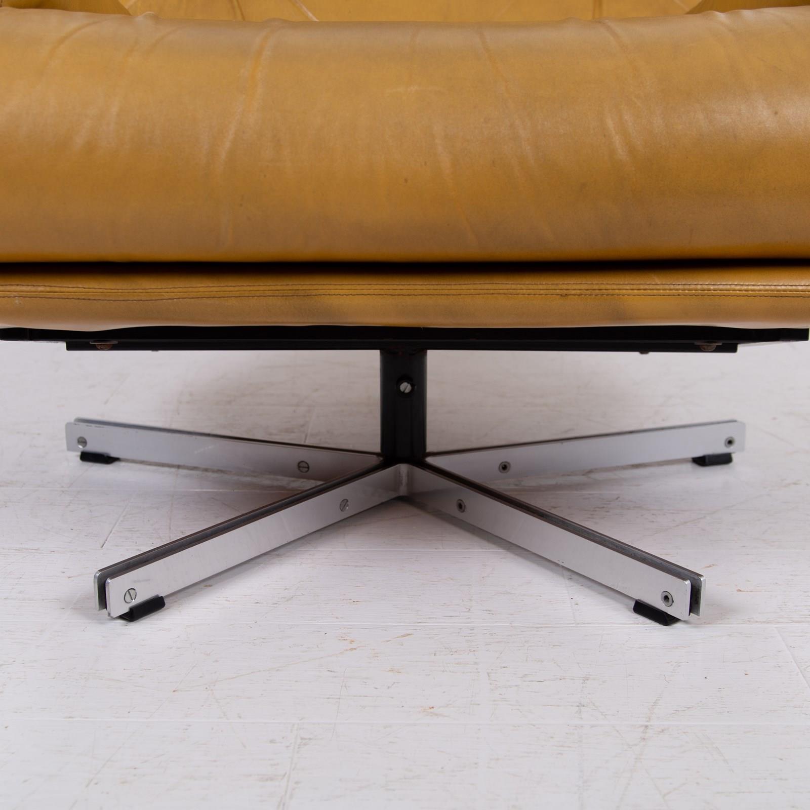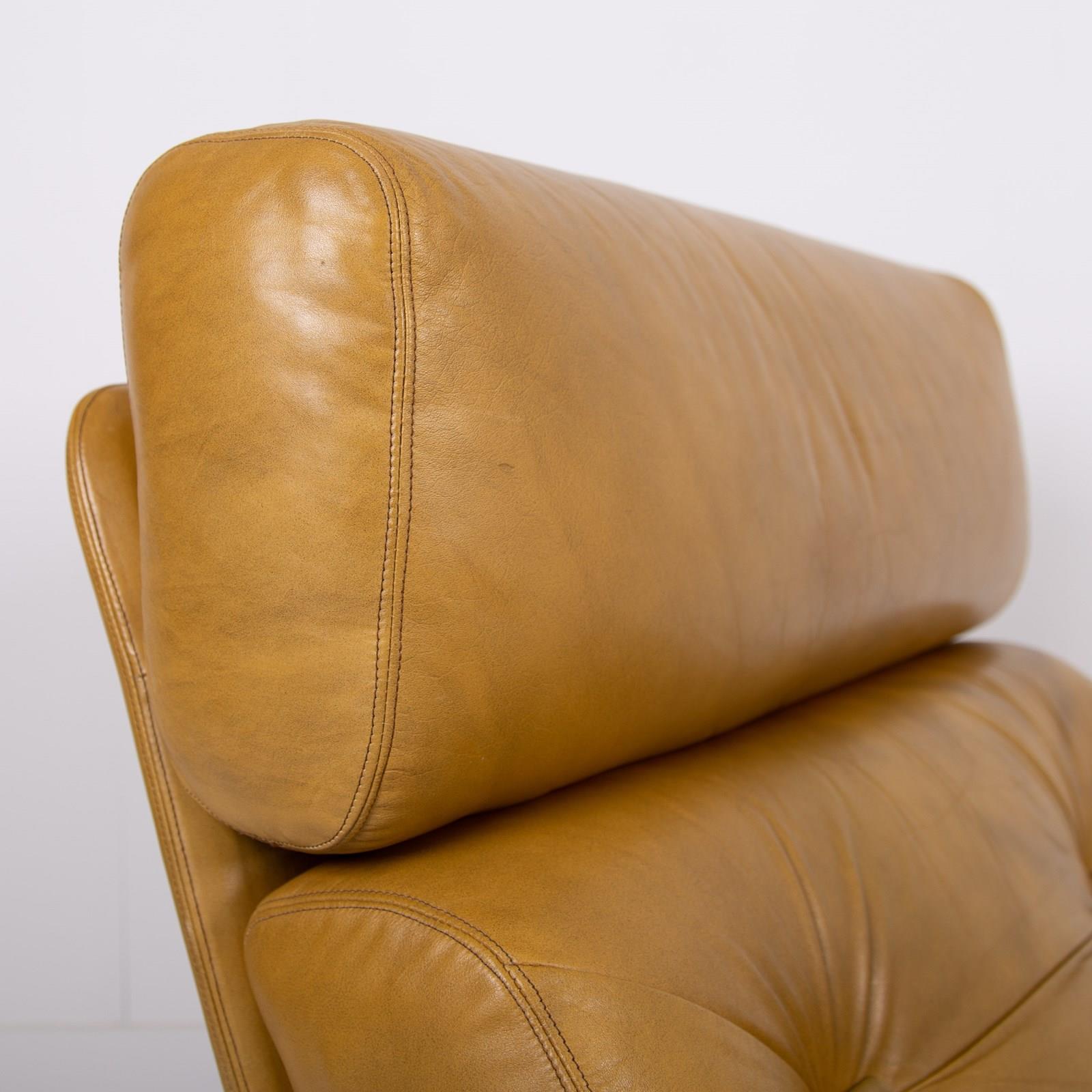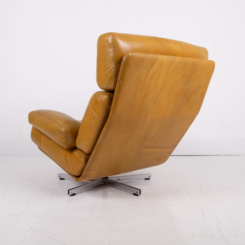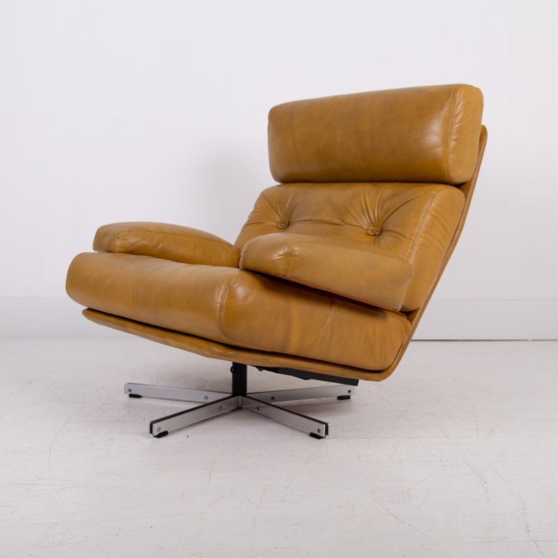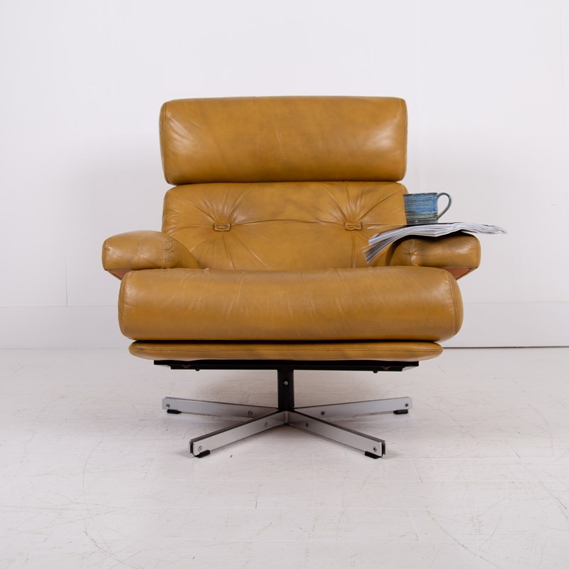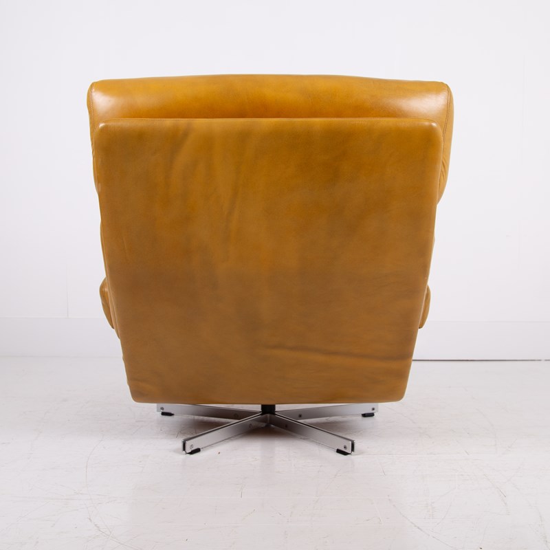 Mid Century Swivel Mustard Leather Armchair C1970