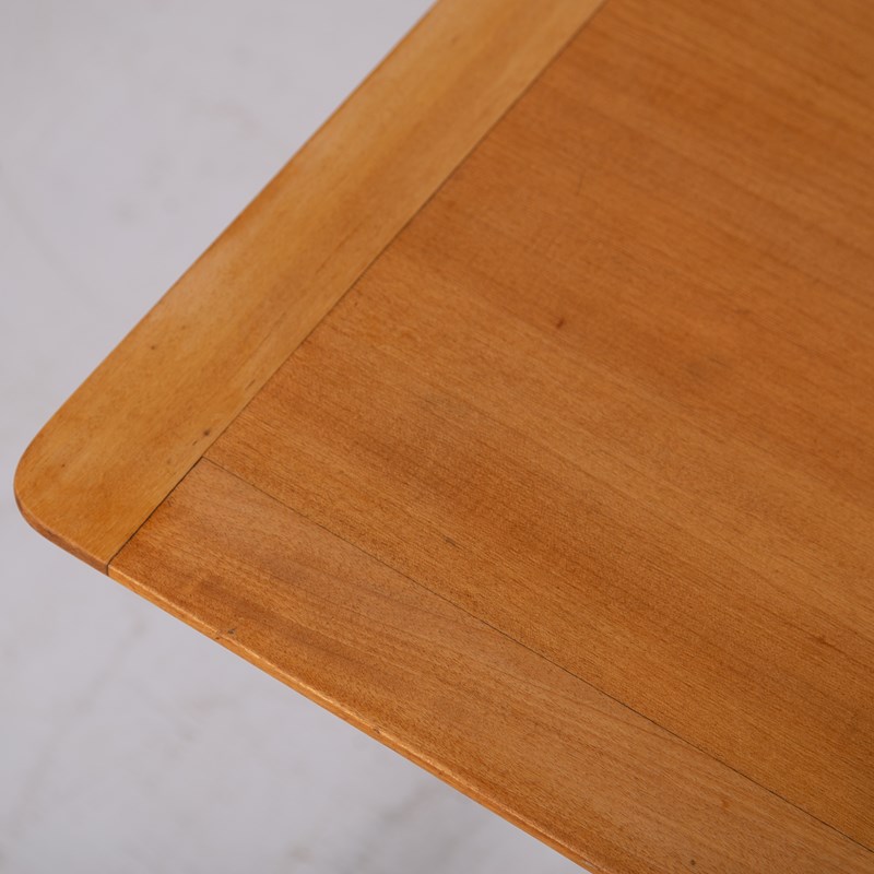 This works well not only as a table but is the perfect size for a work desk. The piece sits in good order with sensible day to day wear, nothing off putting and has enjoyed a session in our workshop. We have a paper workshop label to the underside of the top. The top does unscrew if space is tight for placing.