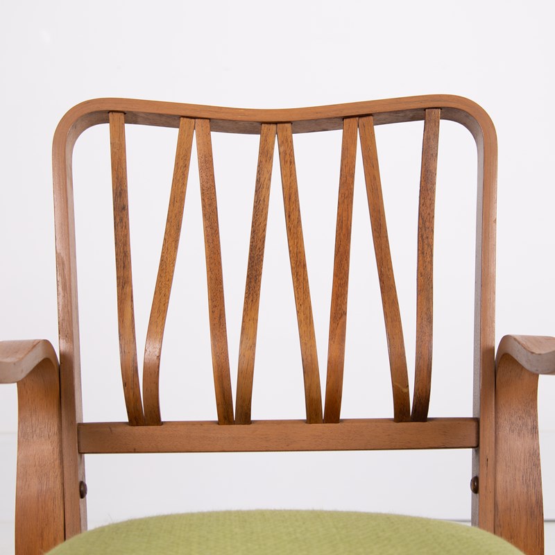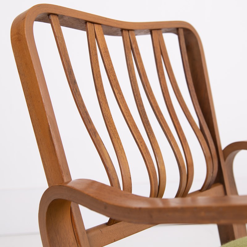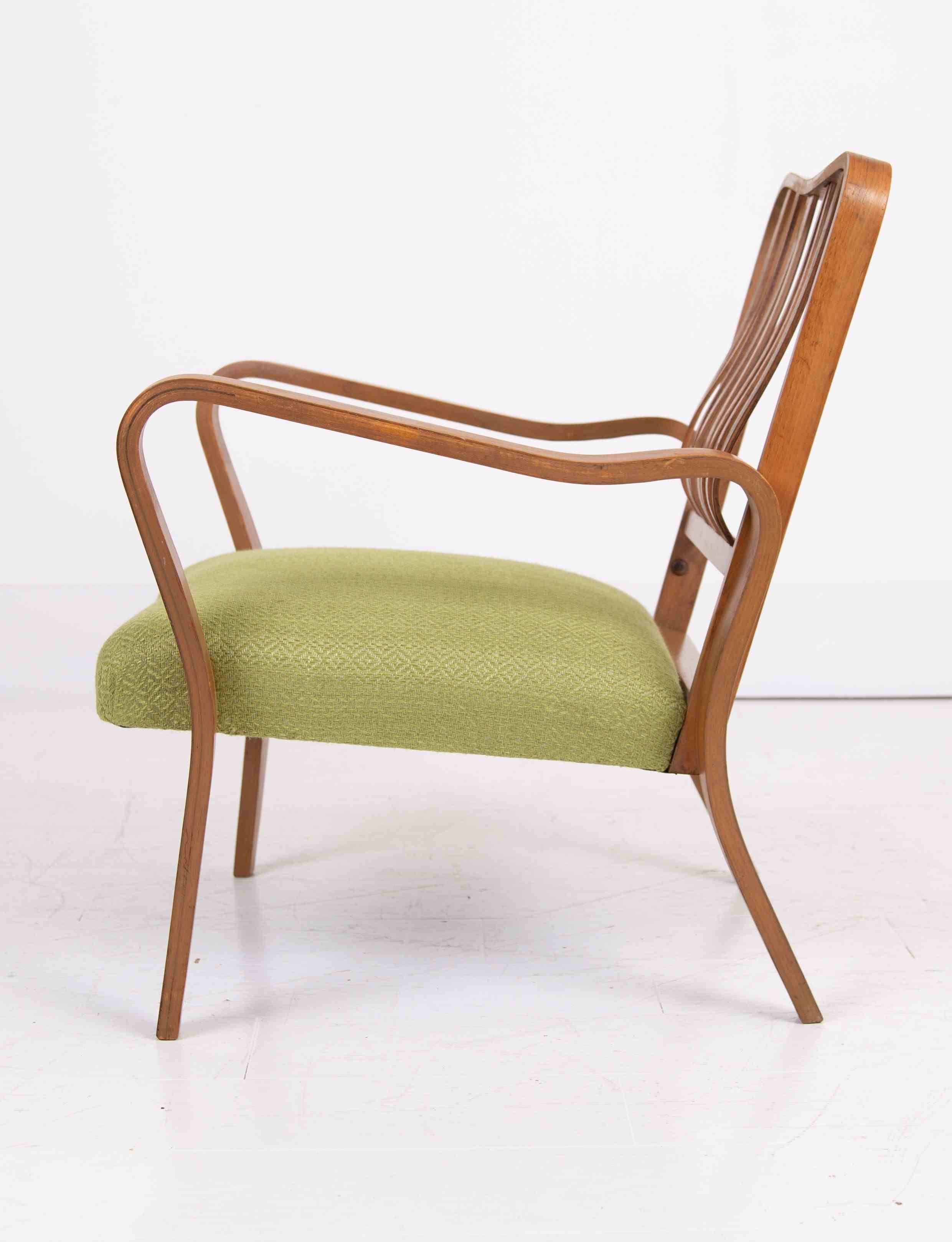 A wonderful modernist “Lindon” armchair designed by Eric Lyons which was part of the Tecta range for Packet Furniture. This was an early example with the marker's ink stamp under the arms and having the attractive shaped bentwood back - some were solid upholstery backs.