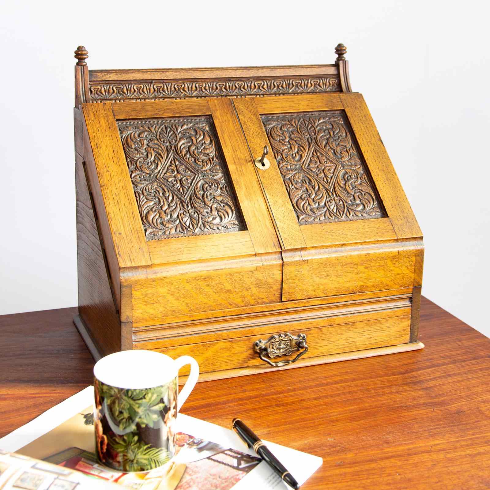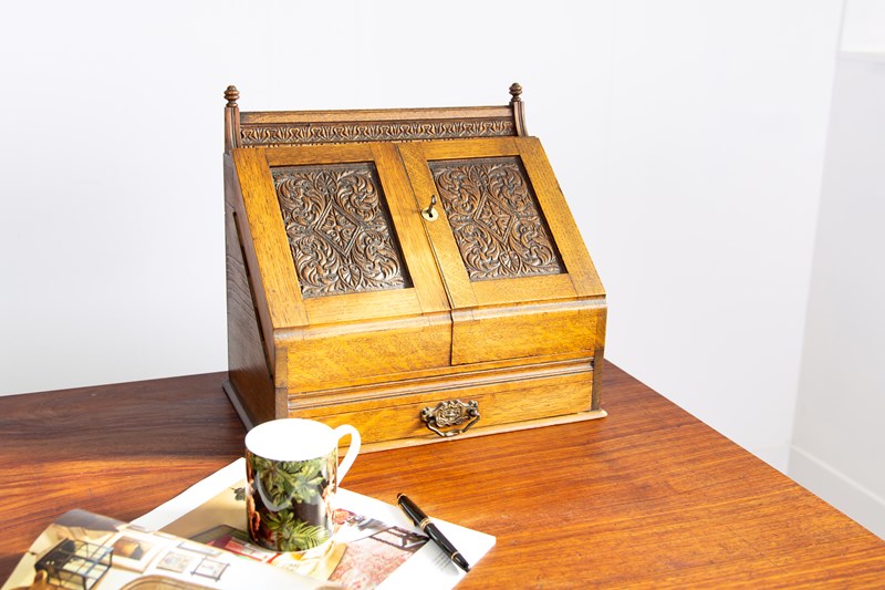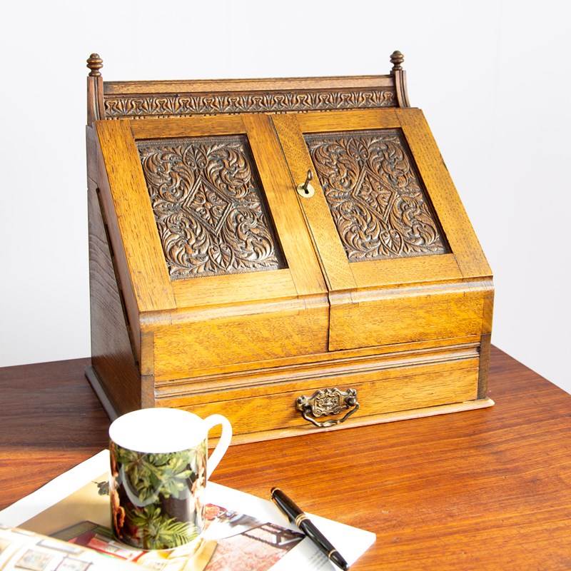 Oak Aesthetic Movement Desk Tidy Document Holder