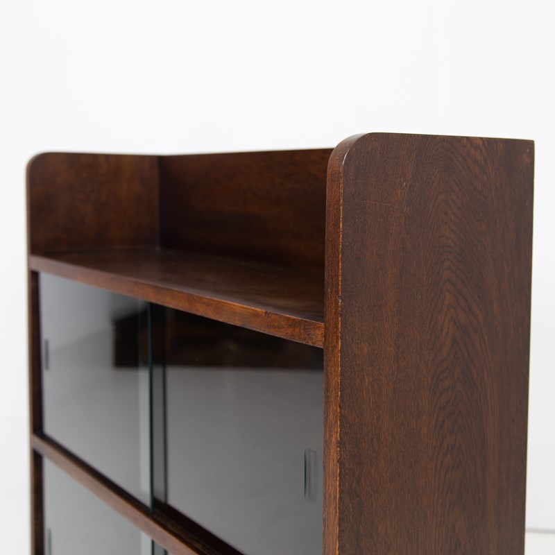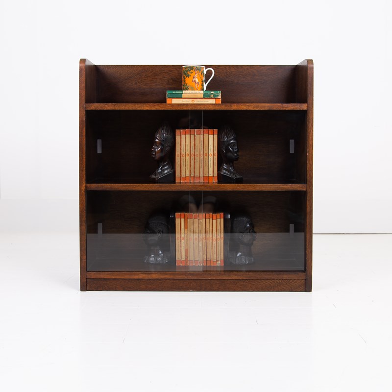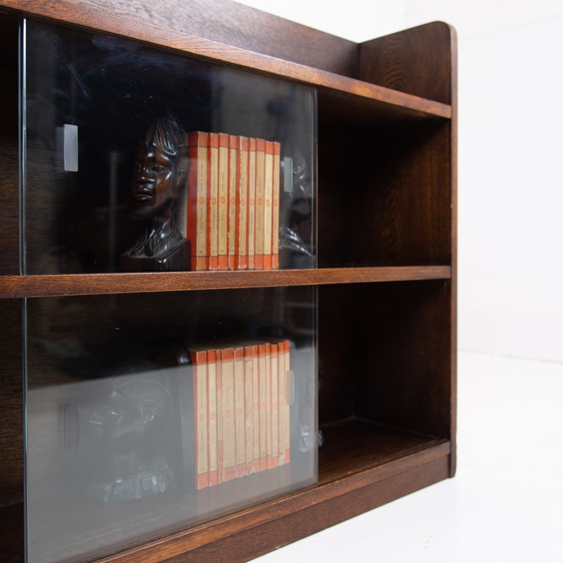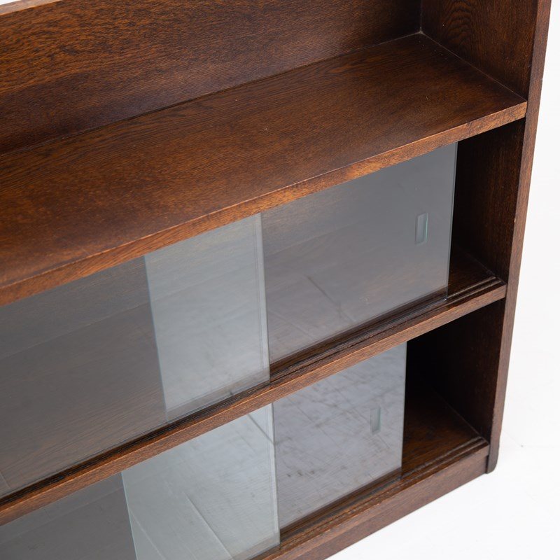 Oak Bookcase With Sliding Glass Doors C1940s
