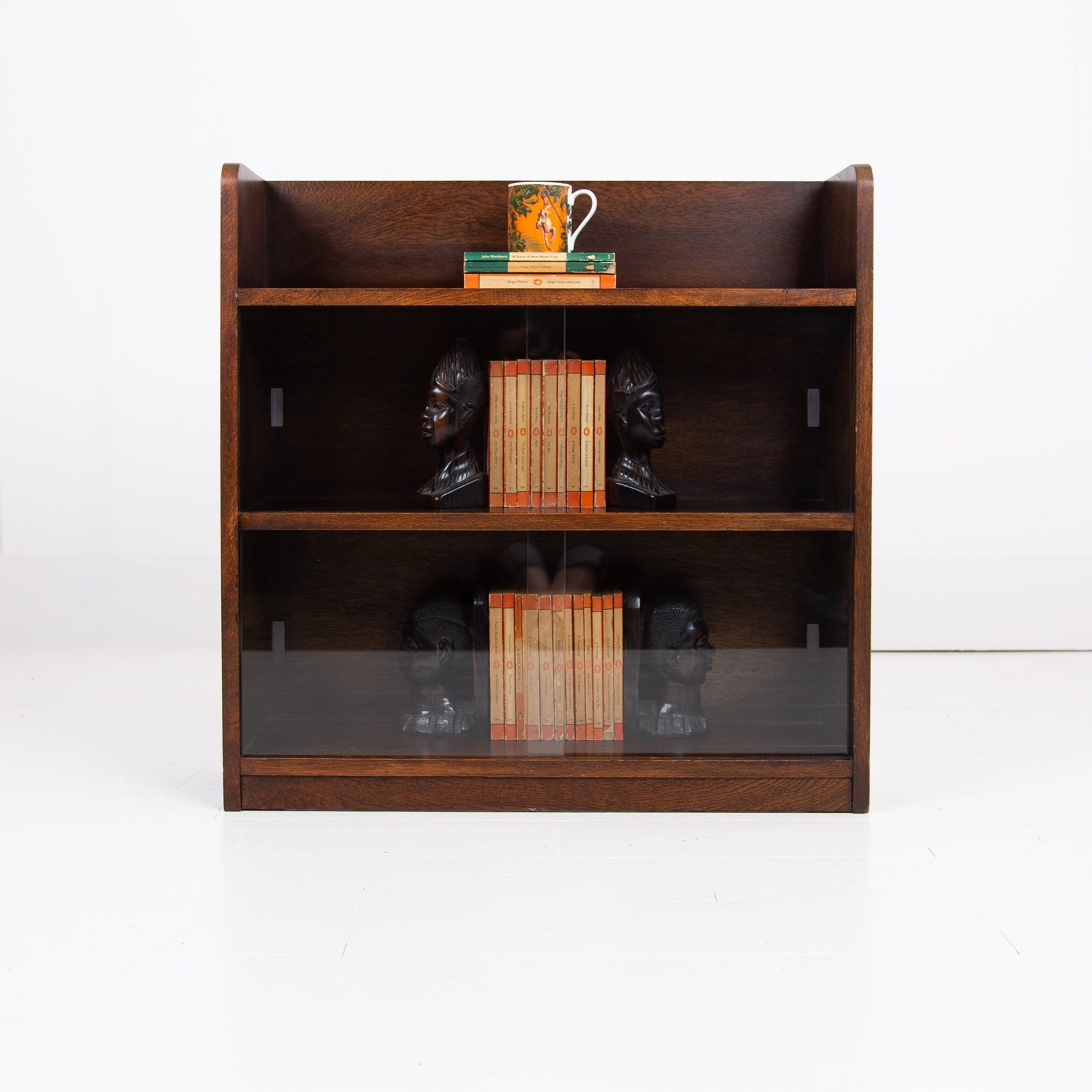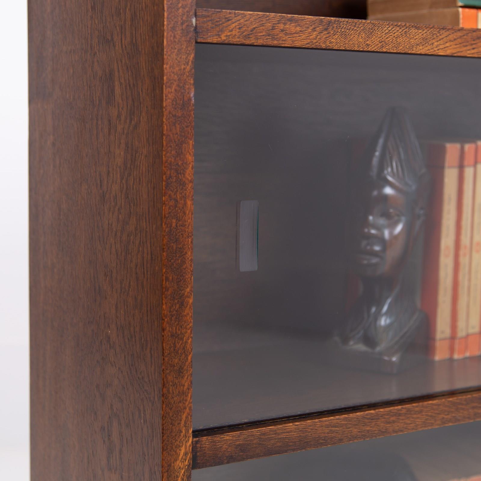 A British Oak Bookcase With Sliding Glass Doors C1940s