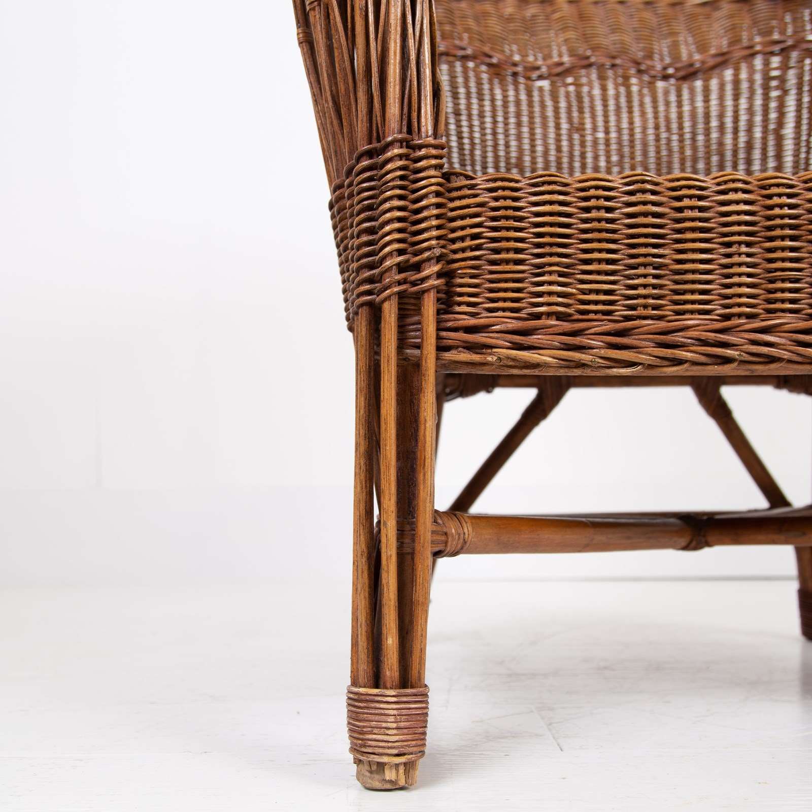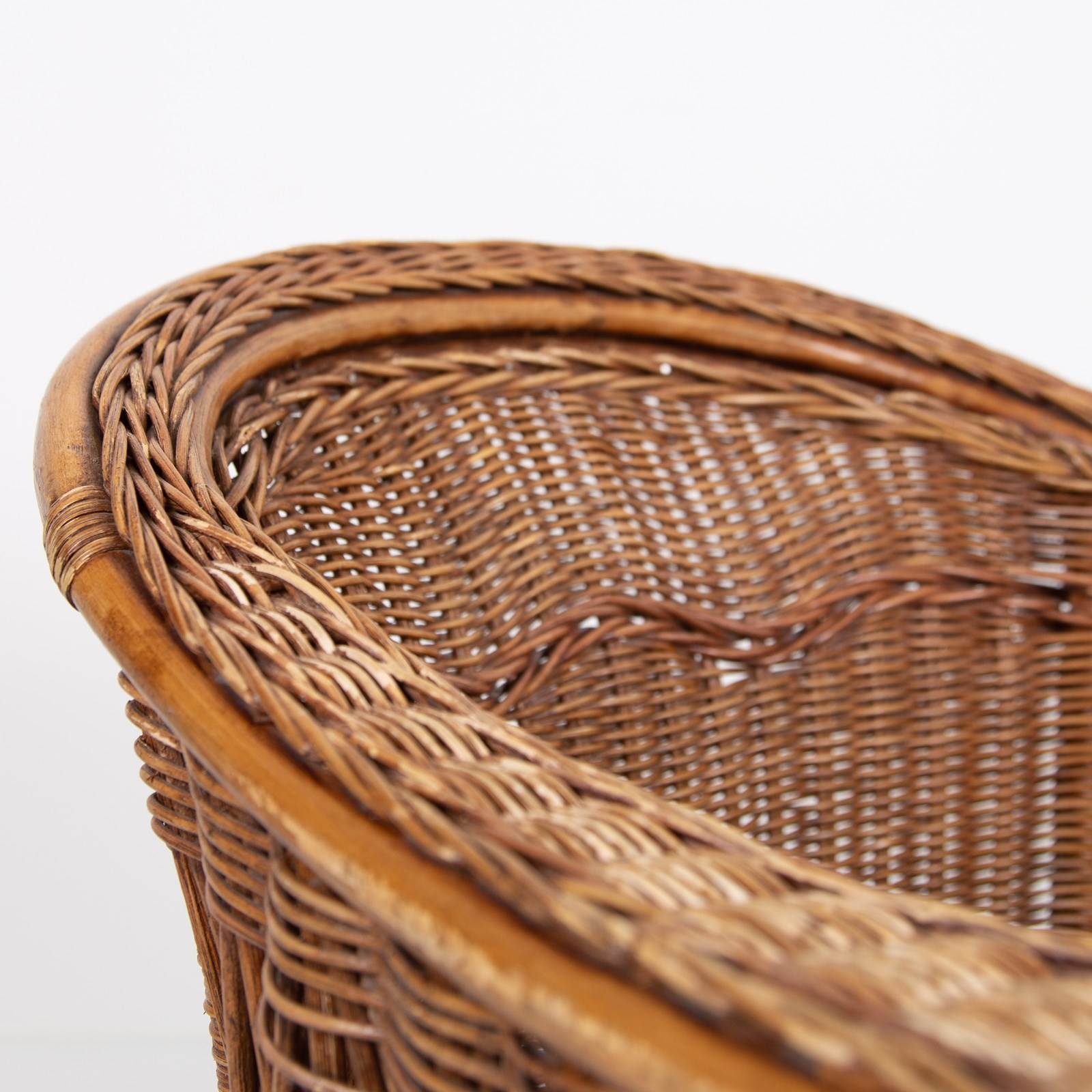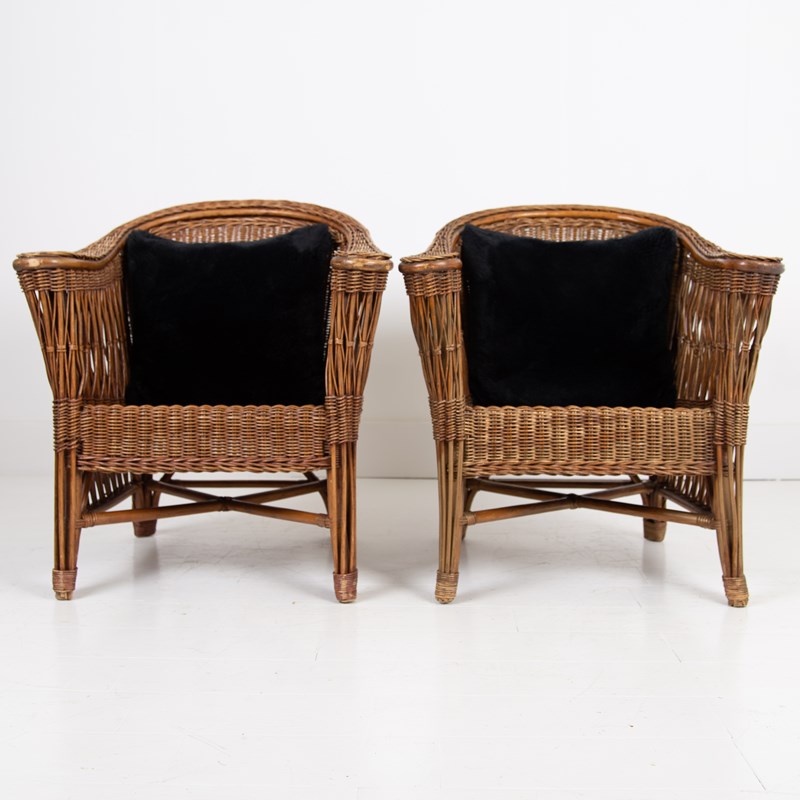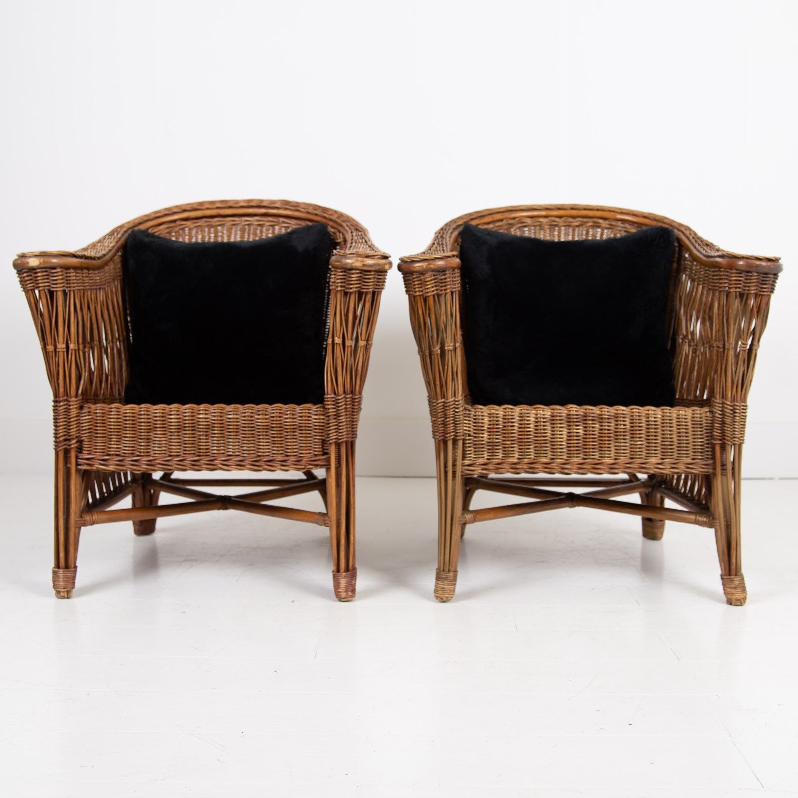 Pair of Mid Century Wicker Armchairs Garden Room Chairs