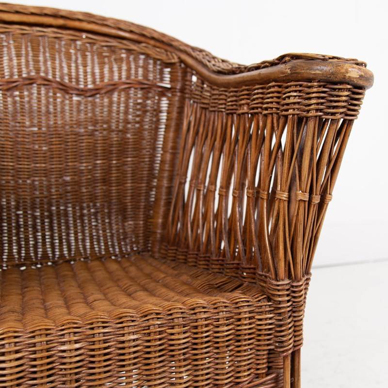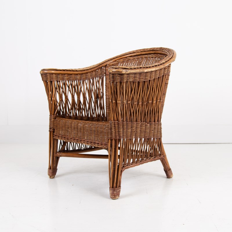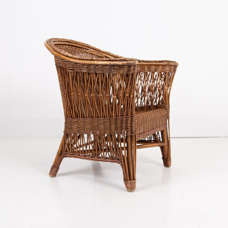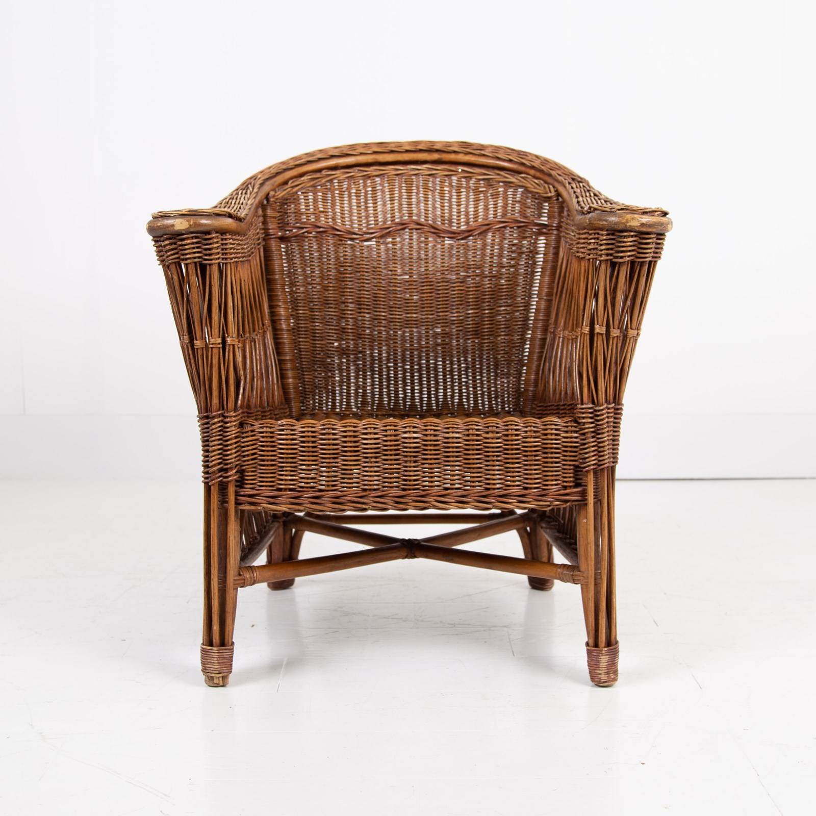 Pair of Mid Century Wicker Armchairs Garden Room Chairs