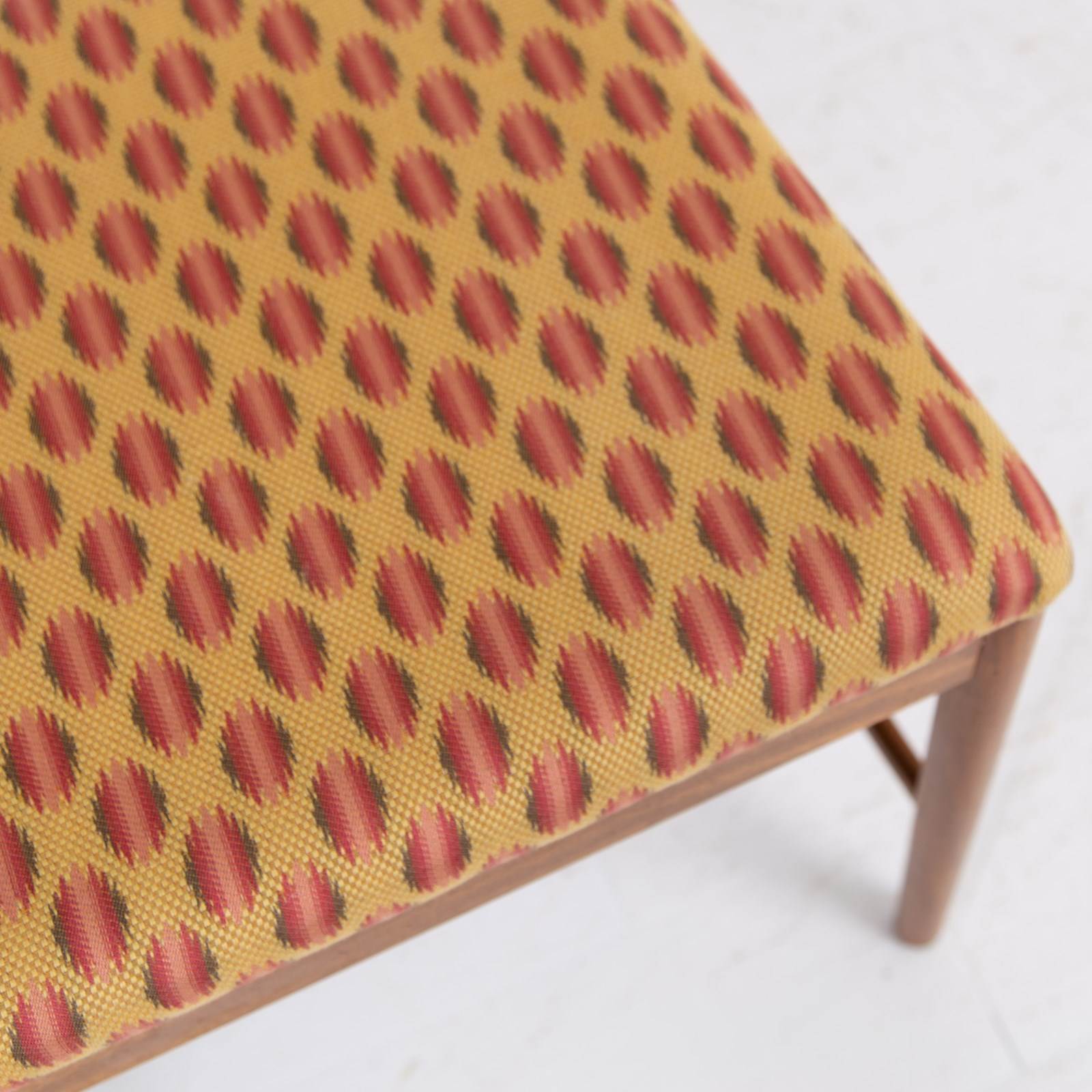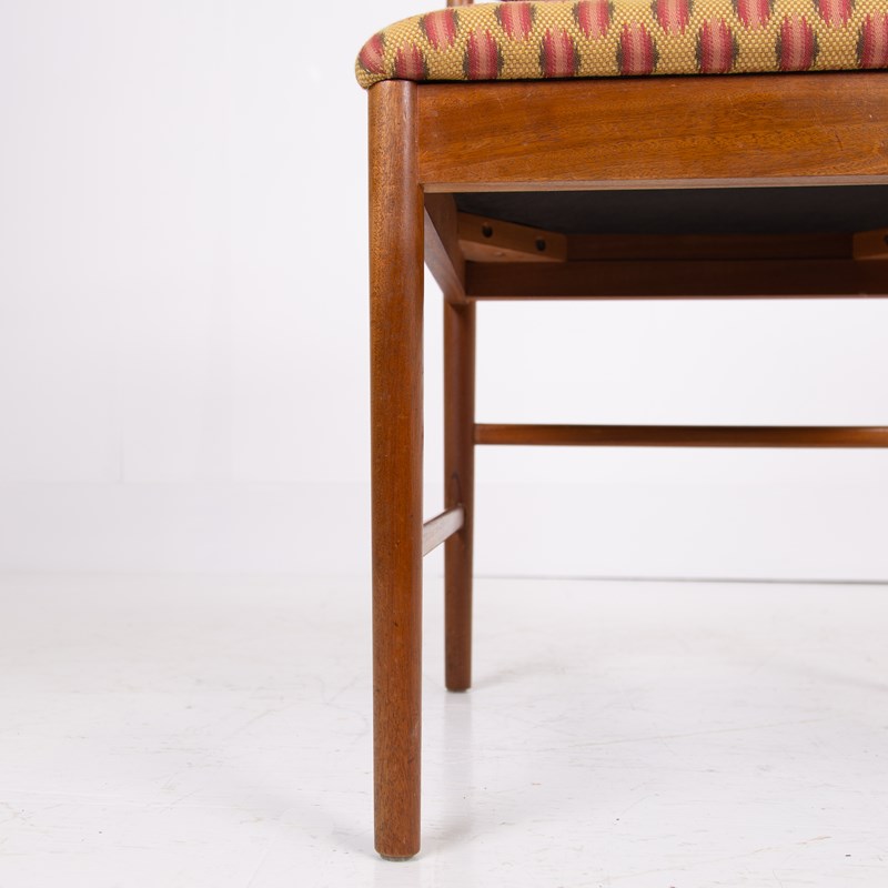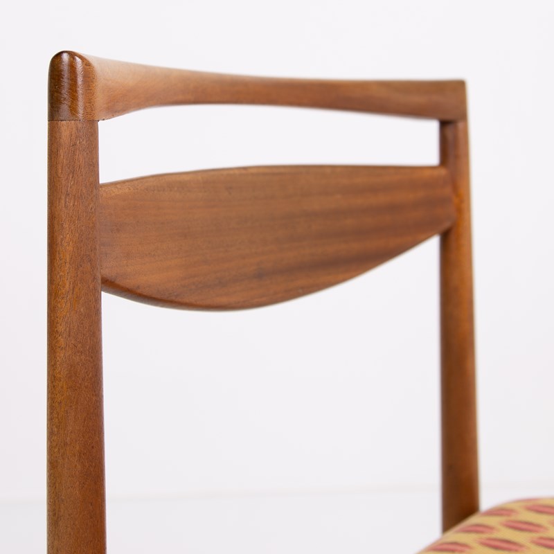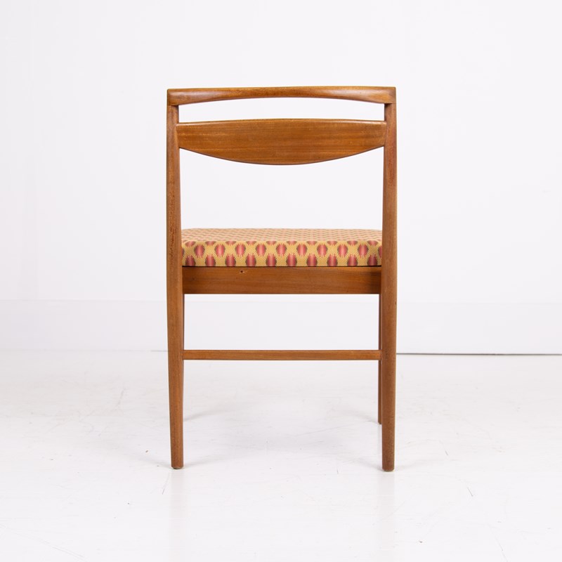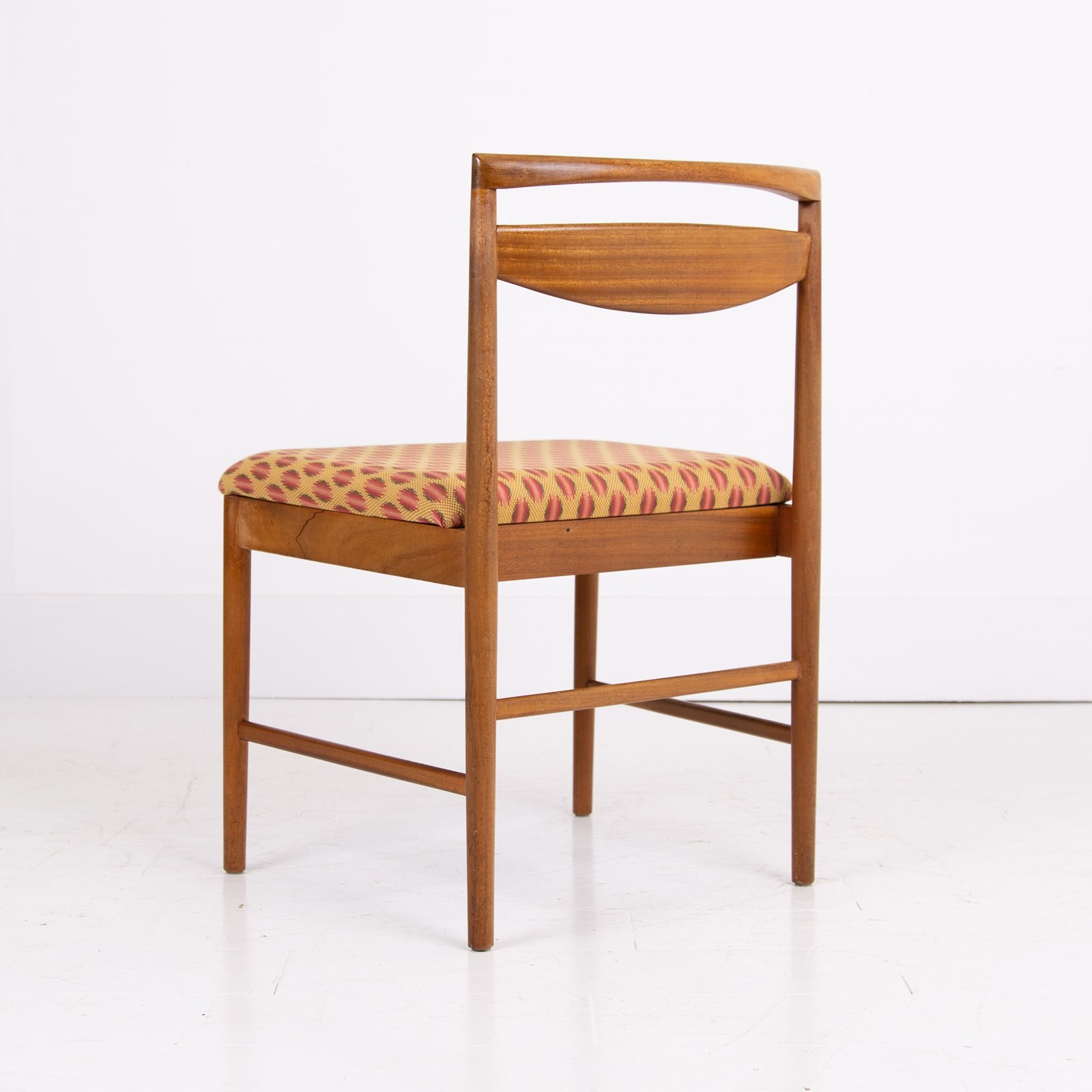 We have a super set of McIntosh 9433 model teak dining chairs designed by Tom Robertson in the 1970s. The design incorporates simple lines with a nod to its Danish counterparts from the same era. The well sized seats have been recently covered in a high quality, woven Zoffany fabric which is in perfectly good order. If you wish for another fabric Mark, our upholsterer could reupholster for £50 per chair plus VAT and you would require 3 to 4 metres of fabric which we can assist with samples etc.