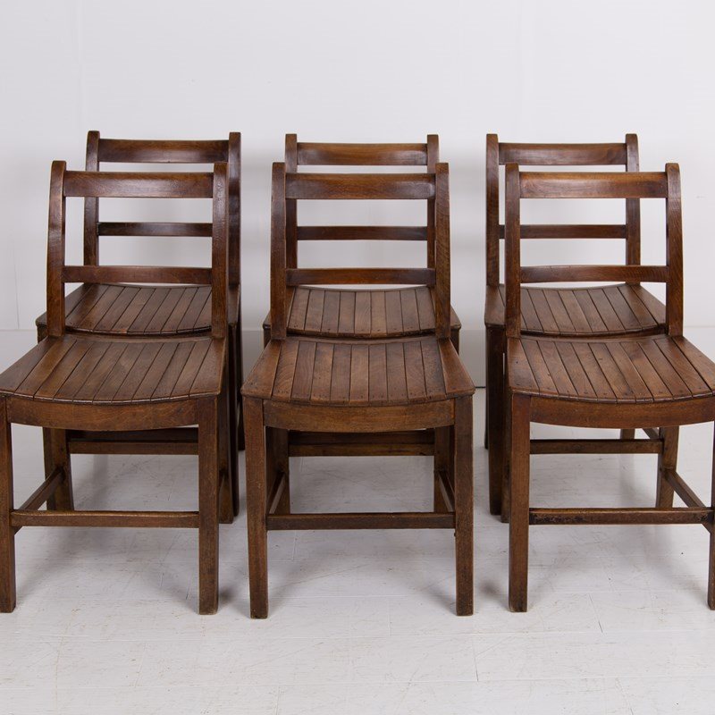 Set Of 8 Government Issue Slatted Dining Chairs C1940s