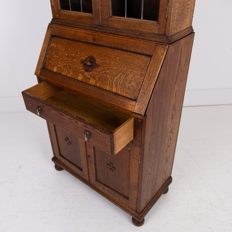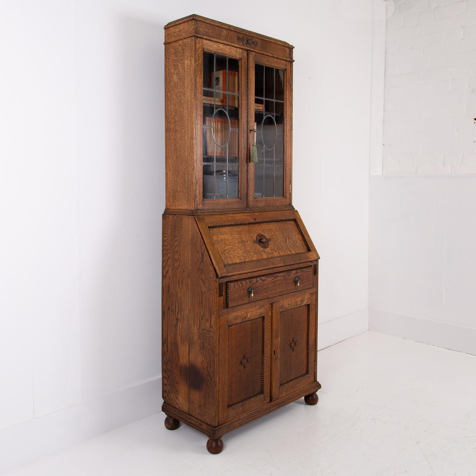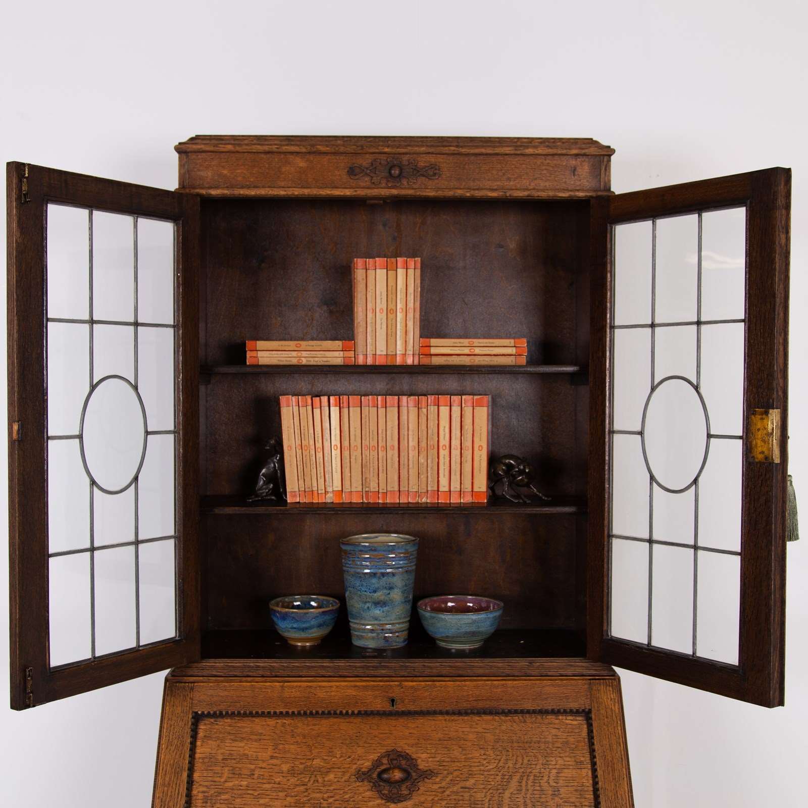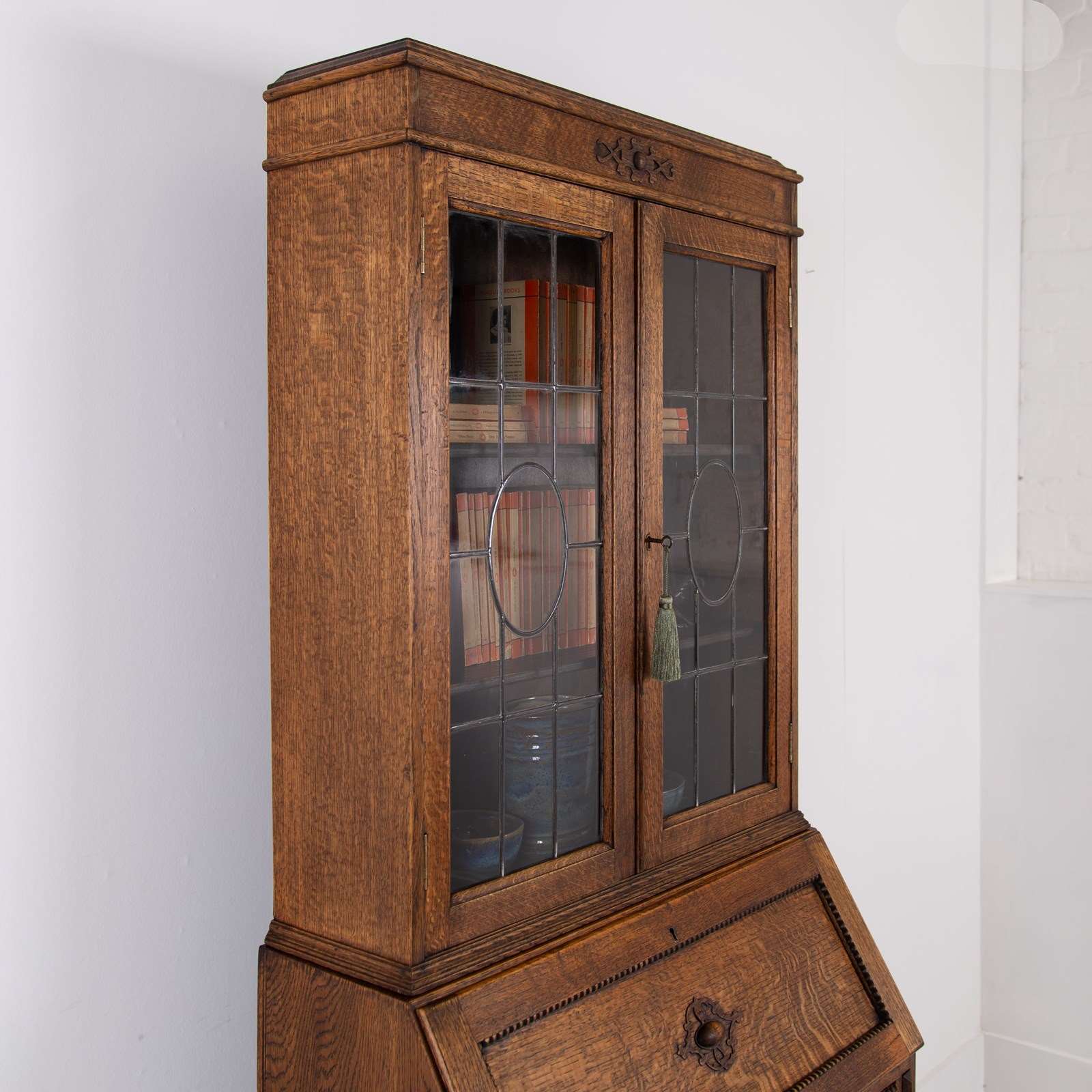 Smaller Oak Glazed Bookcase Cabinet Bureau C1920s