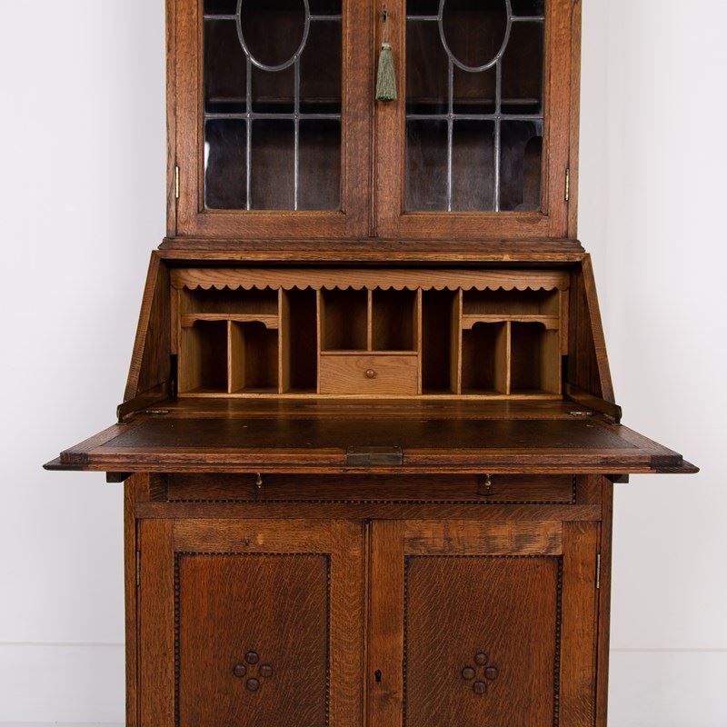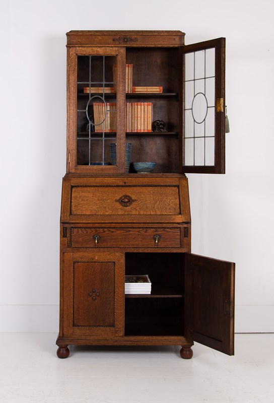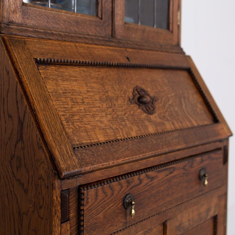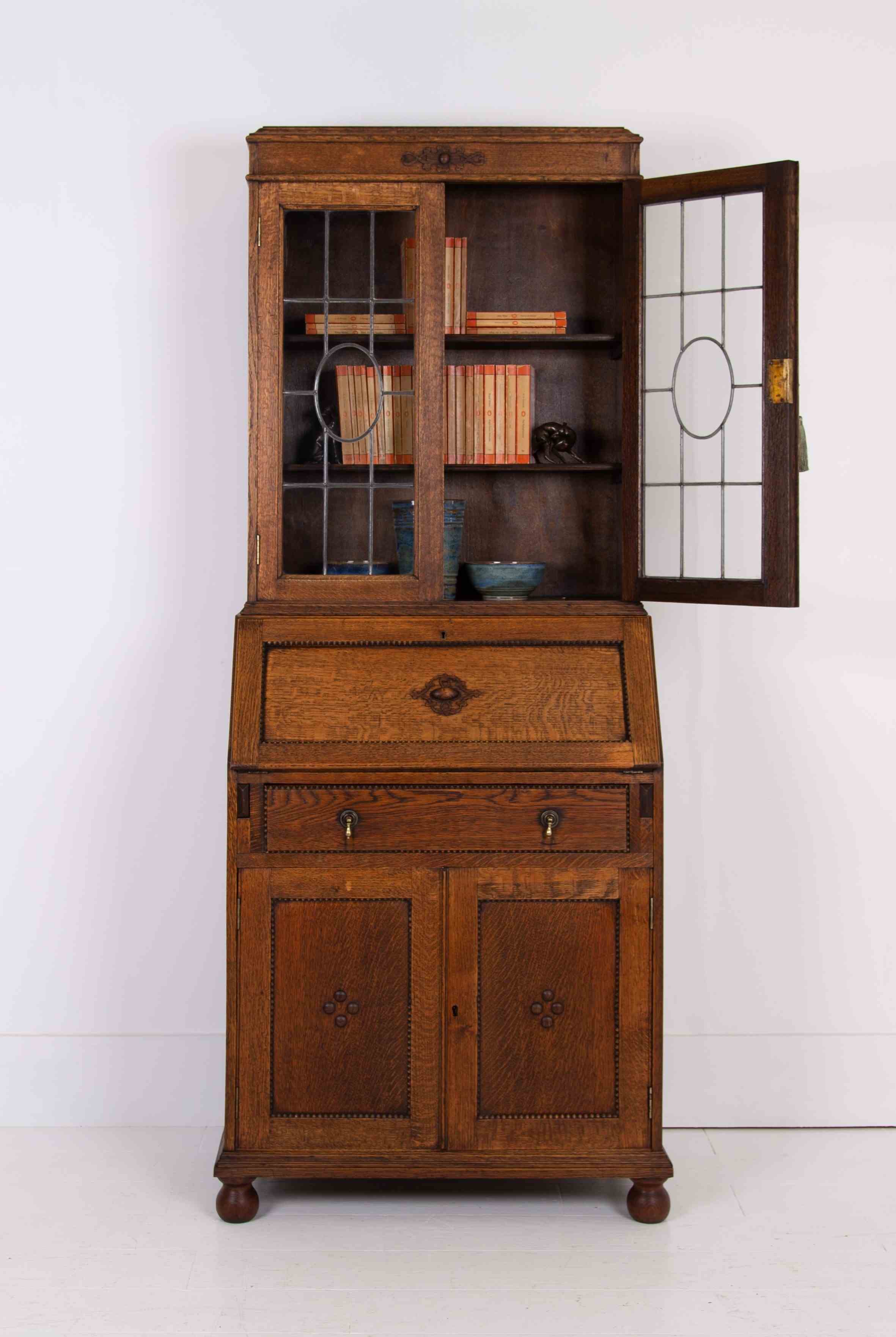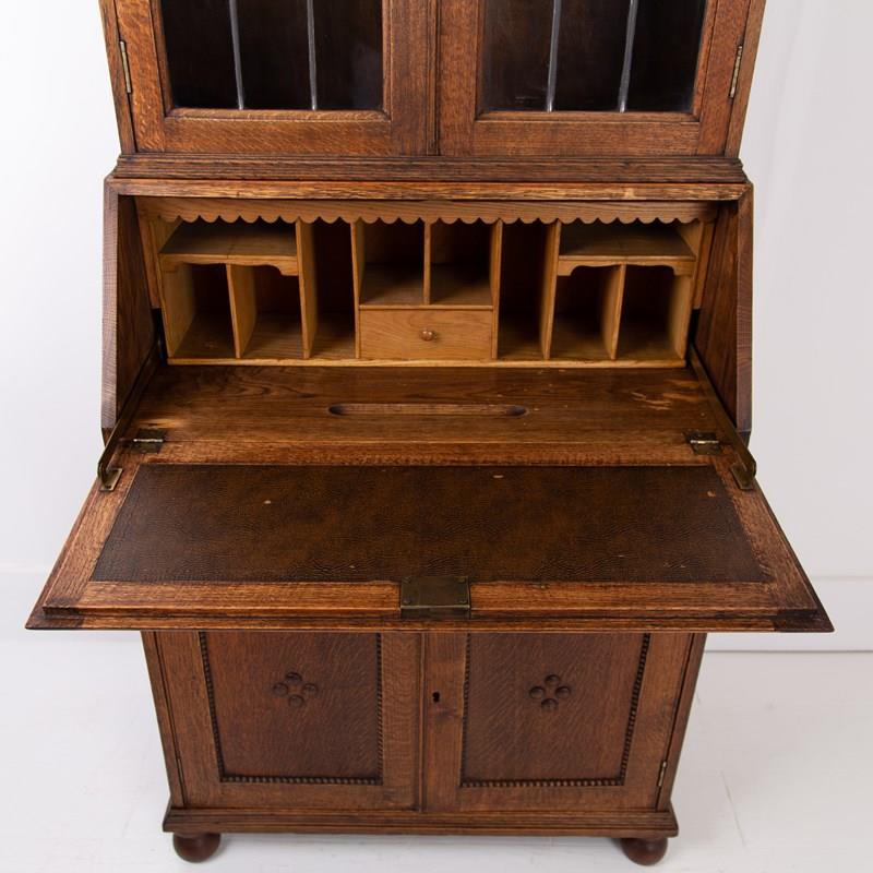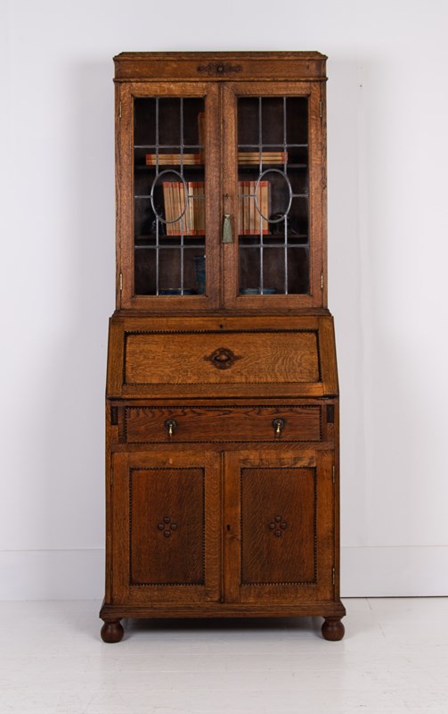 Smaller Oak Glazed Bookcase Cabinet Bureau C1920s