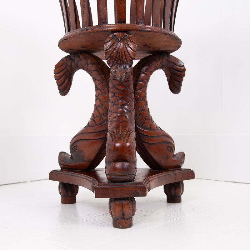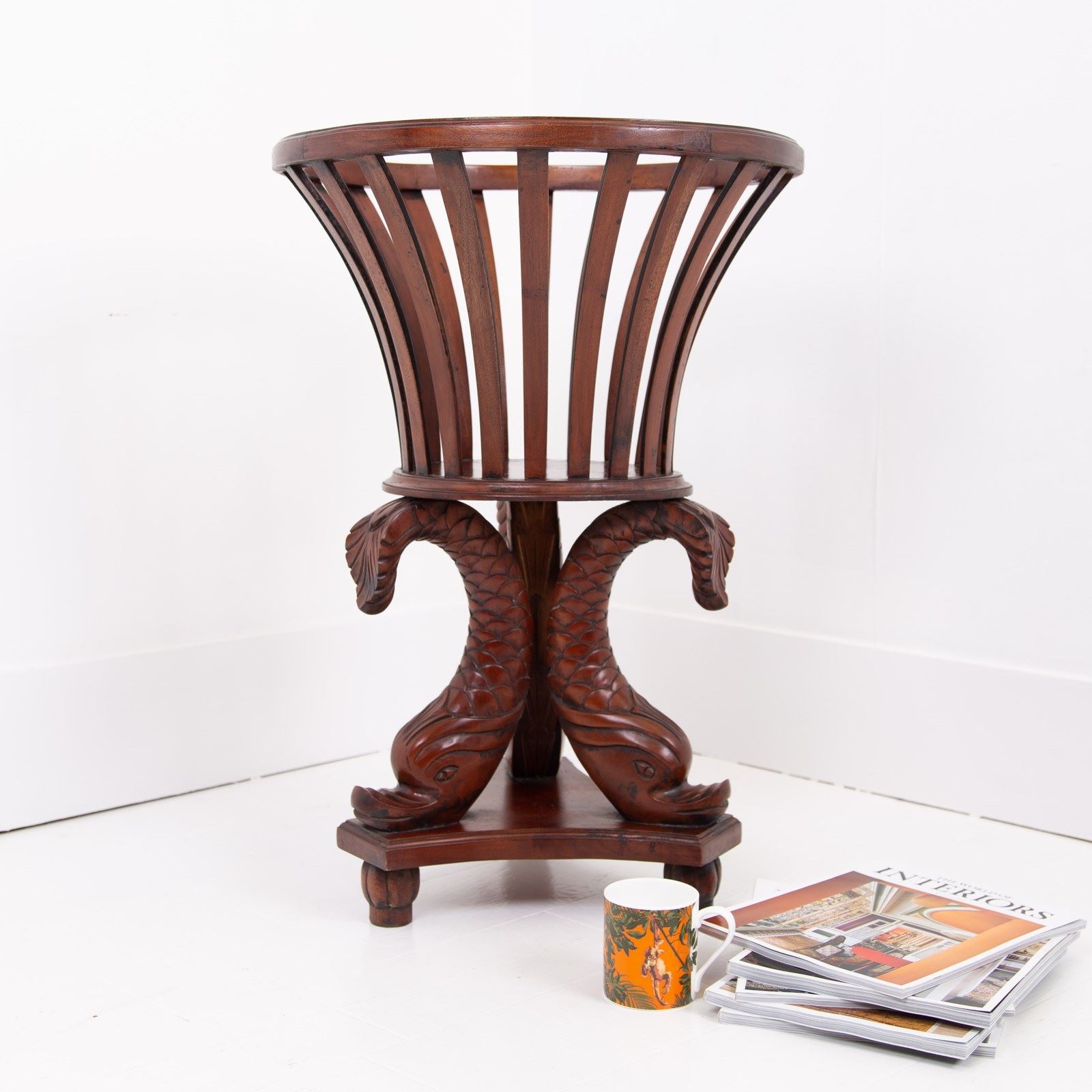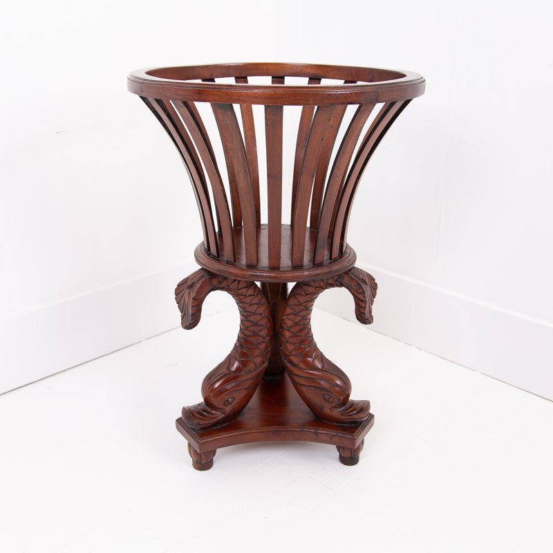 Highly decorative and rather glorious looking planter of good scale with its slatted trumpet shaped plant holder supported by 3 carved dolphins, a recent find from a large Cheshire home alongside a few other interesting pieces…