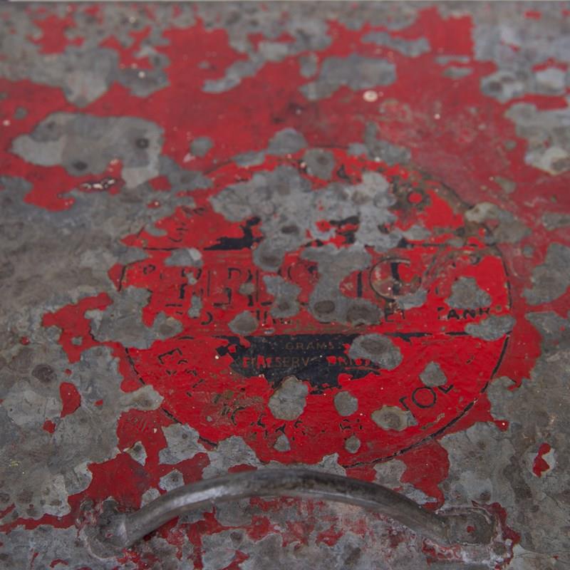 We are fortunate to have purchased the fire bins direct from the mill which would have been used in the winding shed. This is going to make a fabulous log holder or maybe cane or umbrella holder with its genuine worn look and feel to the red paint and black lettering “ FOR FIRE ONLY”. It sits well on the 4 heavy castors which are spinning well and we also have a lid!