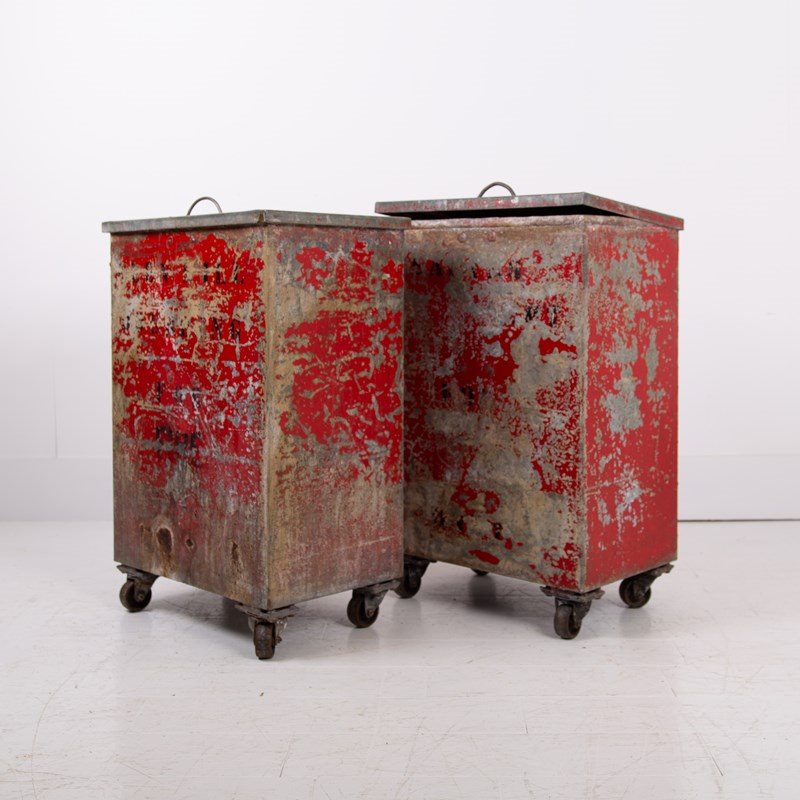 Vintage Fire Bin on Wheels From Richard Arkwright Masson Mills x2