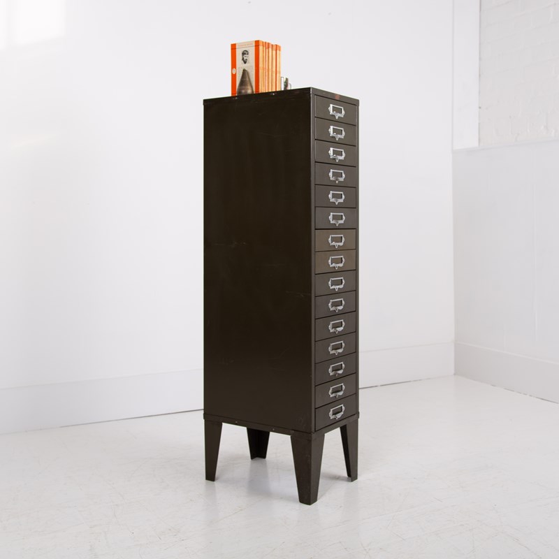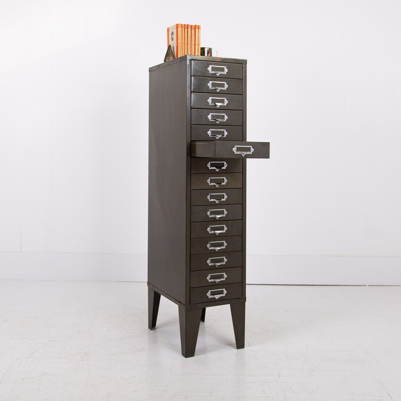 Vintage Industrial Metal 15 Drawer Office Cabinet C1940s