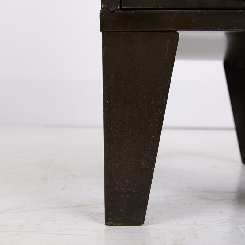 This one sits on those tall angled metal legs with chrome plated label holders which incorporate lipped handles to all drawers and the Howden transfer to the top of the front. A highly original piece in very good order with light patination.