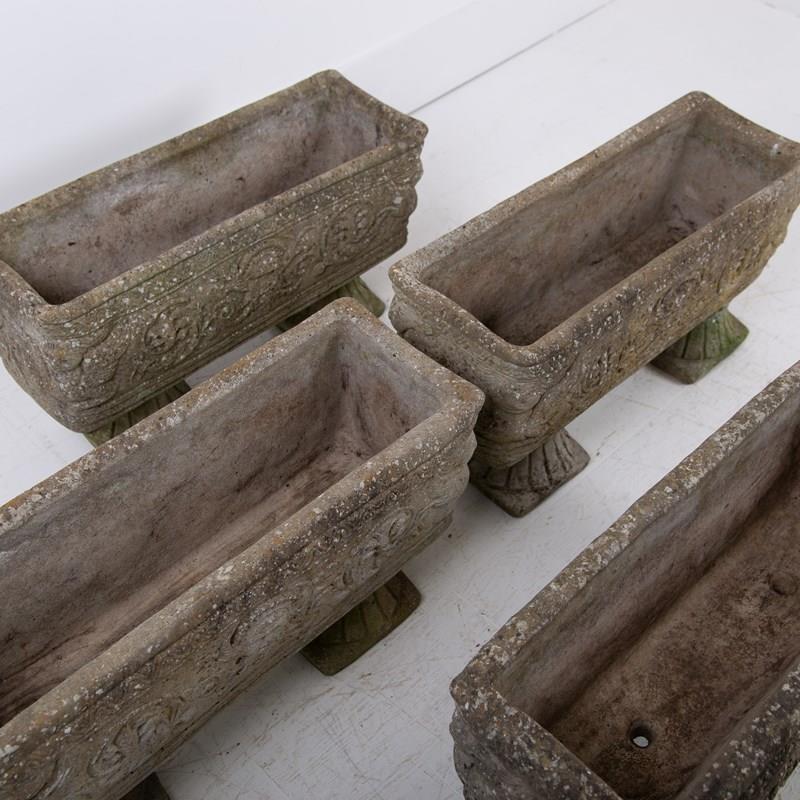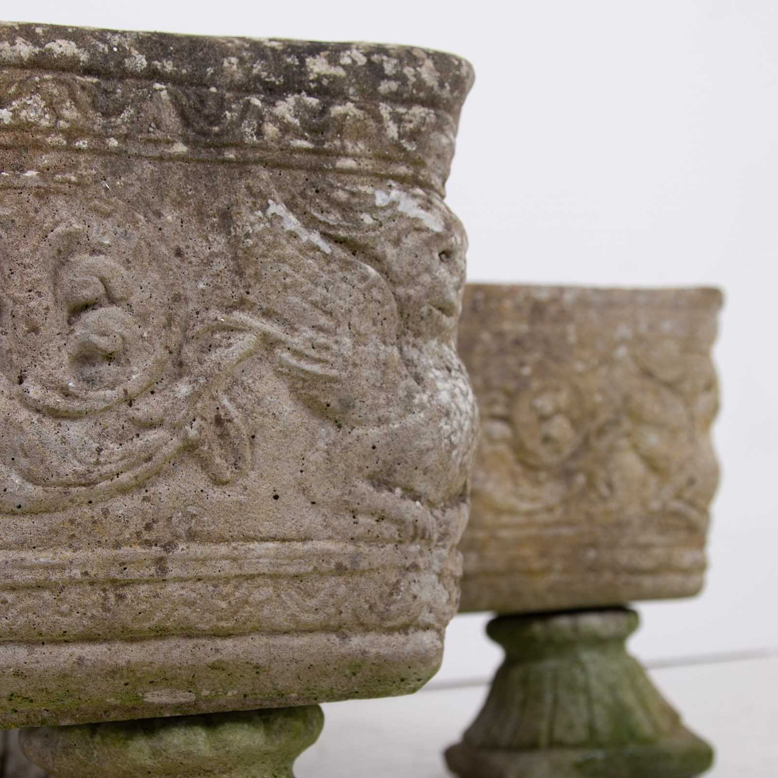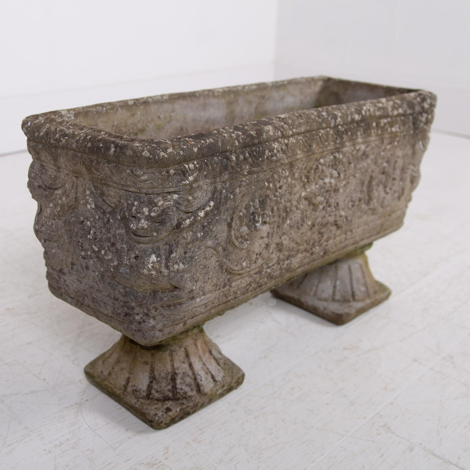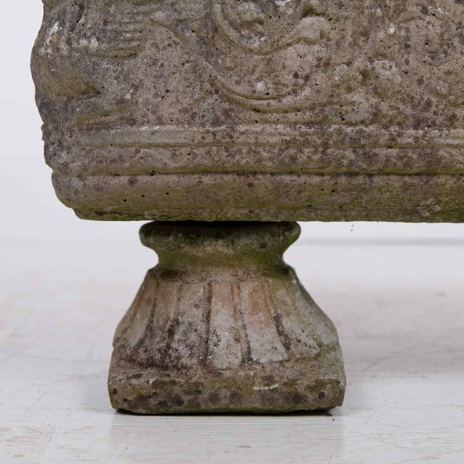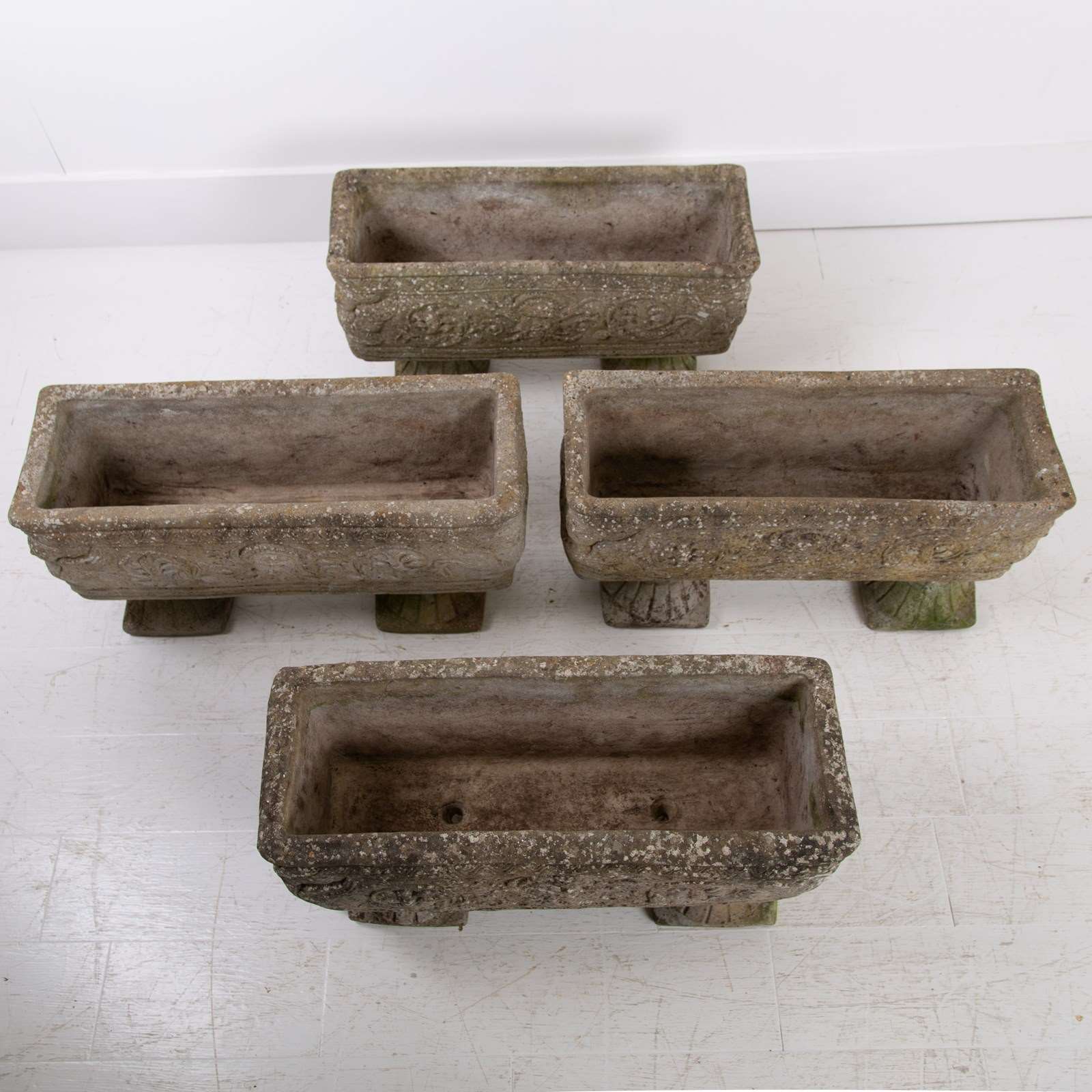 Set Of 4 Weathered Mid Century Stone Garden Planters on Feet