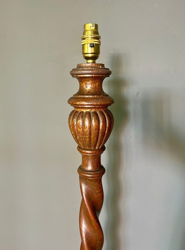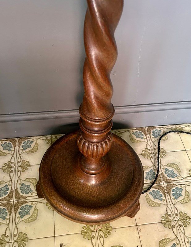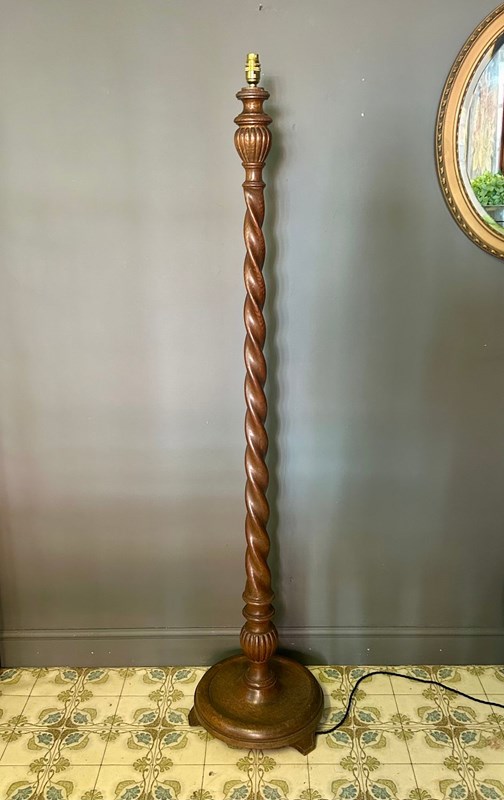 Classic tall Antique Barley Twist Wooden Standard Lamp.