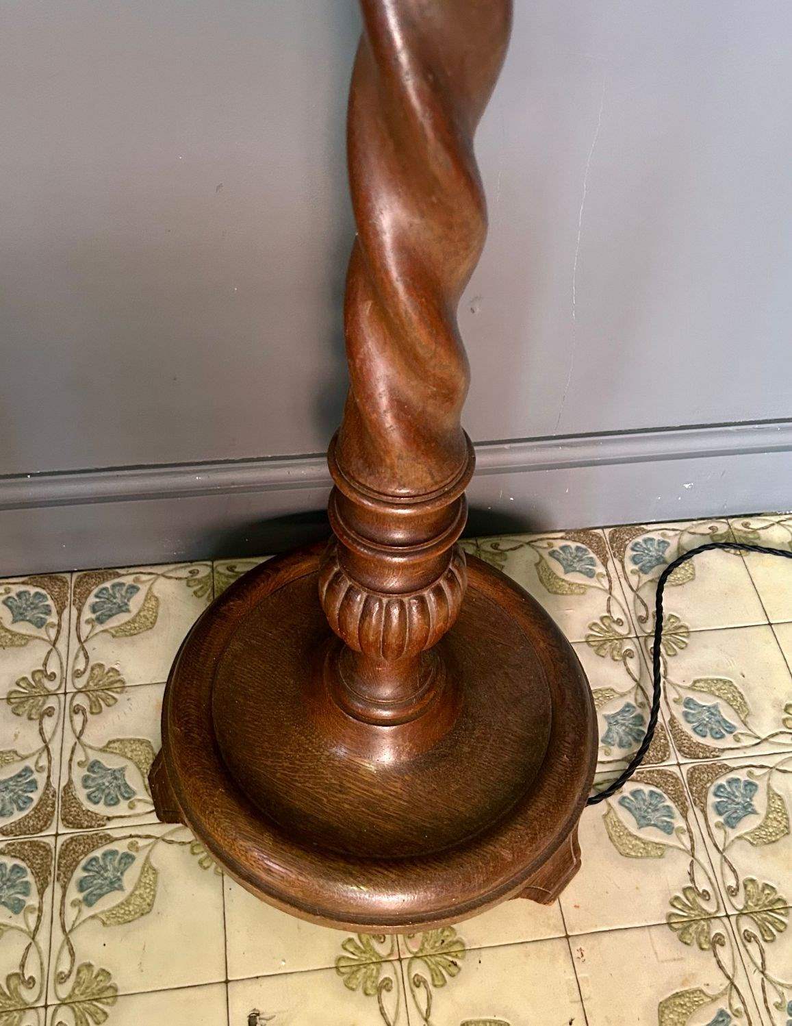 Antique Barley Twist Wooden Floor / Standard Lamp