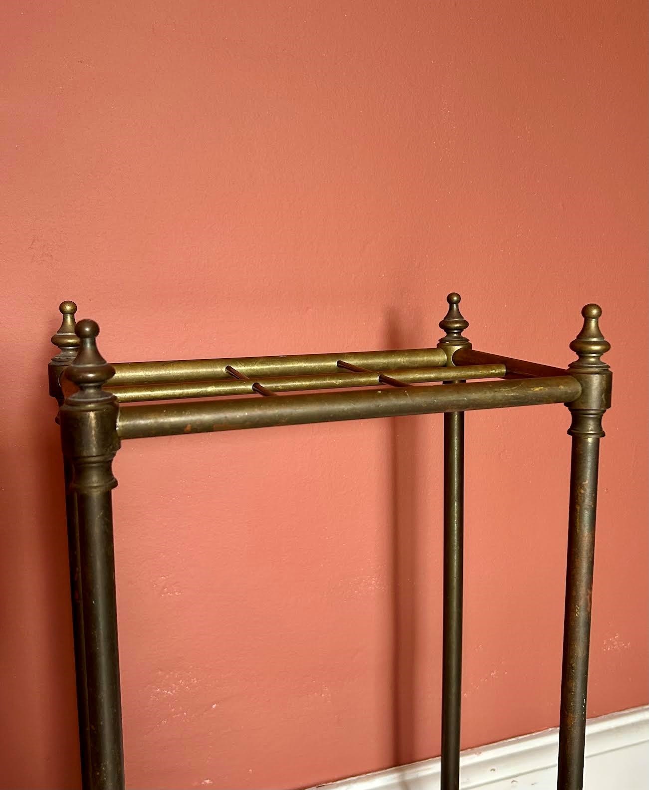 Antique Brass 6 division Stick / Umbrella Hallway Stand, with lovely time worn patina and heavy base. See photos.