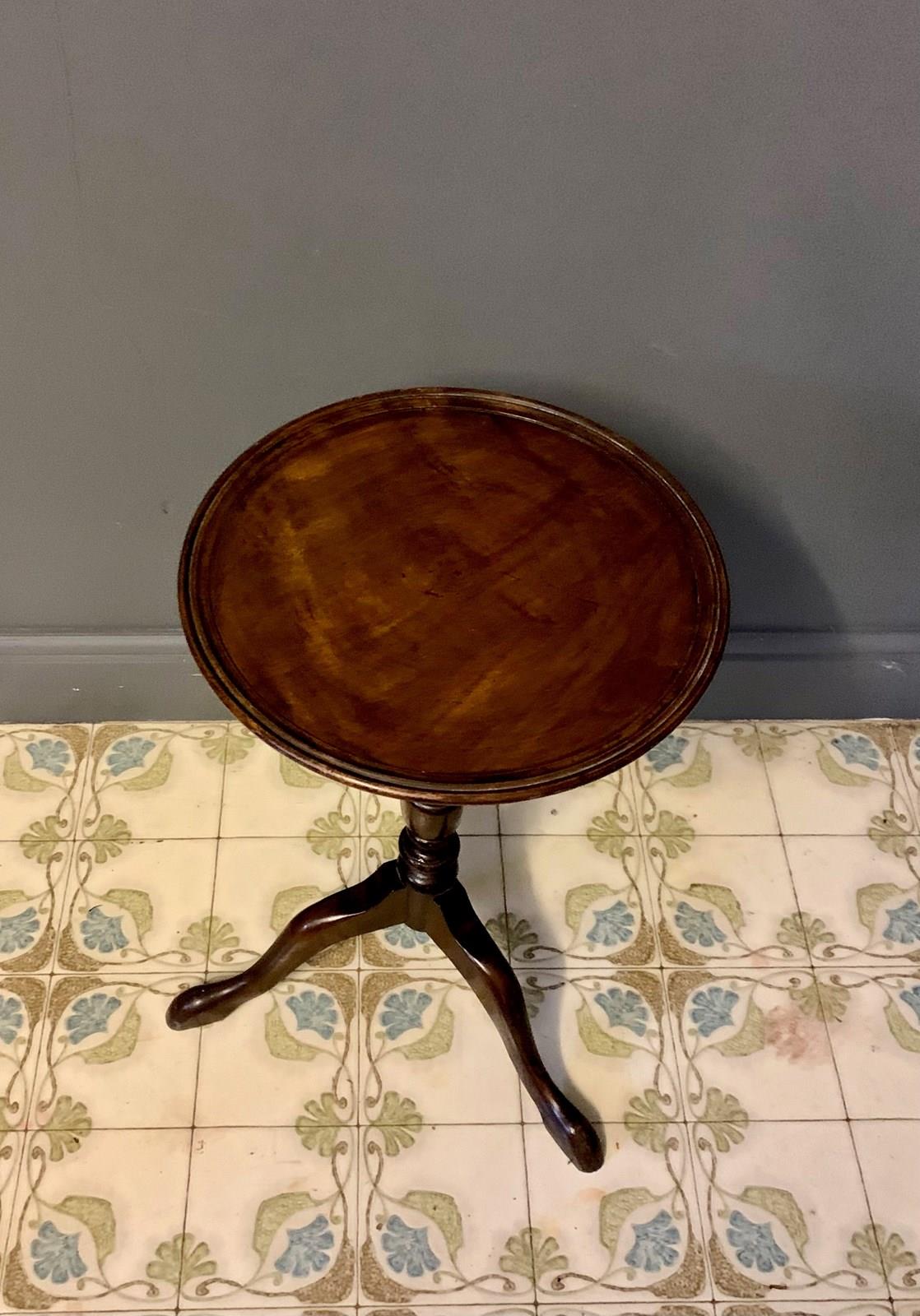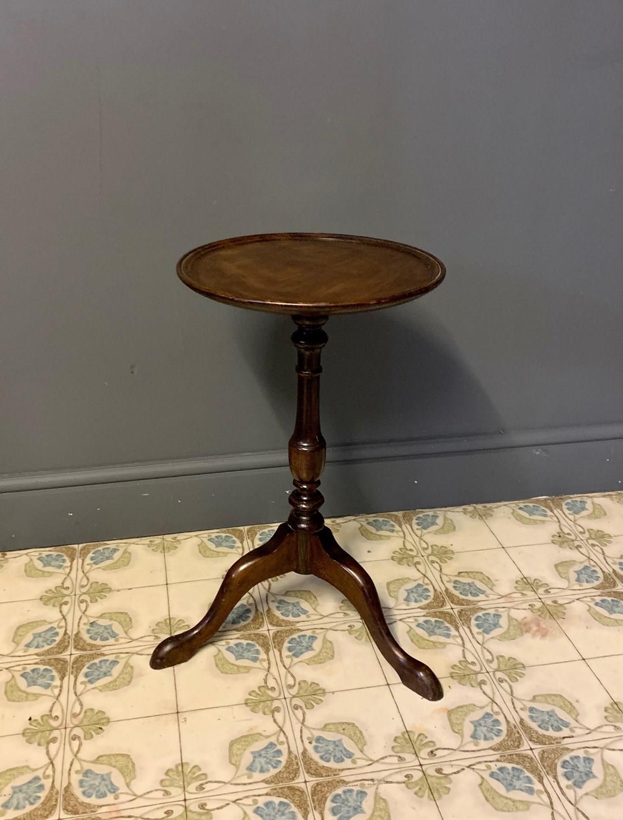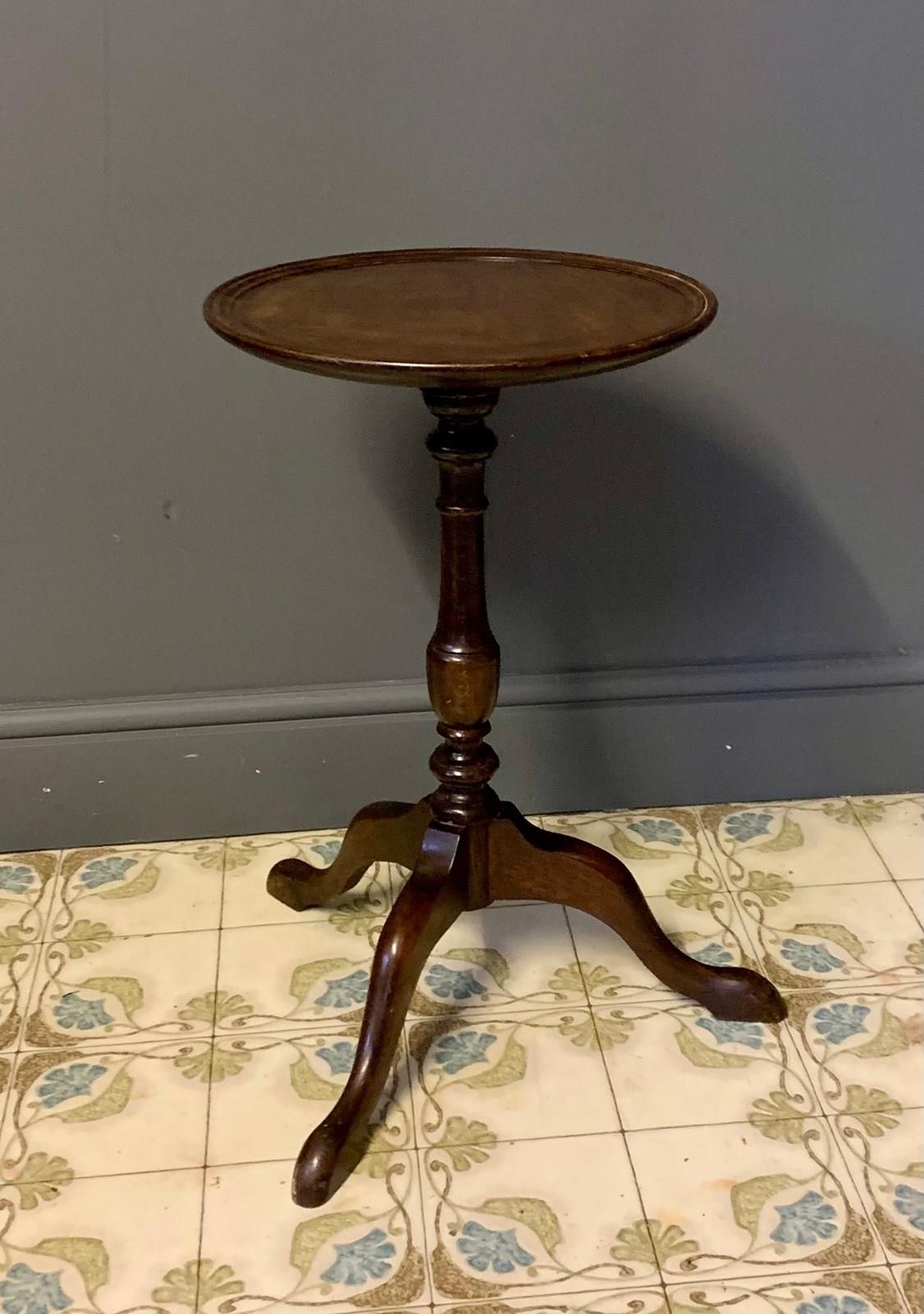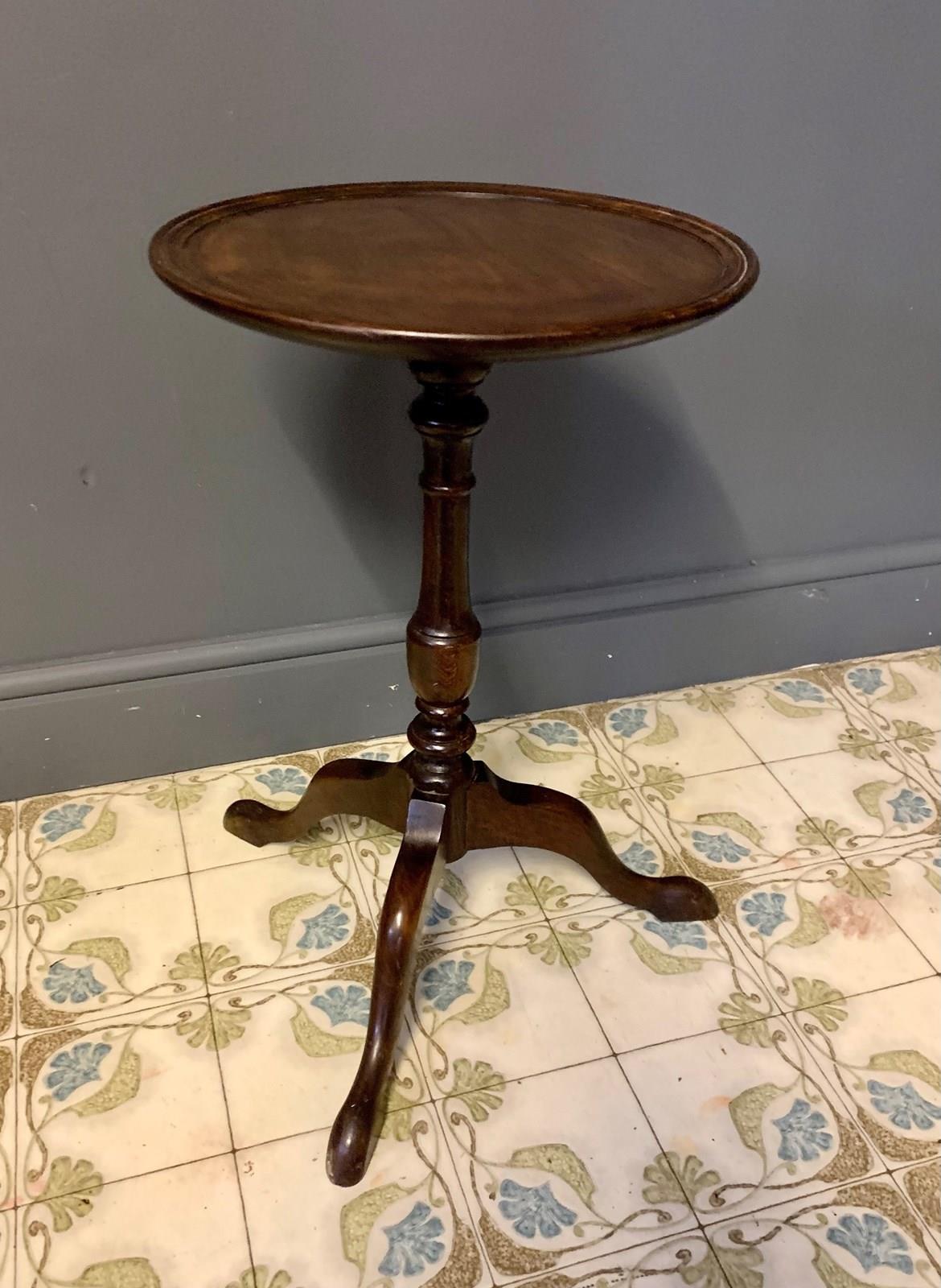 Classic mahogany tripod wine table on turned column standing on 3 shaped legs