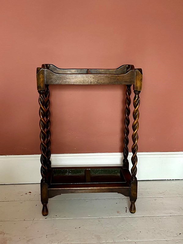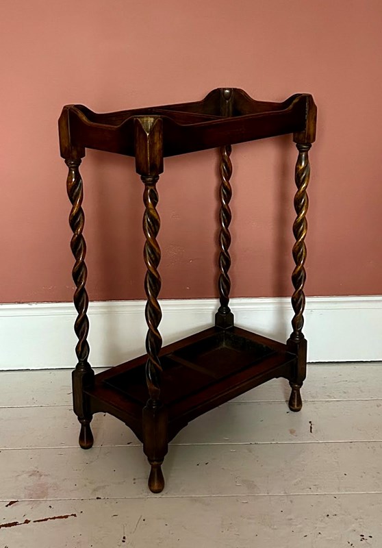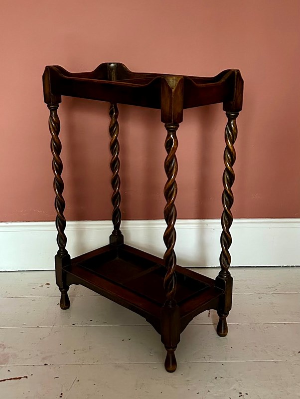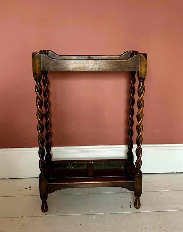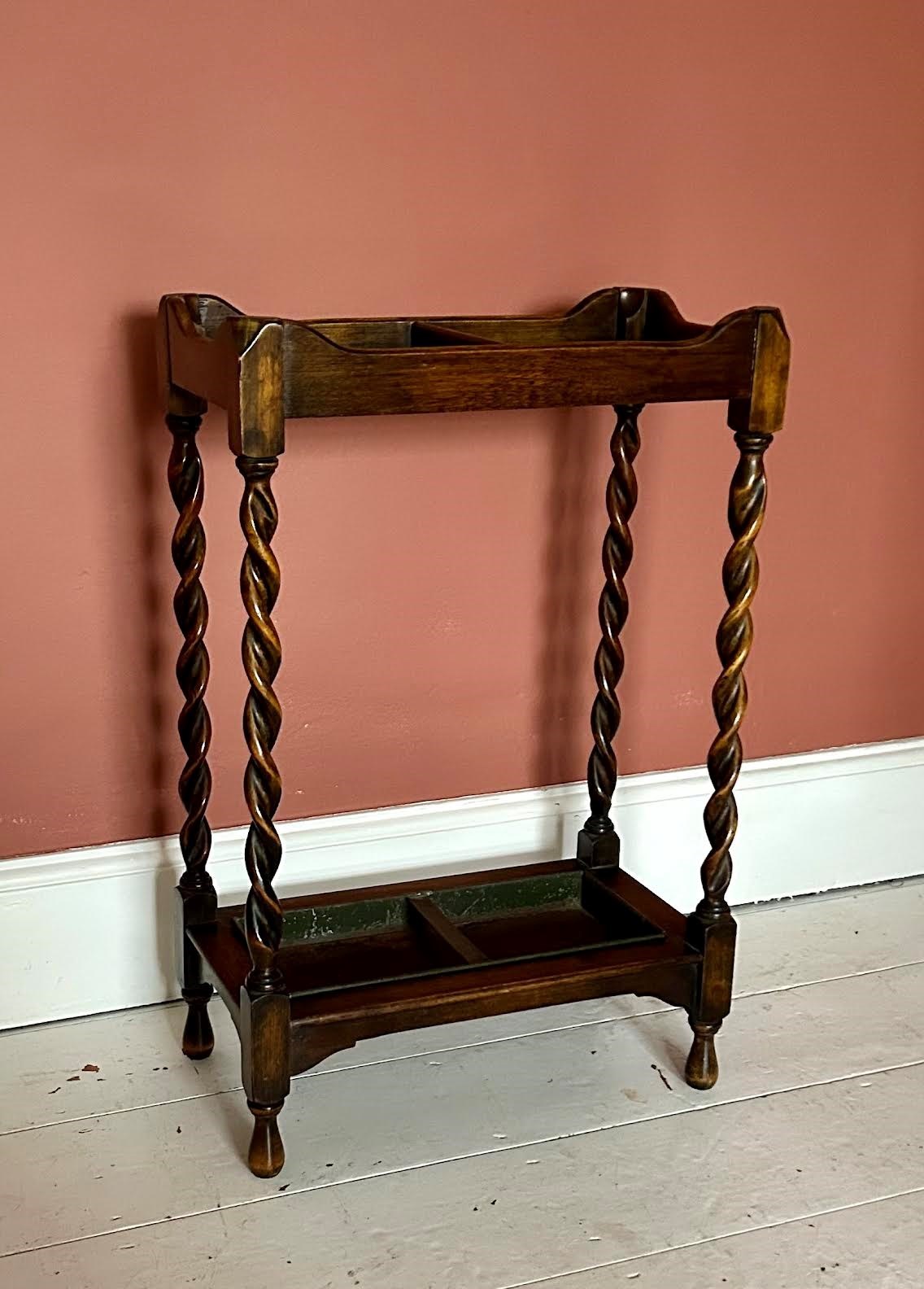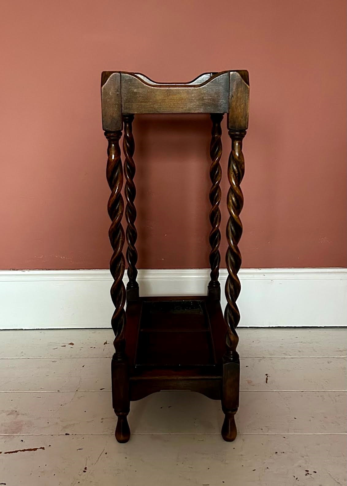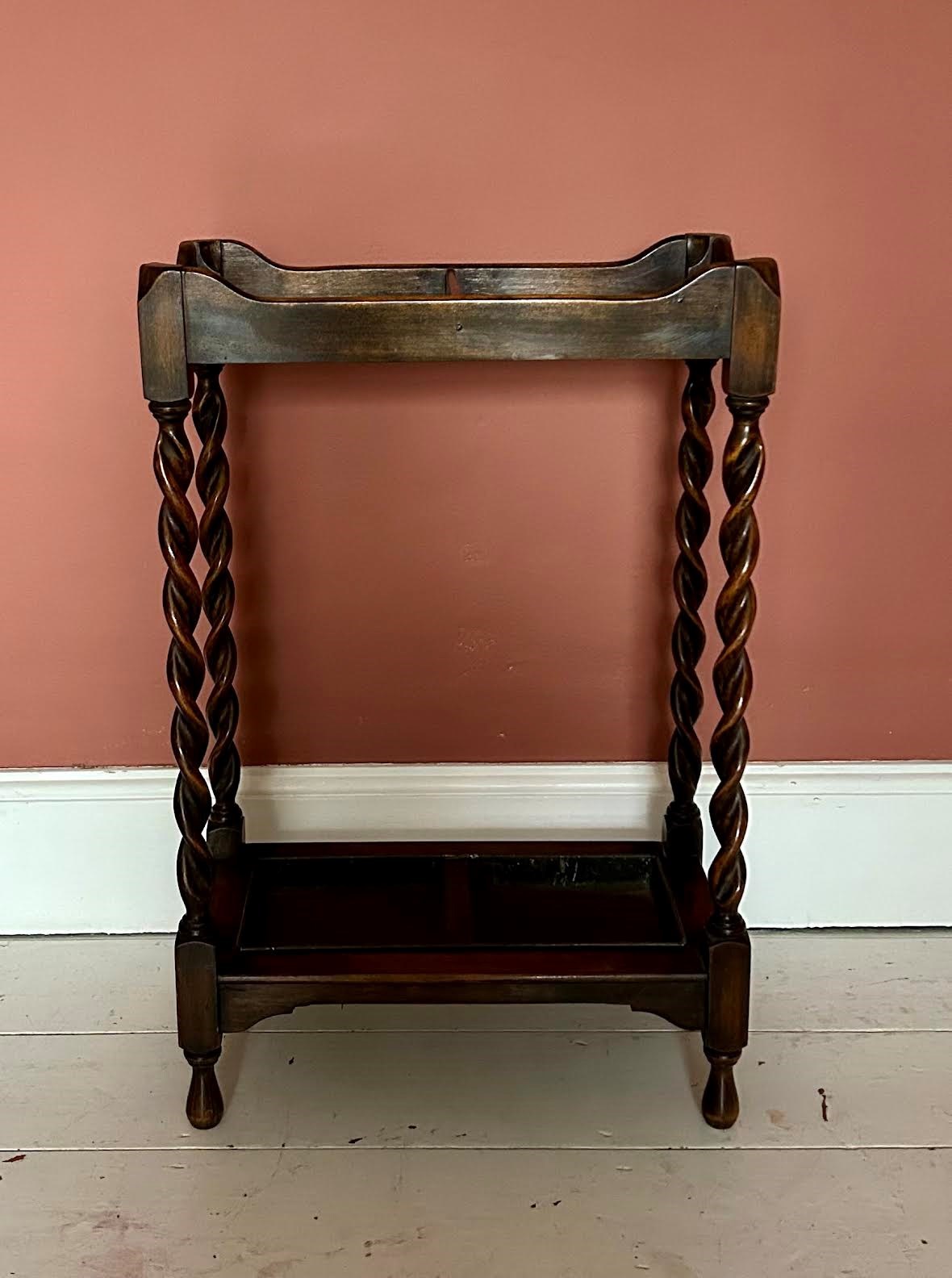 Lovely Antique Barley Twist Wooden Umbrella Stand, with time worn patina. In very good condition for age. See photos
