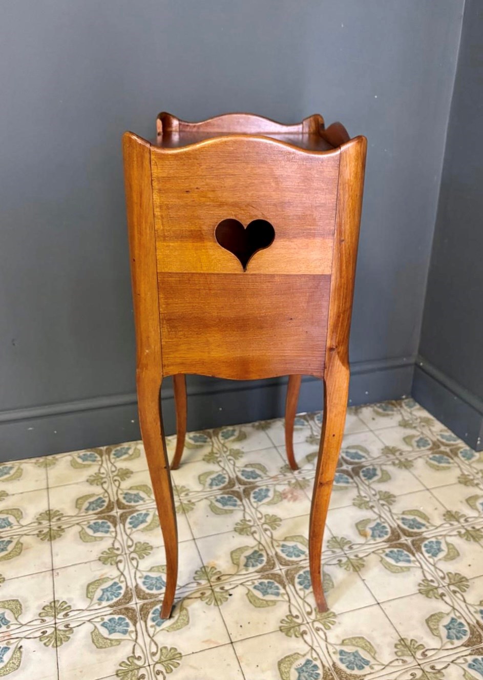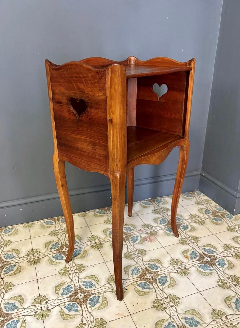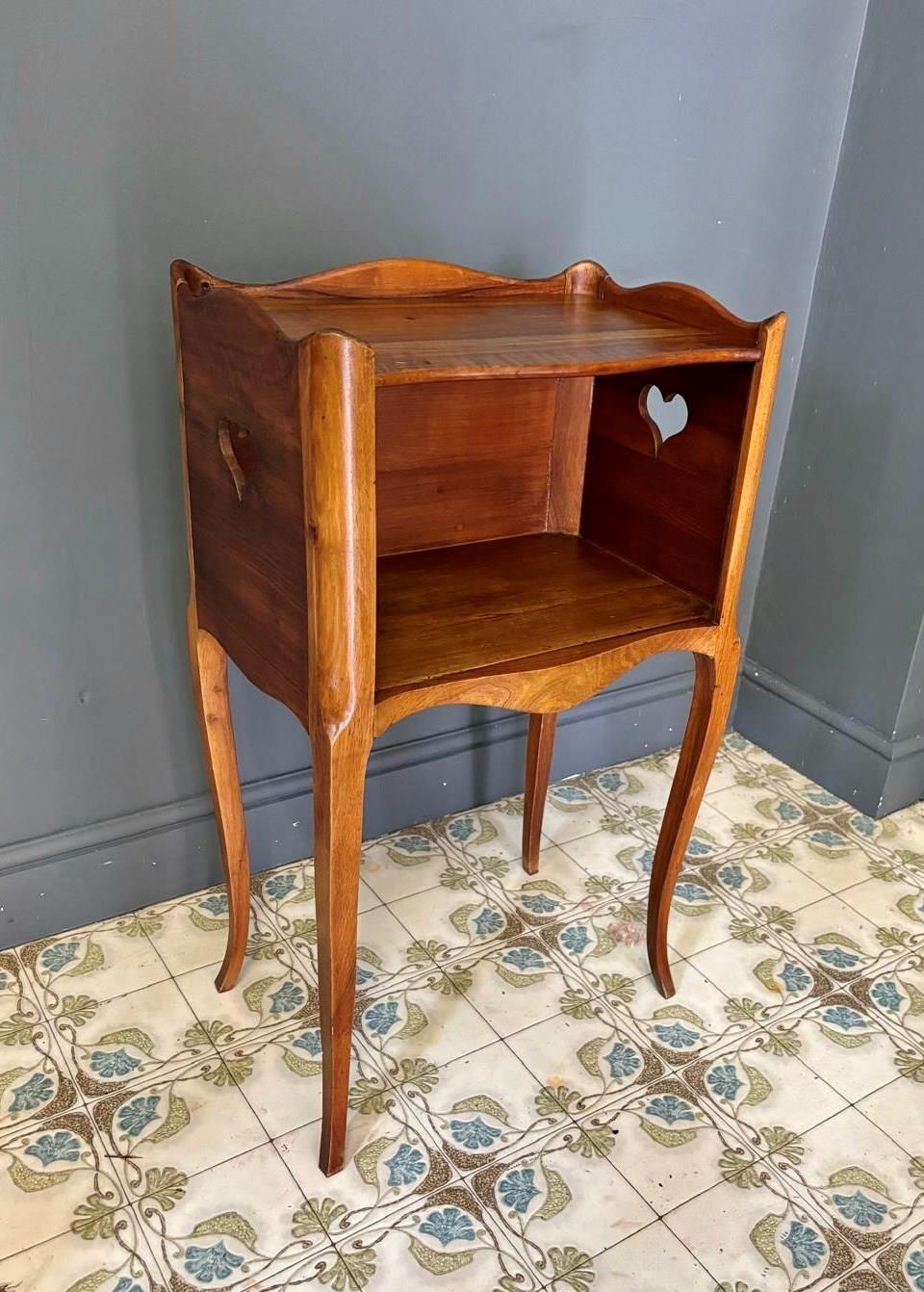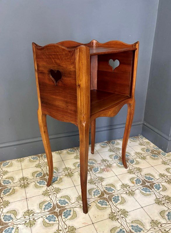 French Wooden Bedside Table With Heart Cut Out Detail
