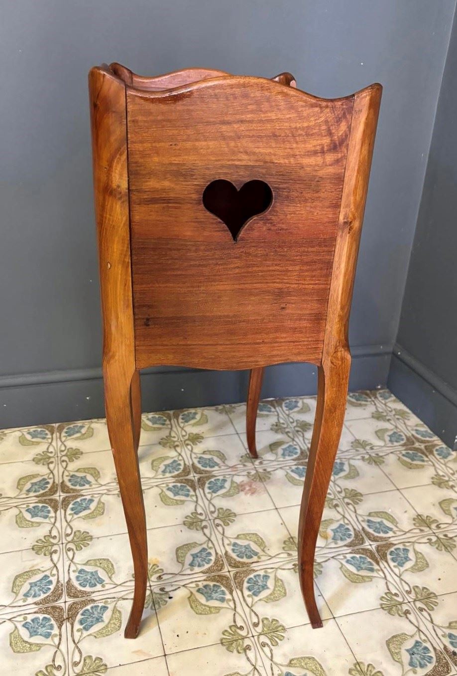 Pretty French Wooden Bedside Table with heart cut out detail. Wear and tear as expected, see photos.