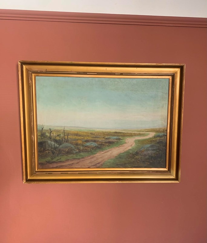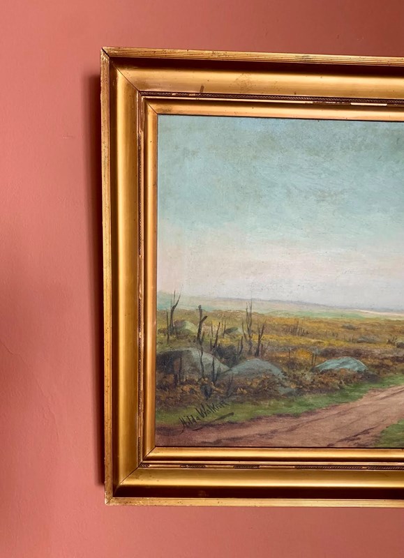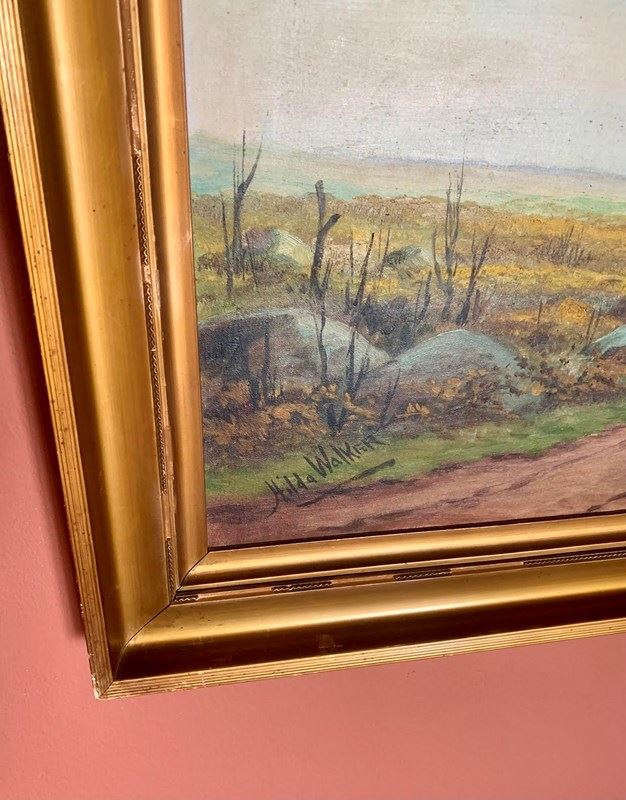 Gilt Framed Landscape Oil Painting Signed Hilda Walker / 2