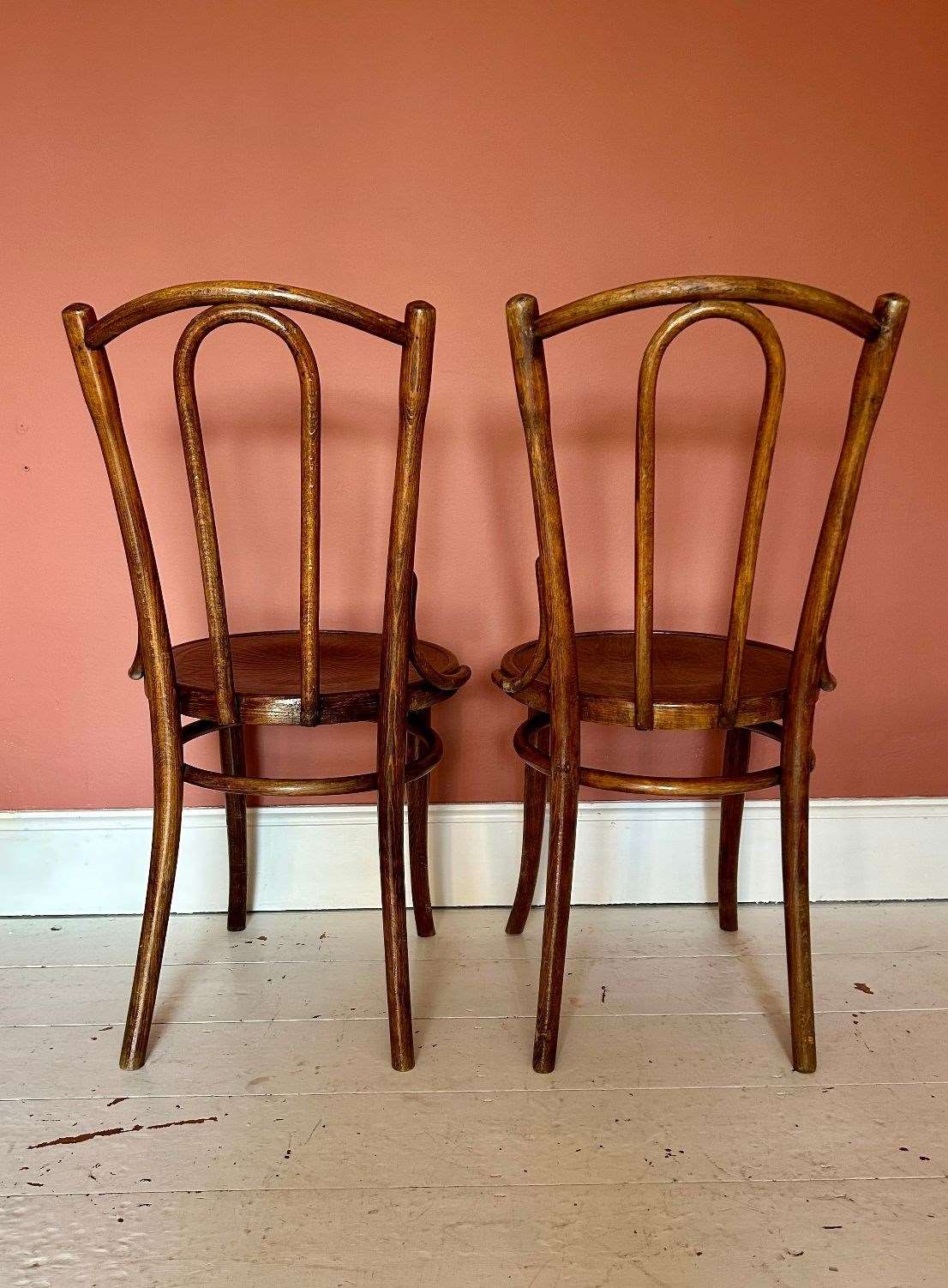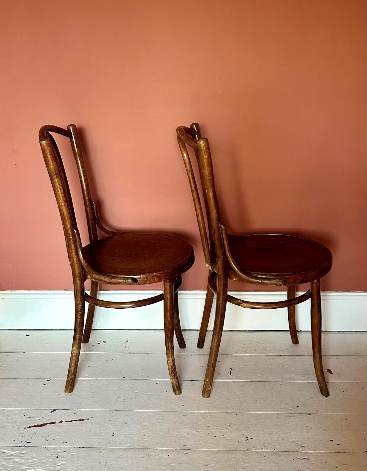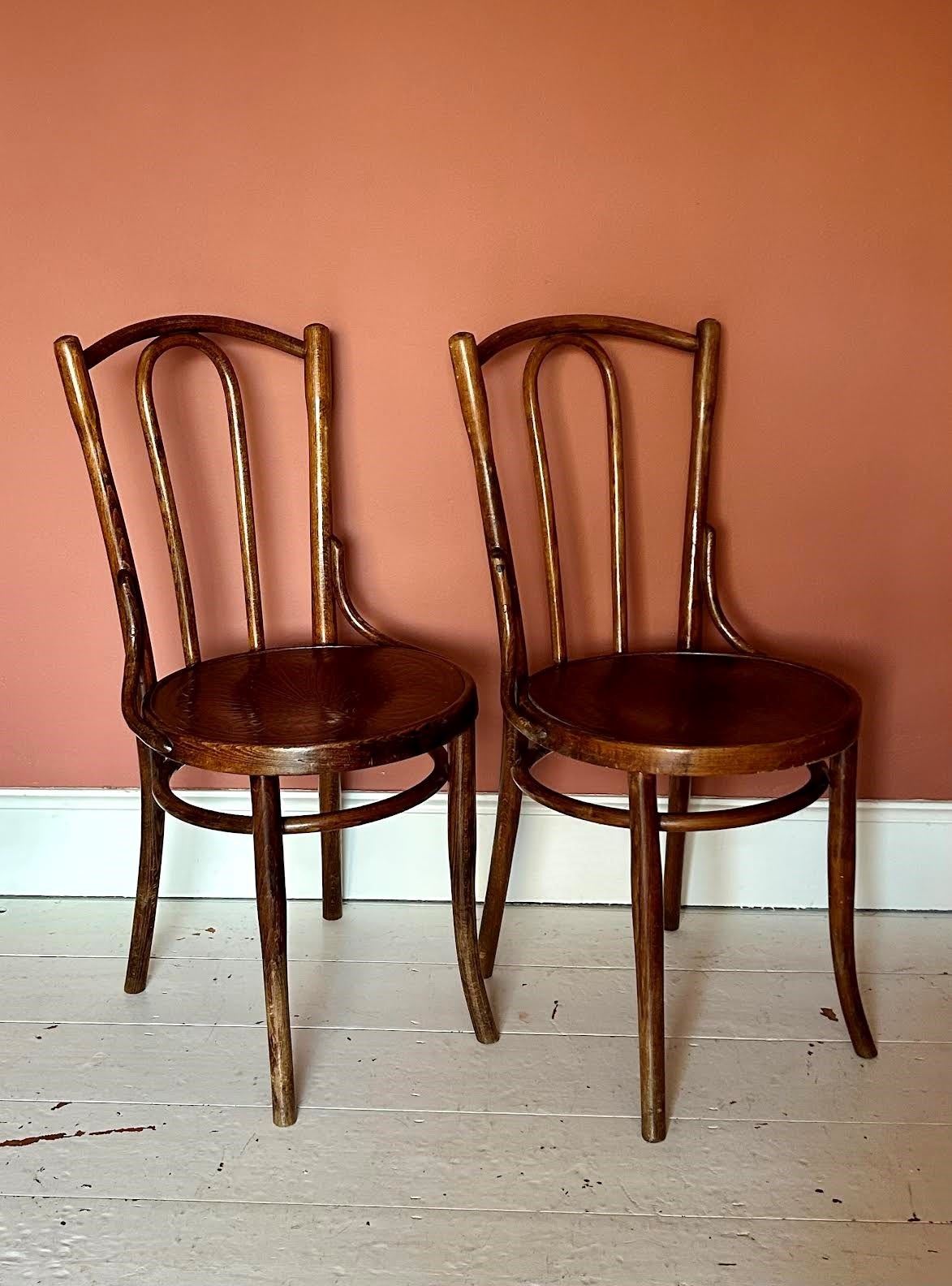 A great pair of Vintage Bentwood Bistro Dining Chairs. Good solid chairs with a lovely time worn patina. Wear and tear as expected for age, see photos.