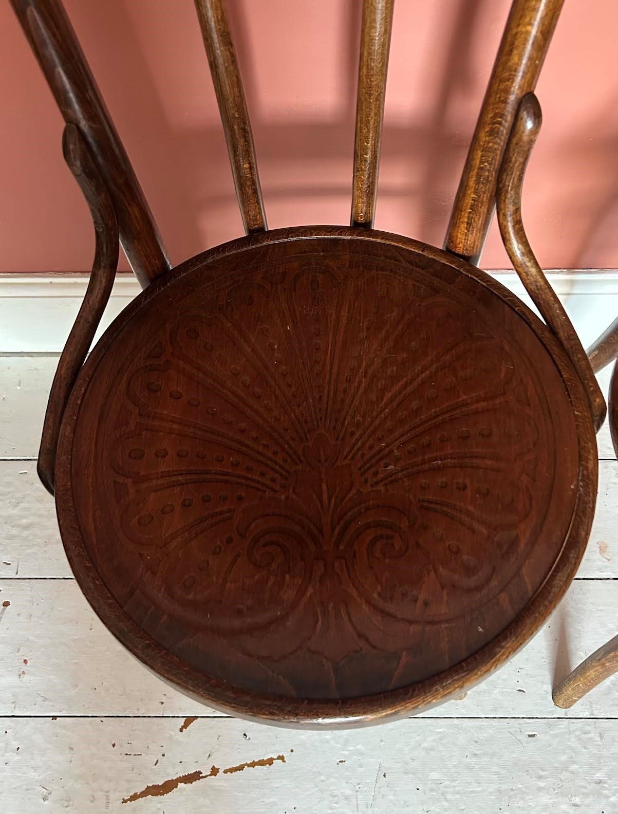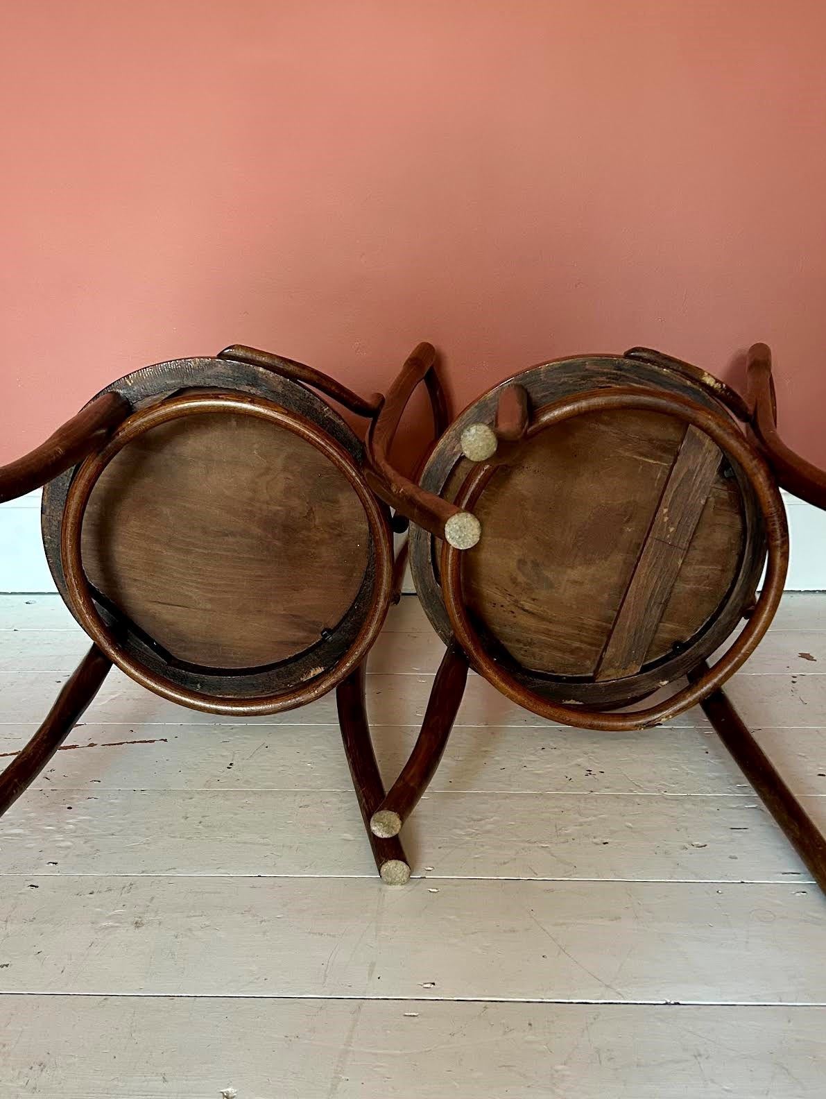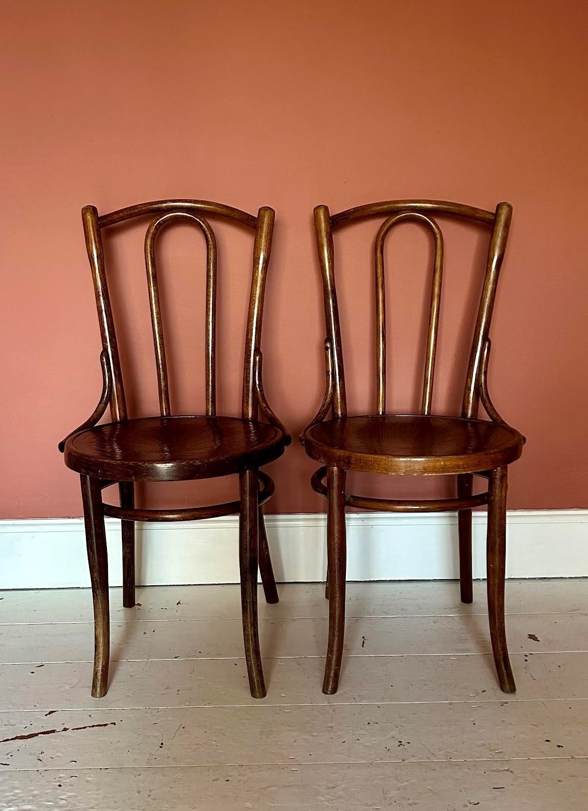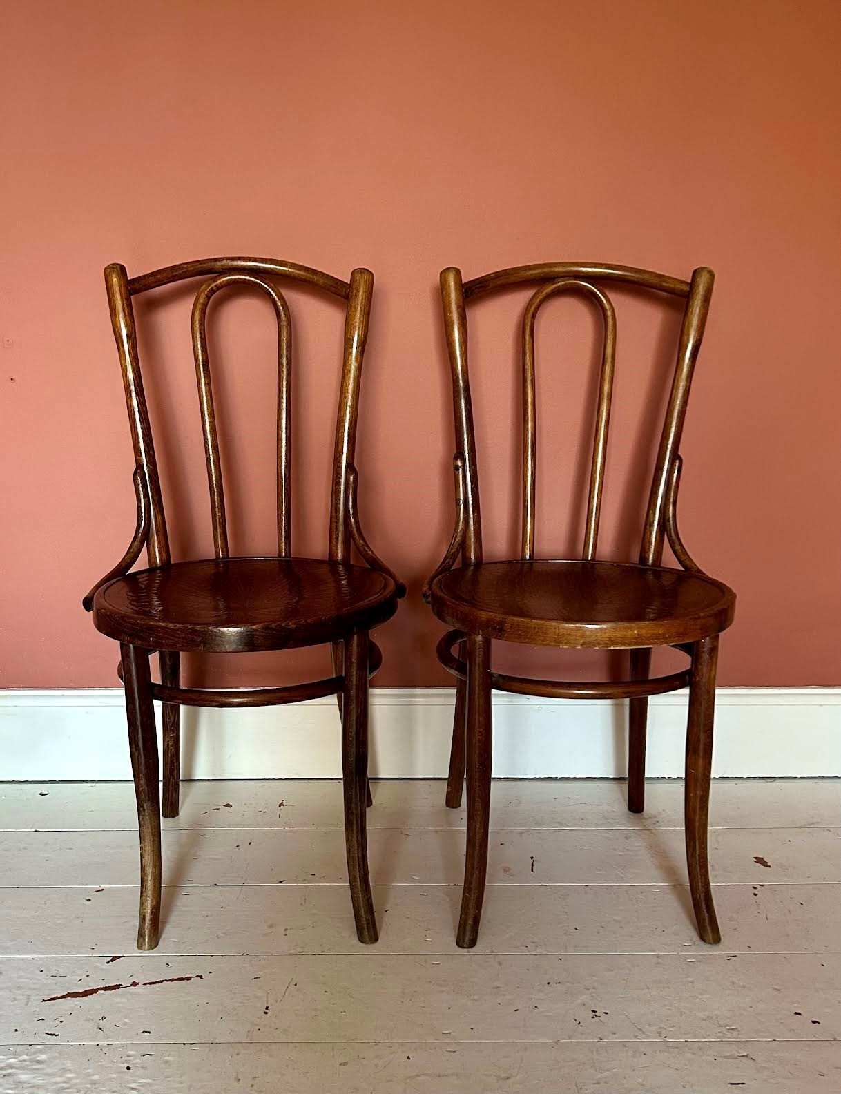 A great pair of Vintage Bentwood Bistro Dining Chairs. Good solid chairs with a lovely time worn patina. Wear and tear as expected for age, see photos.