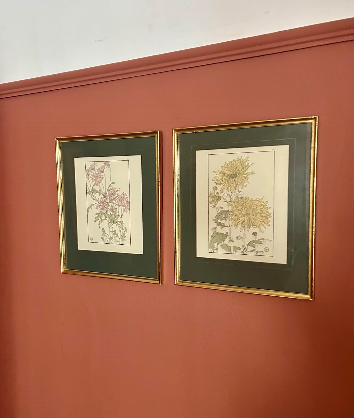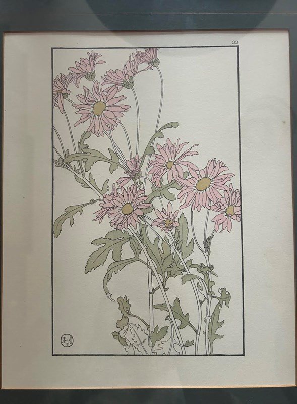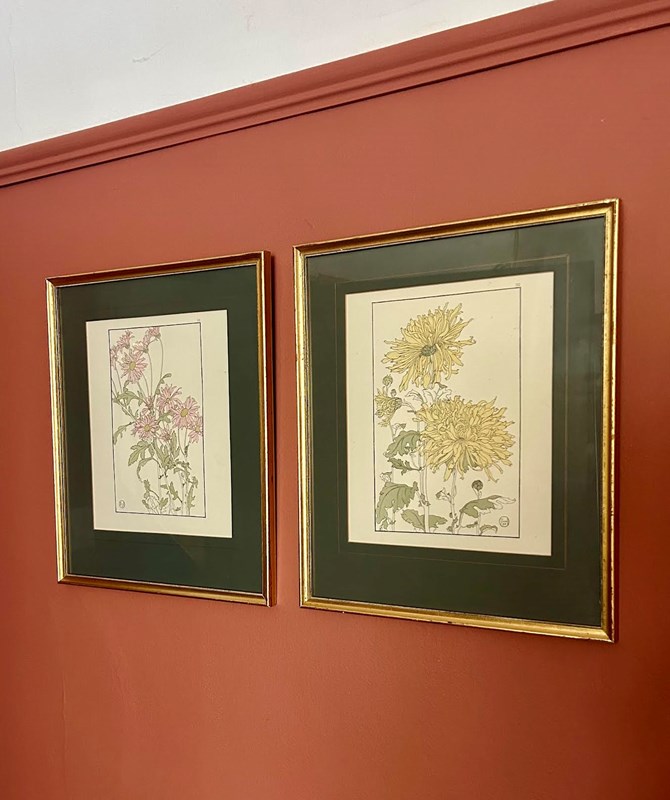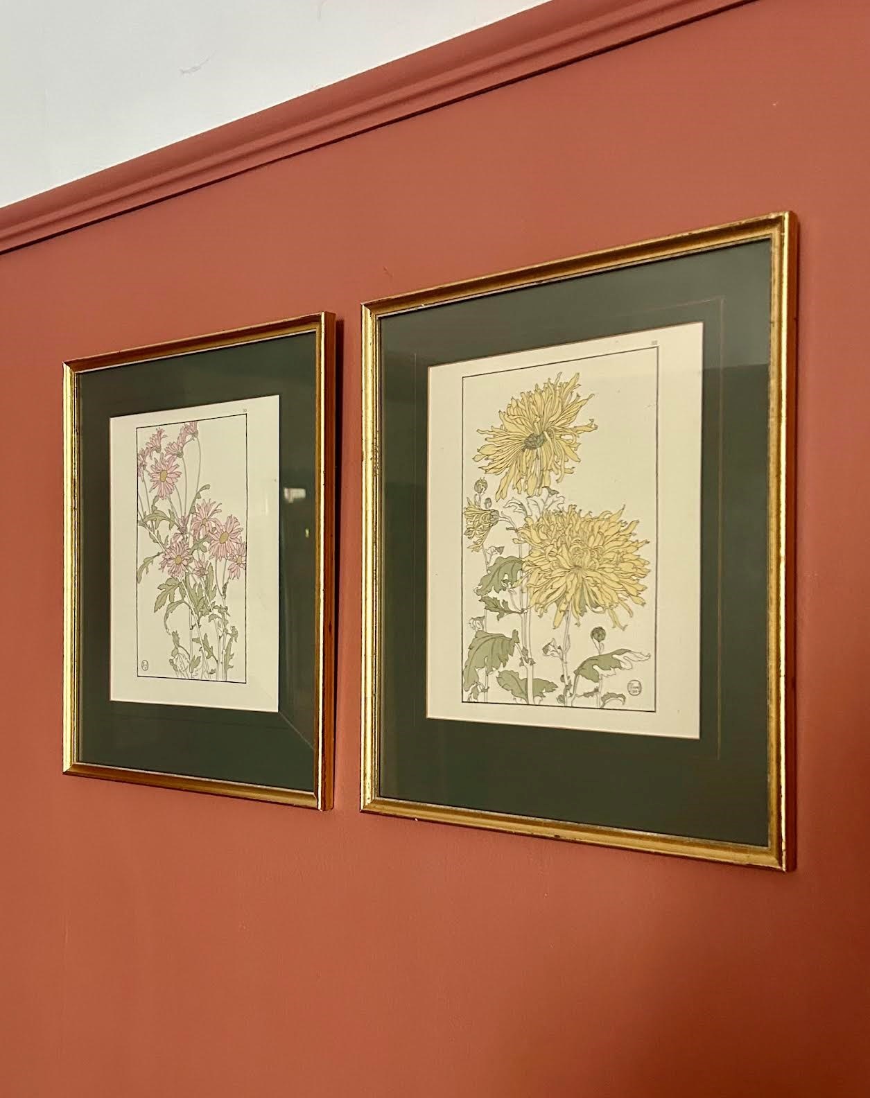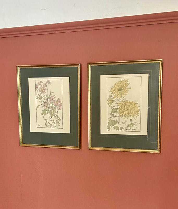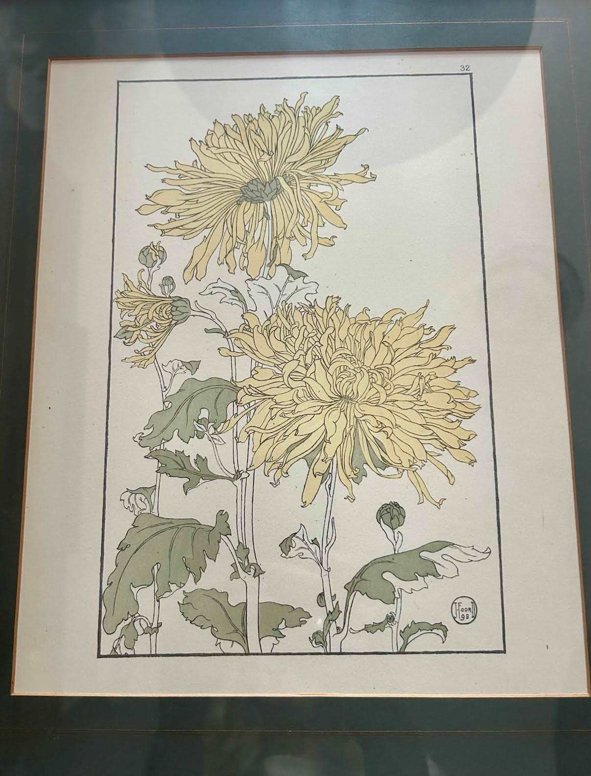 Set of two framed antique prints of Chrysanthemum Flowers by Scottish artist Jeannie Foord. See photos.