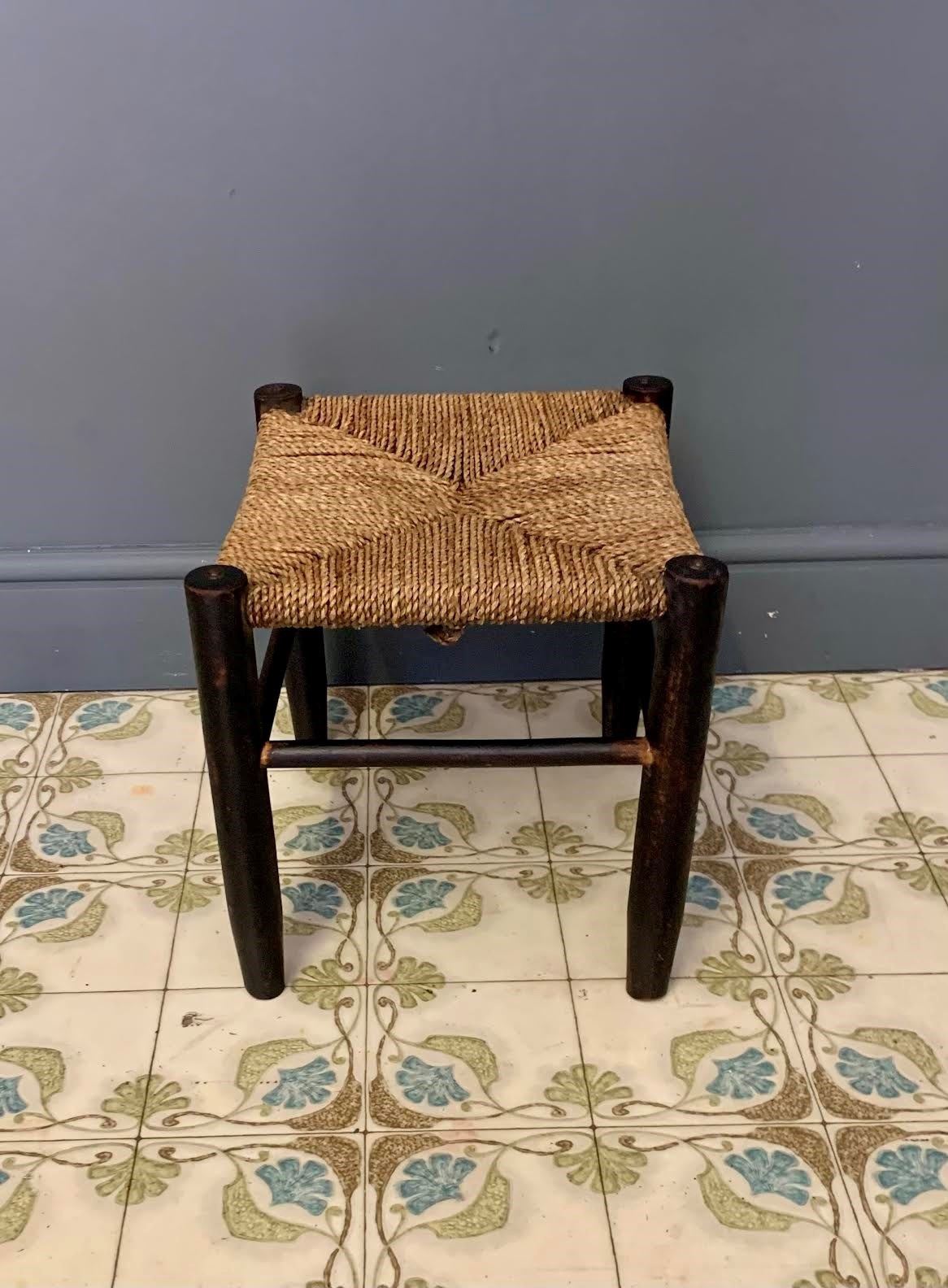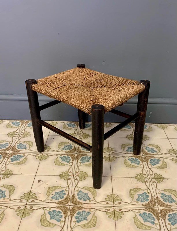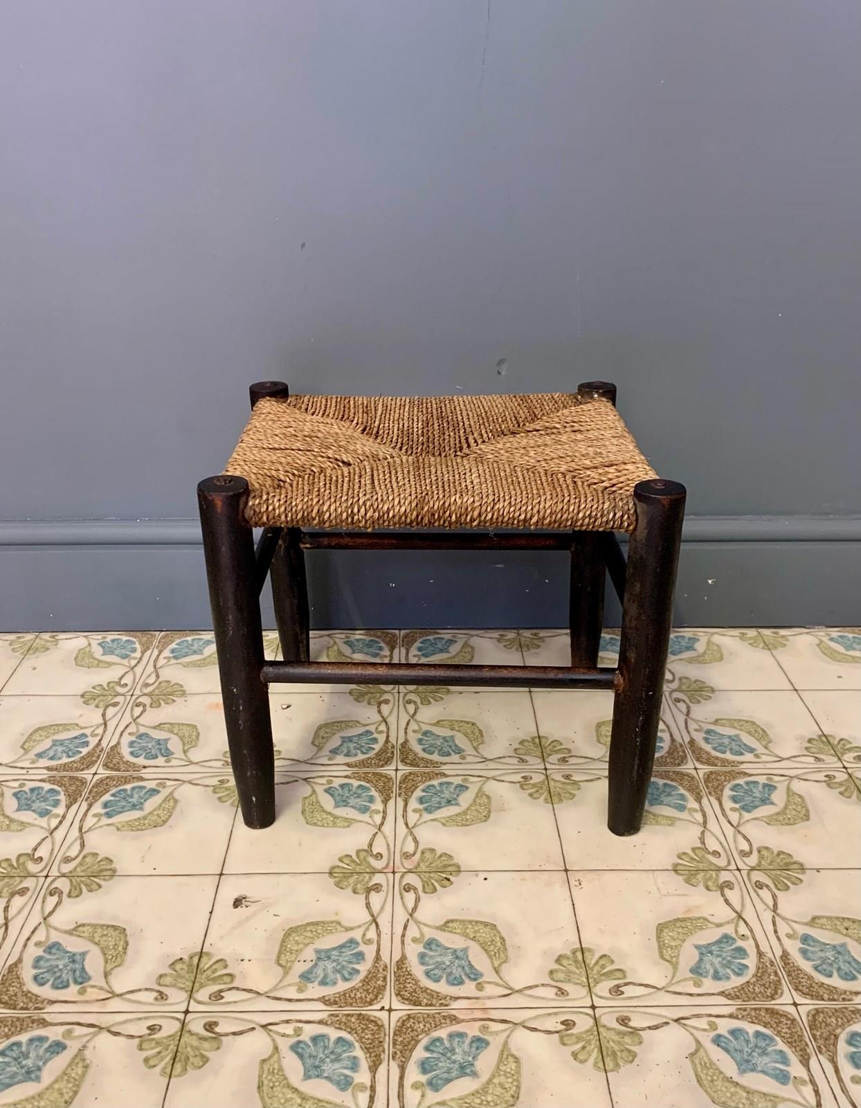 Lovely little footstool / stool with woven top and ebonised frame. In good overall condition with wear and tear as expected, see photos.