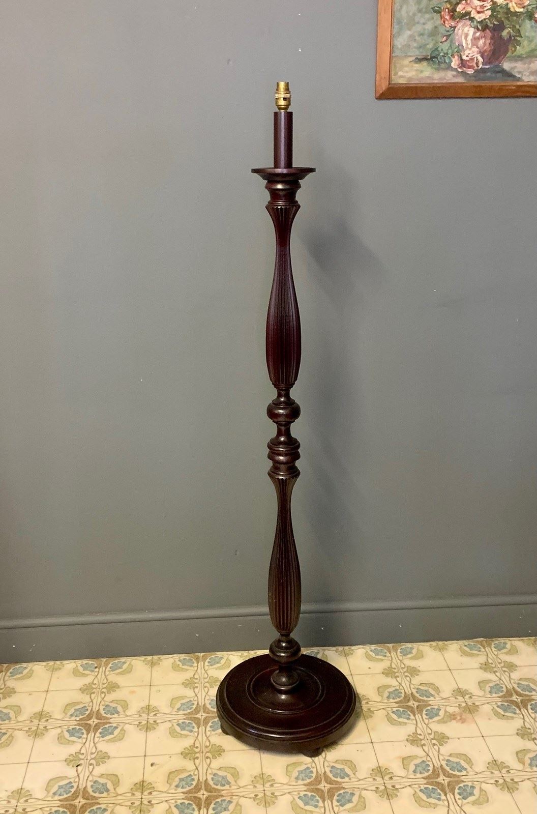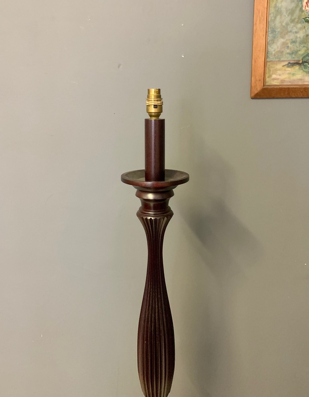 Very decorative dark finished wooden Vintage 1980's Floor / Standard Lamp. Rewired with gold cable, new brass bulb carrier and PAT tested.