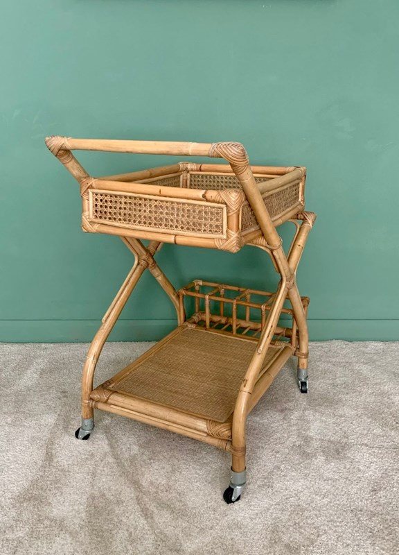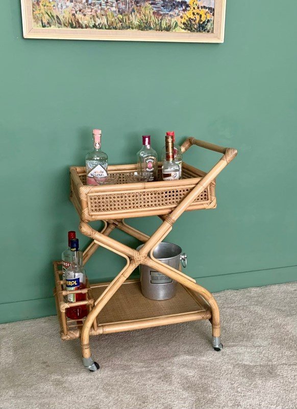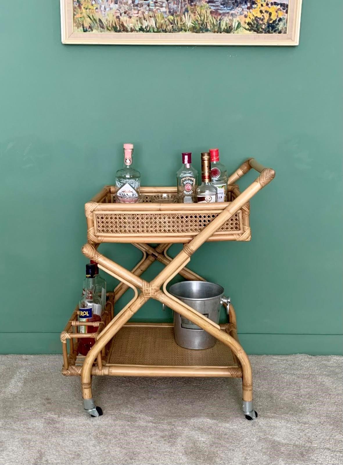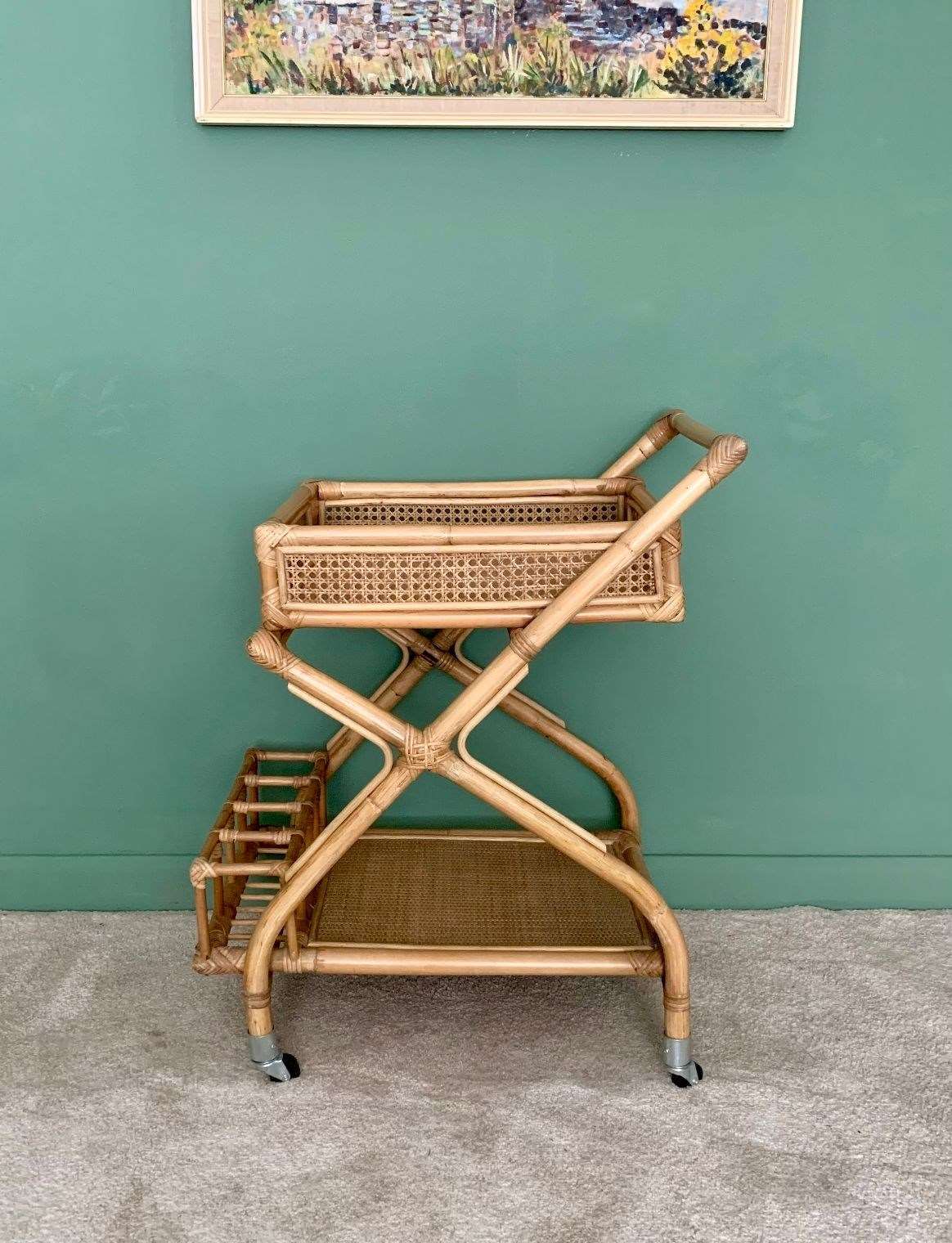 Lovely Vintage Bamboo and Rattan Drinks Trolley in good condition for age, see photos.