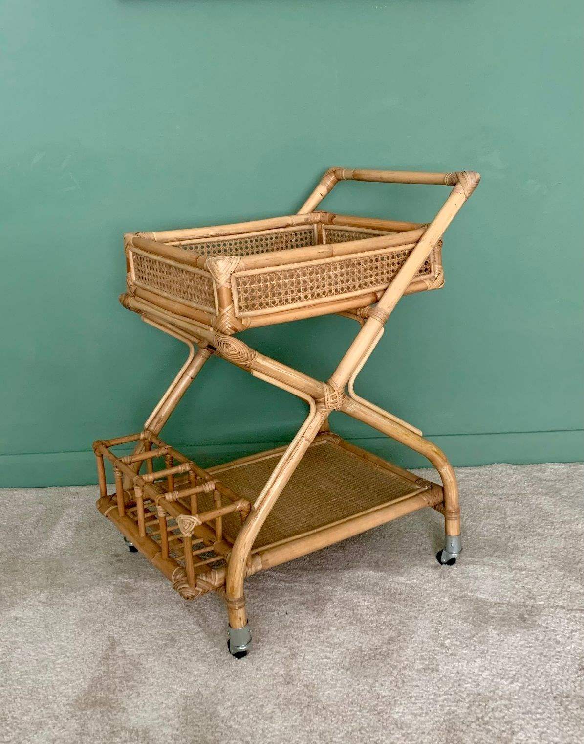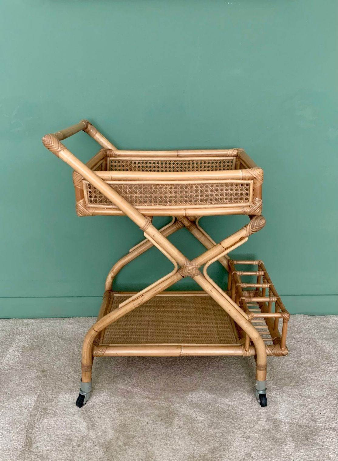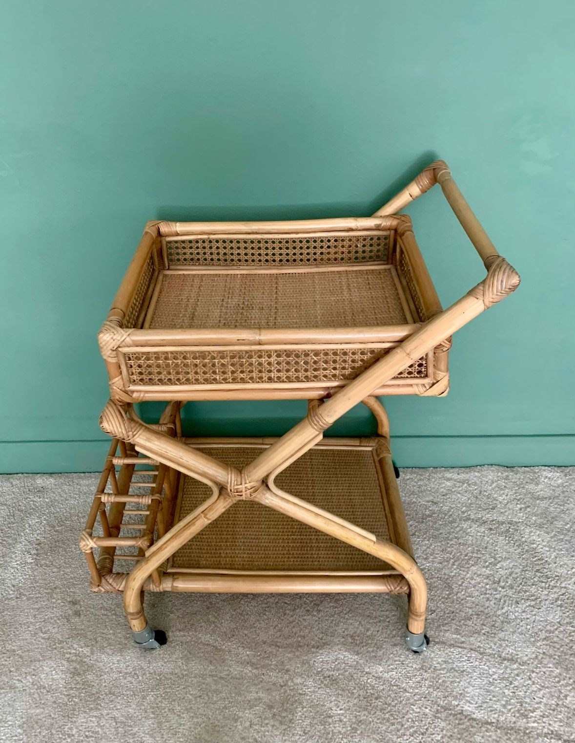 Lovely Vintage Bamboo and Rattan Drinks Trolley in good condition for age, see photos.