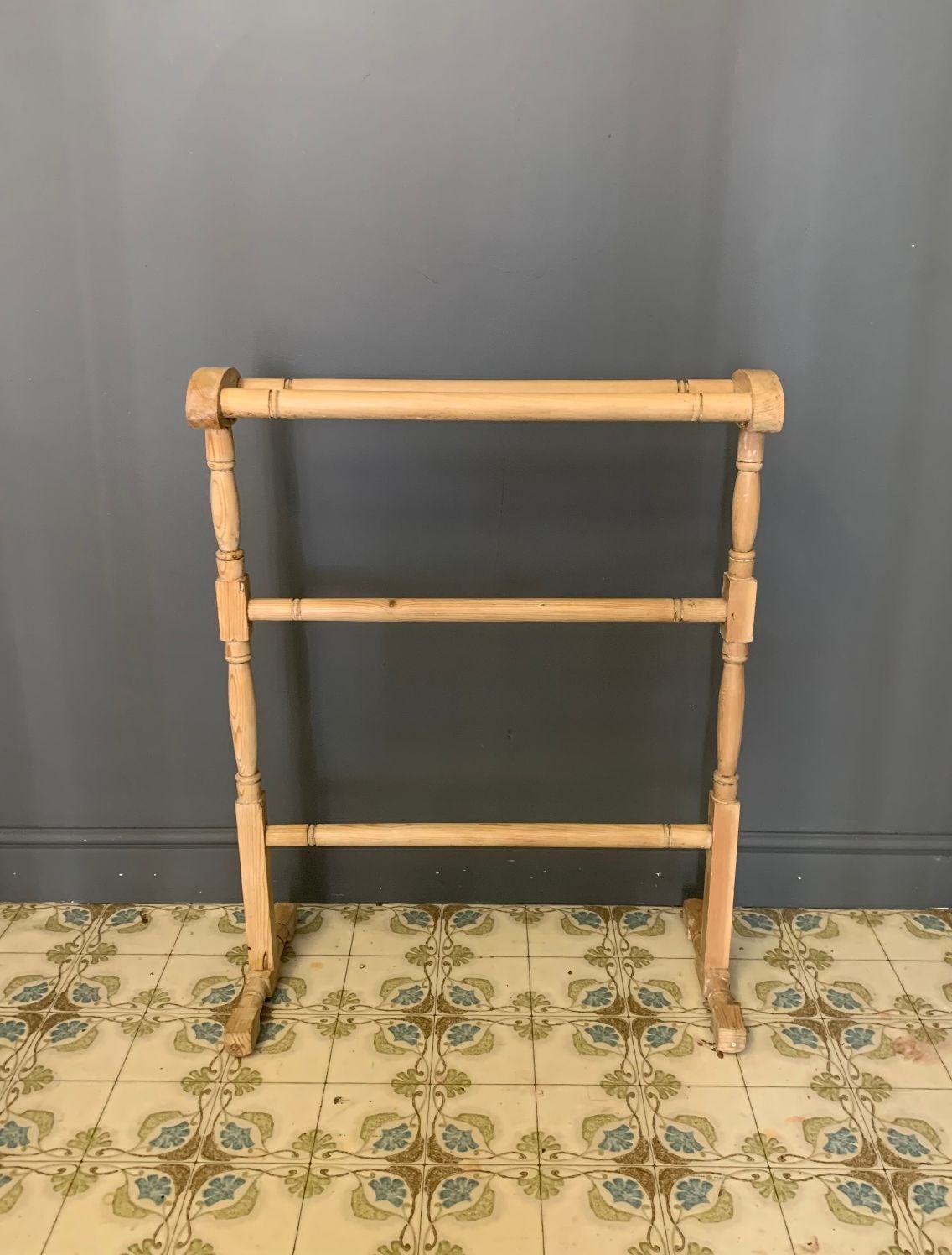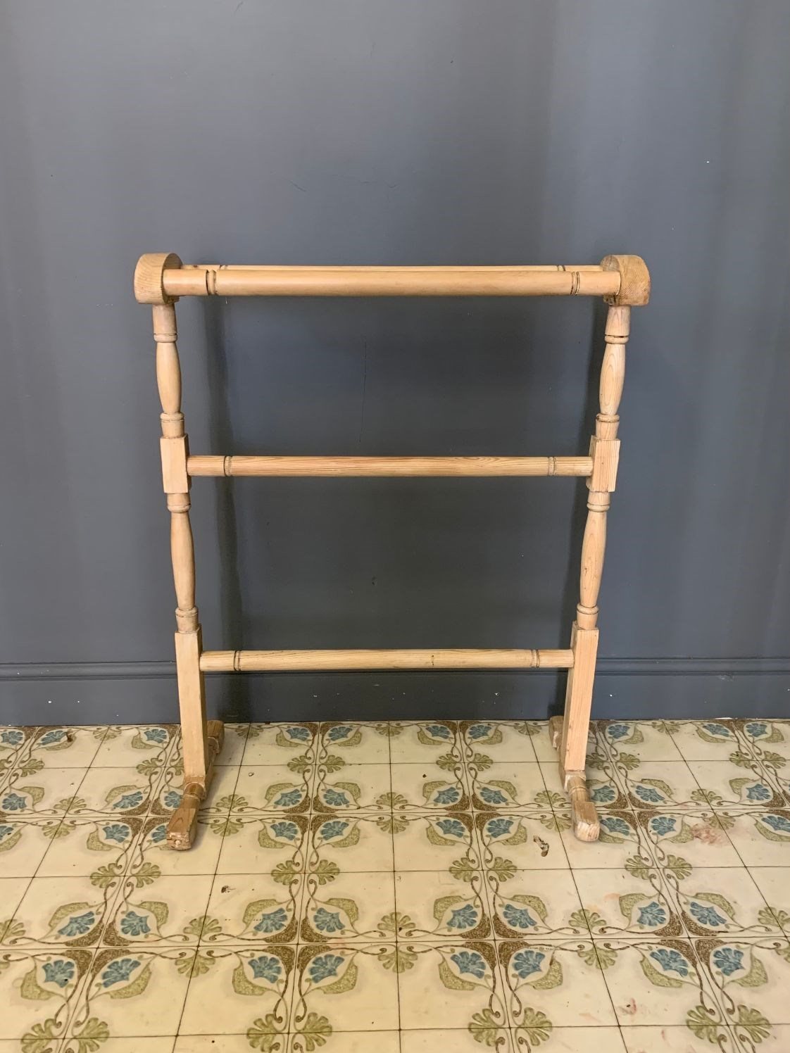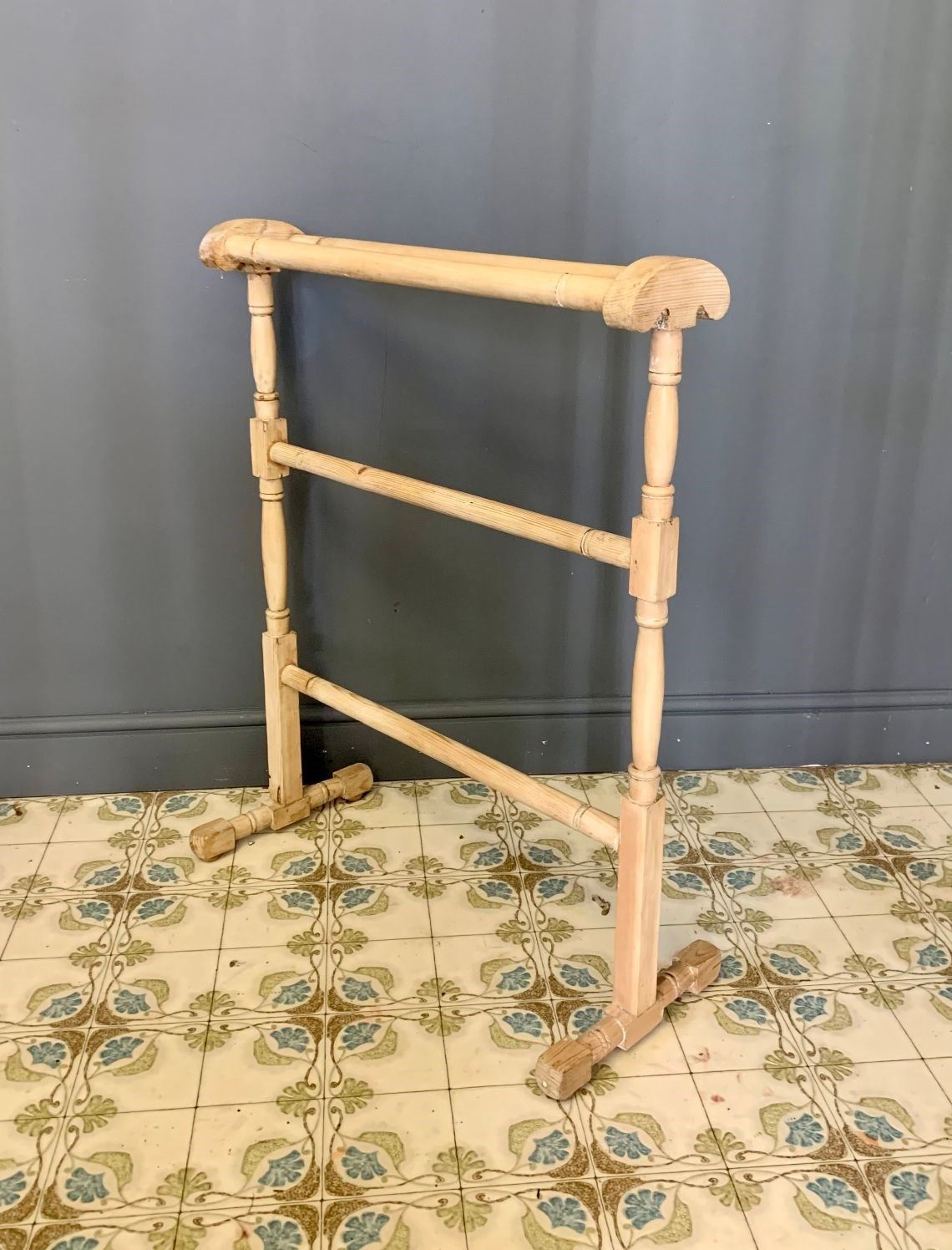 Vintage Pale Wood/Pine Towel Rail. Wear and tear as expected for age, see photos.